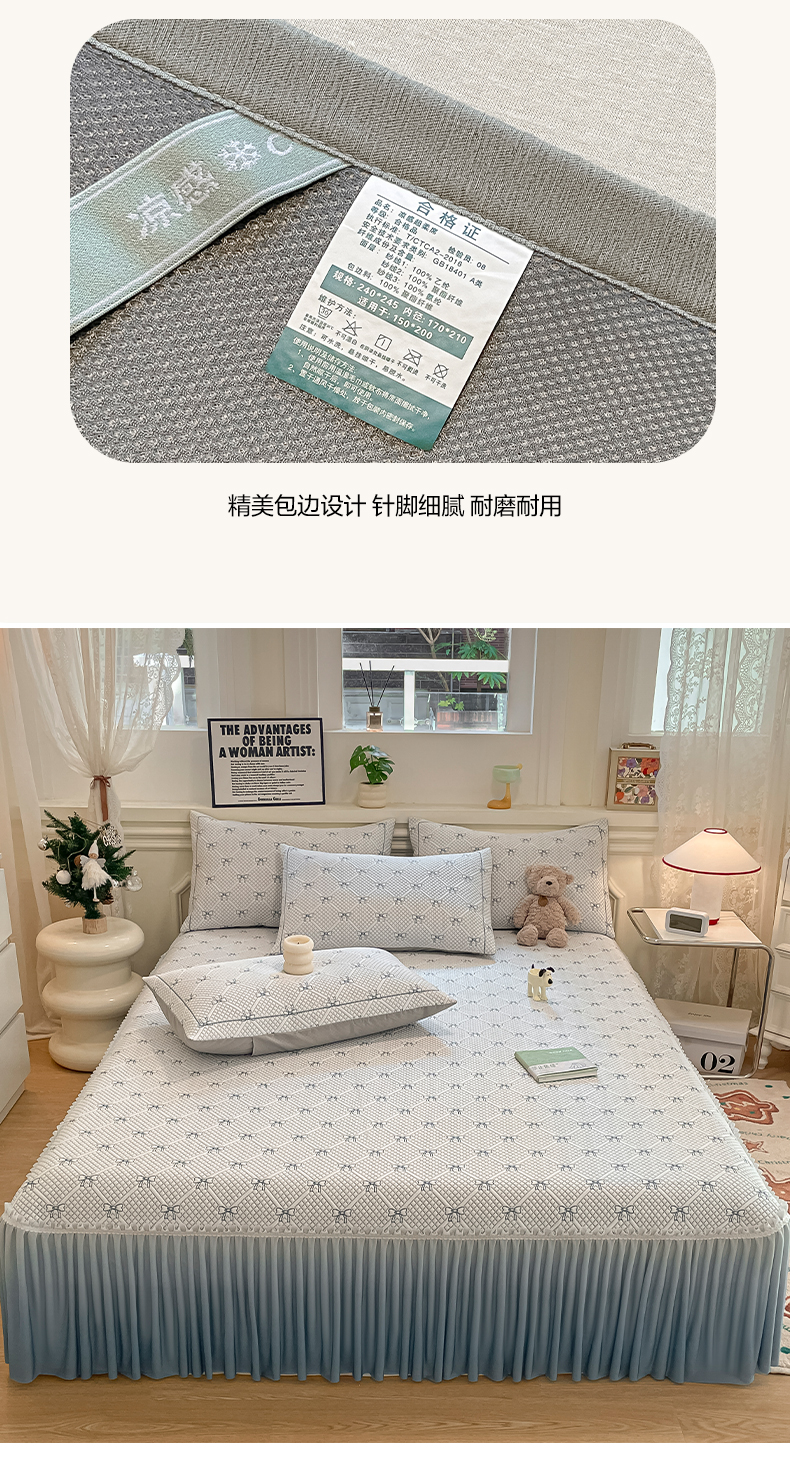 商品名称:雅居纺家纺 2025新款加厚三明治底床裙款凉感席 蝴蝶结爱恋-蓝