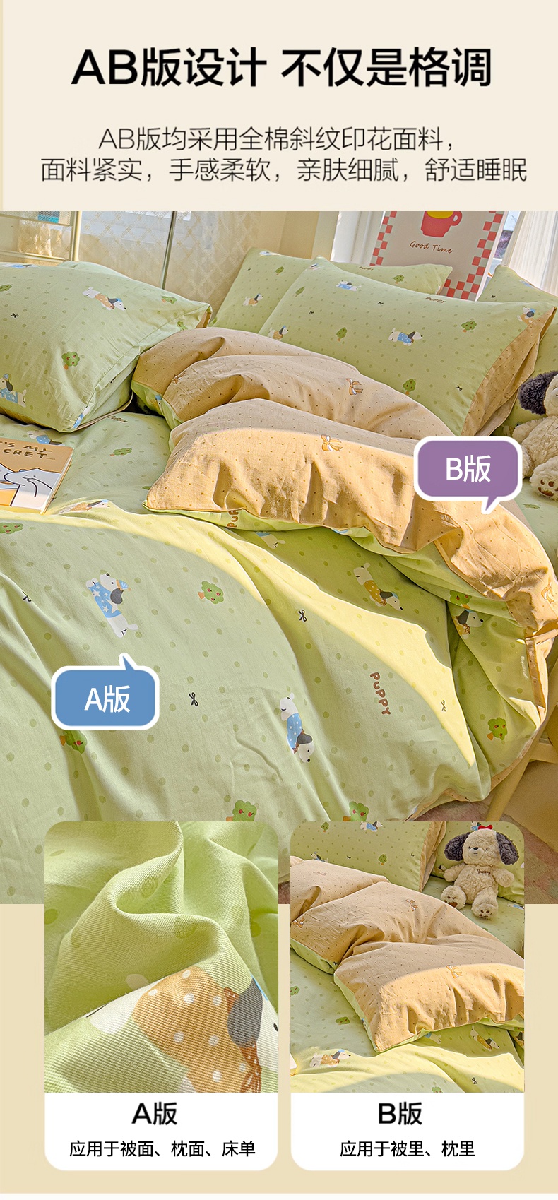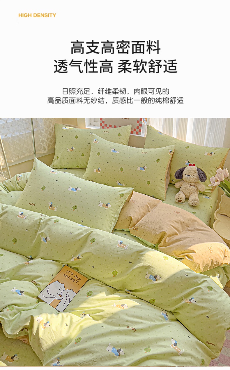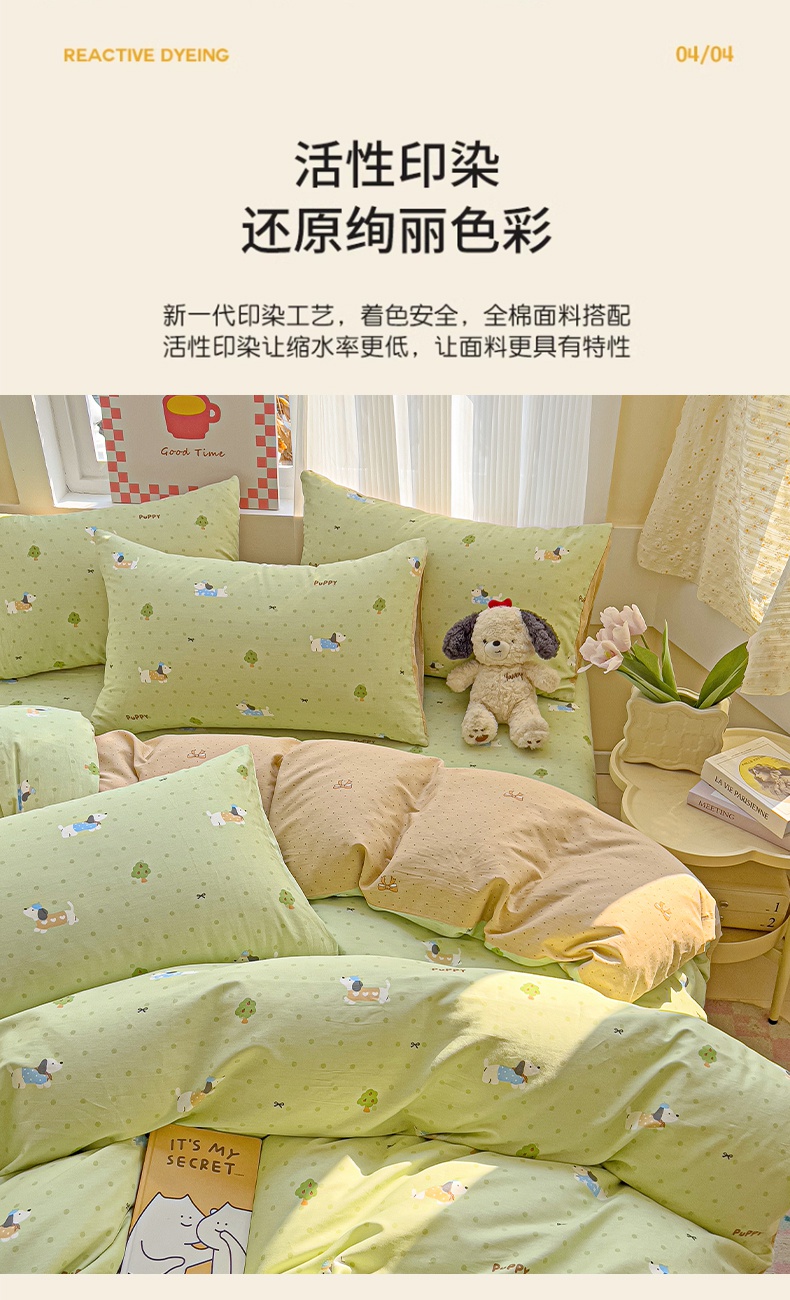 棉生活家纺 2025新款ins全棉小清新系列四件套 嗨皮狗狗