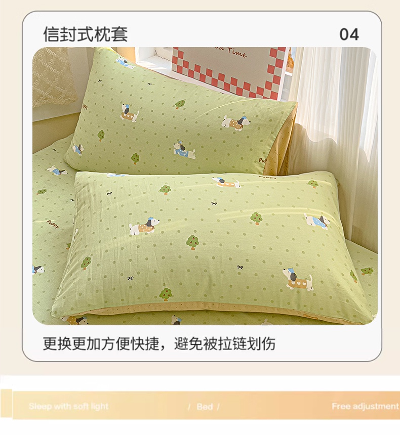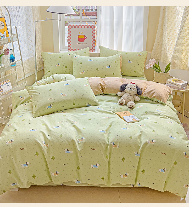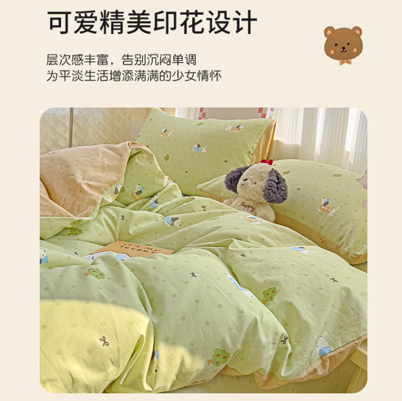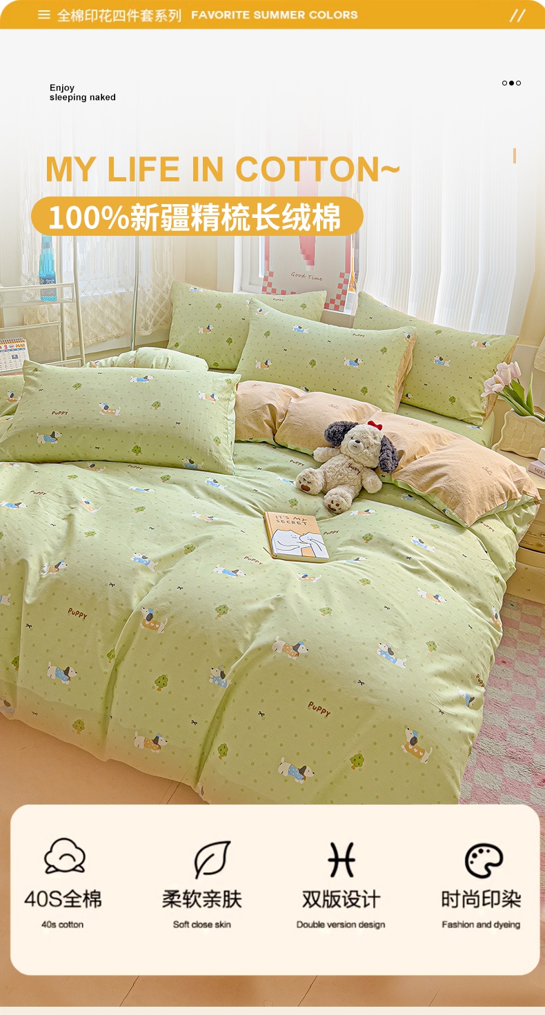 棉生活家纺 2025新款ins全棉小清新系列四件套 嗨皮狗狗