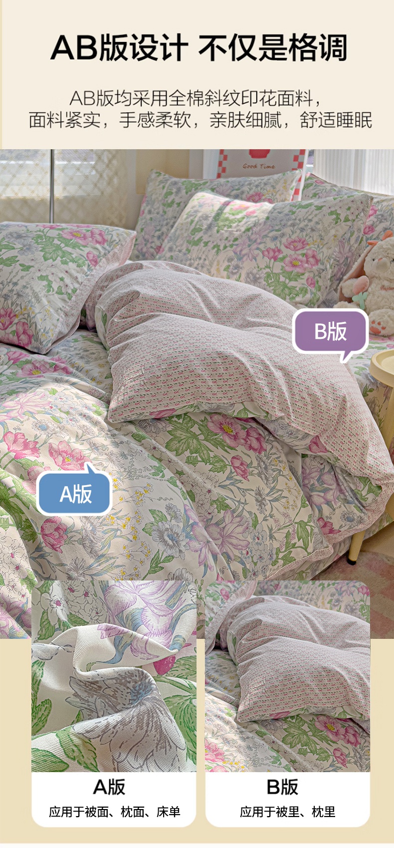 商品名称:棉生活家纺 2025新款ins全棉小清新系列四件套 丝丝花香
