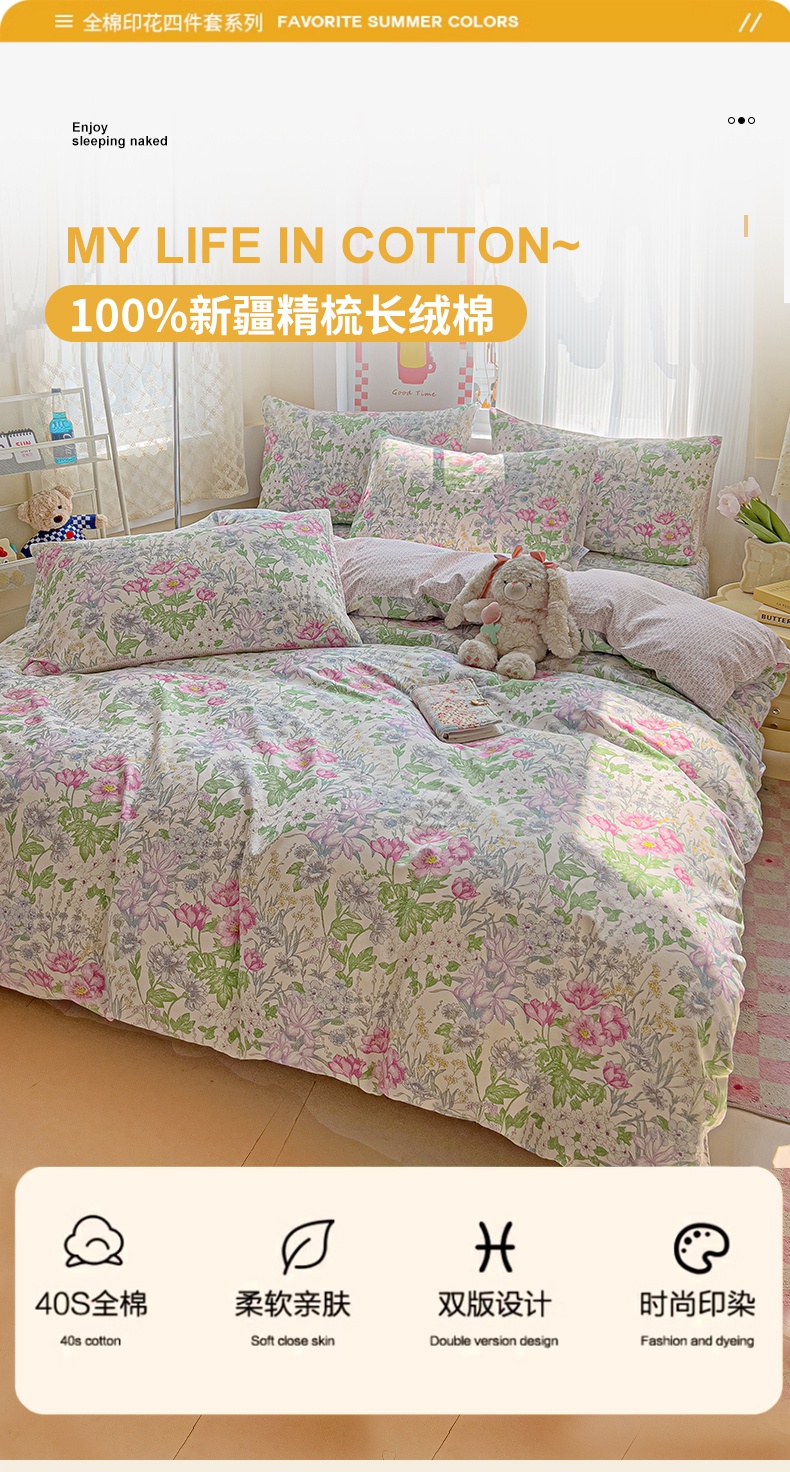 棉生活家纺 2025新款ins全棉小清新系列四件套 丝丝花香