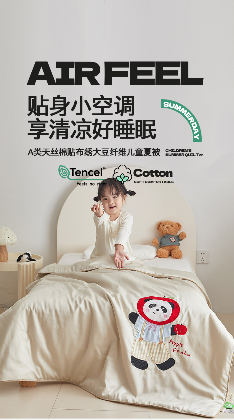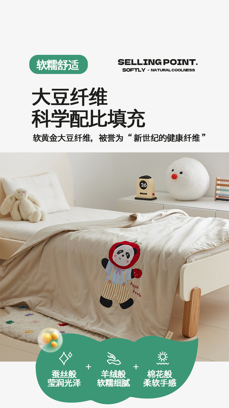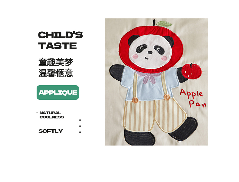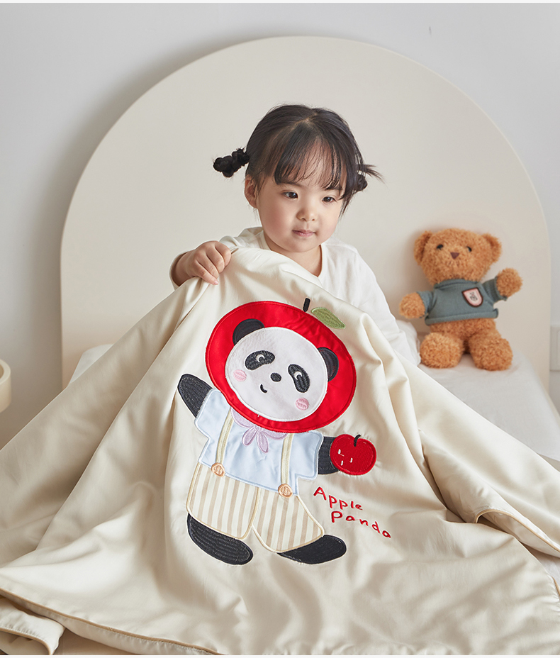 荷马之梦 2025新款系列—A类棉贴布绣大豆儿童夏被 苹果小熊猫