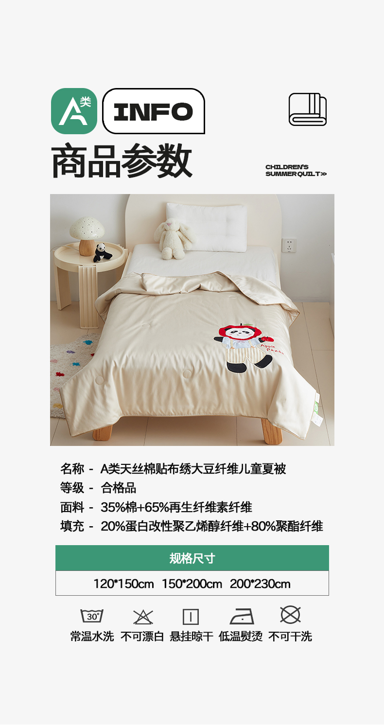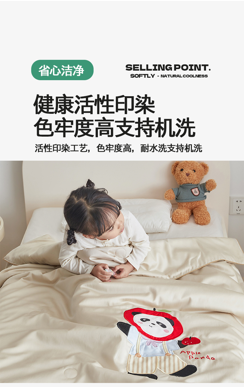 商品名称:荷马之梦 2025新款系列—A类棉贴布绣大豆儿童夏被 苹果小熊猫