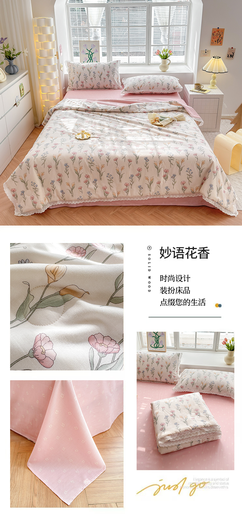 2025新款全棉花边大豆夏被四件套 妙语花香
