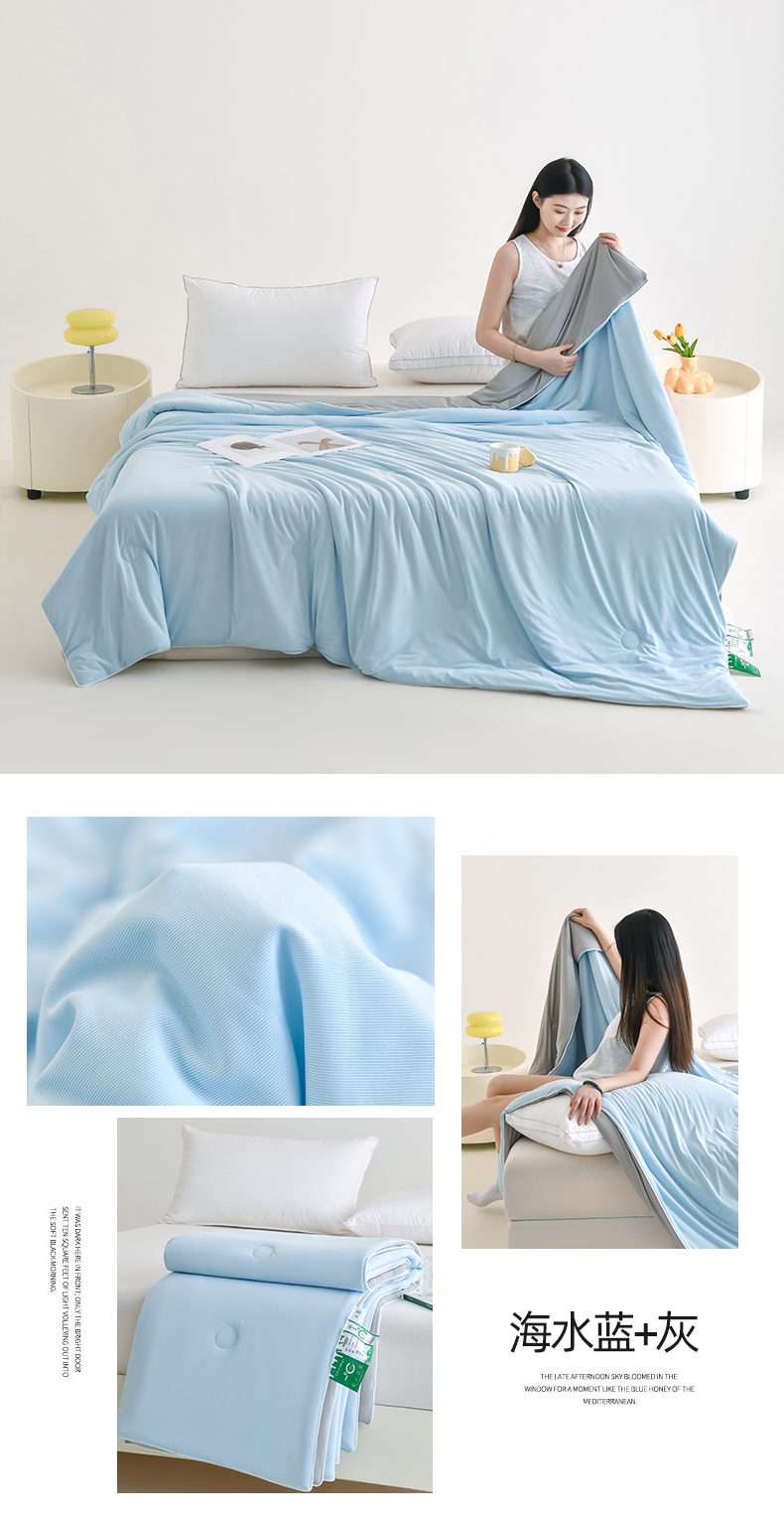 商品名称:圣尔雅2025新款A类高克重锦纶氨纶黑科技凉感夏被冰激凌空调被夏凉被 海水蓝+灰