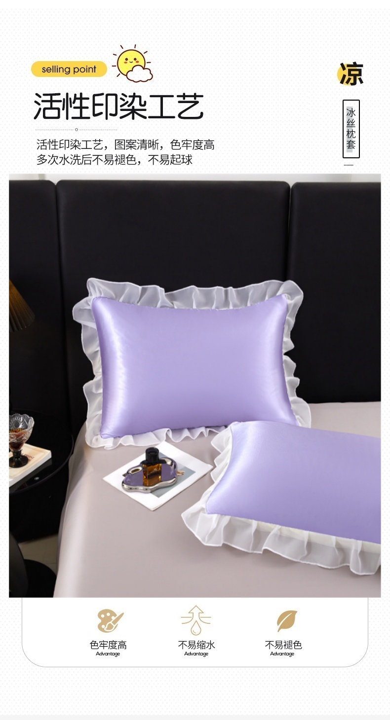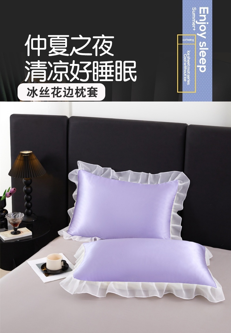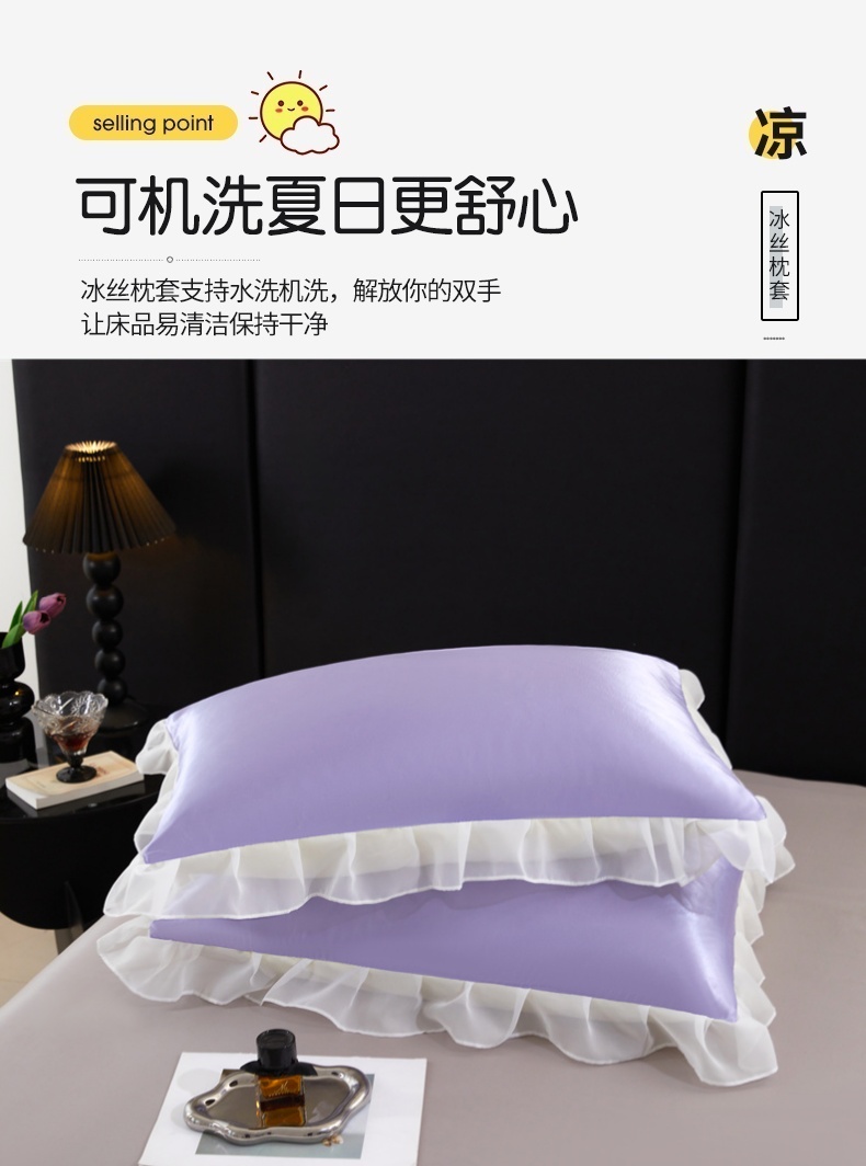 商品名称:梦舒羽 2025新款公主风夏季冰丝枕套单人一对装可水洗花边枕头套宿舍48x74cm枕芯套枕头套 花边款-雪青色