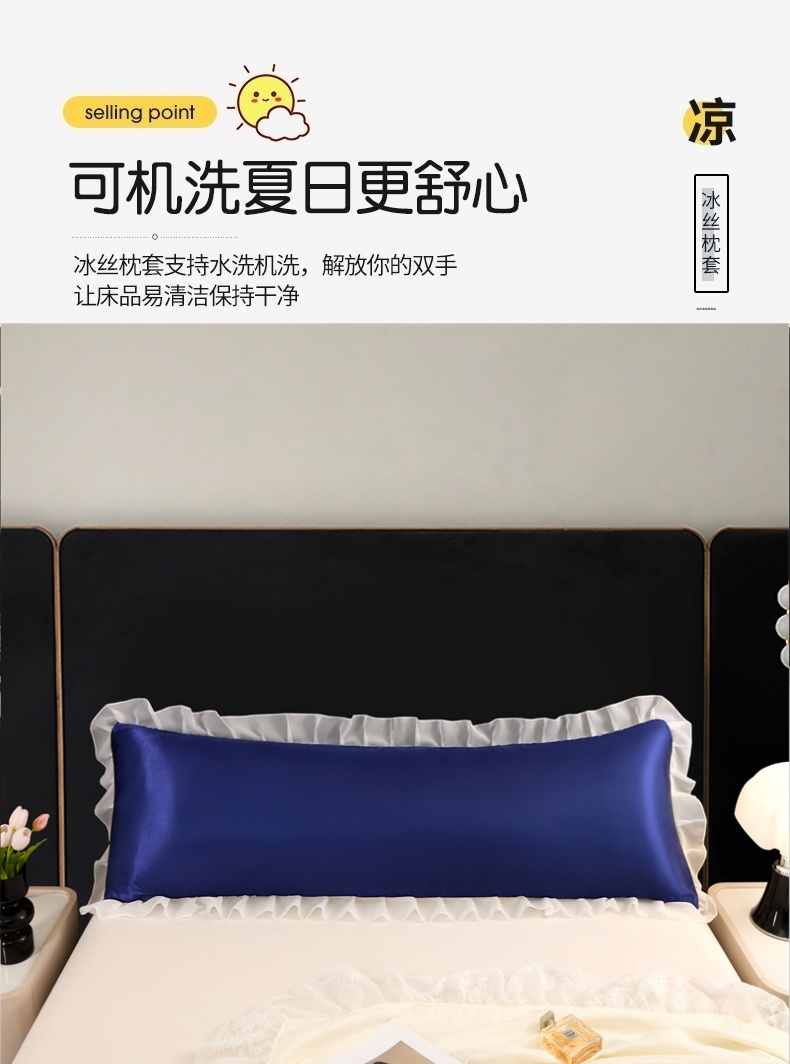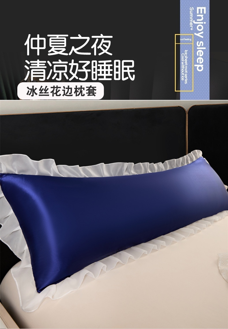 商品名称:梦舒羽 2025新款公主风夏季冰丝枕套双人情侣枕头套加长枕芯套1.5m内胆套 花边款-深海蓝