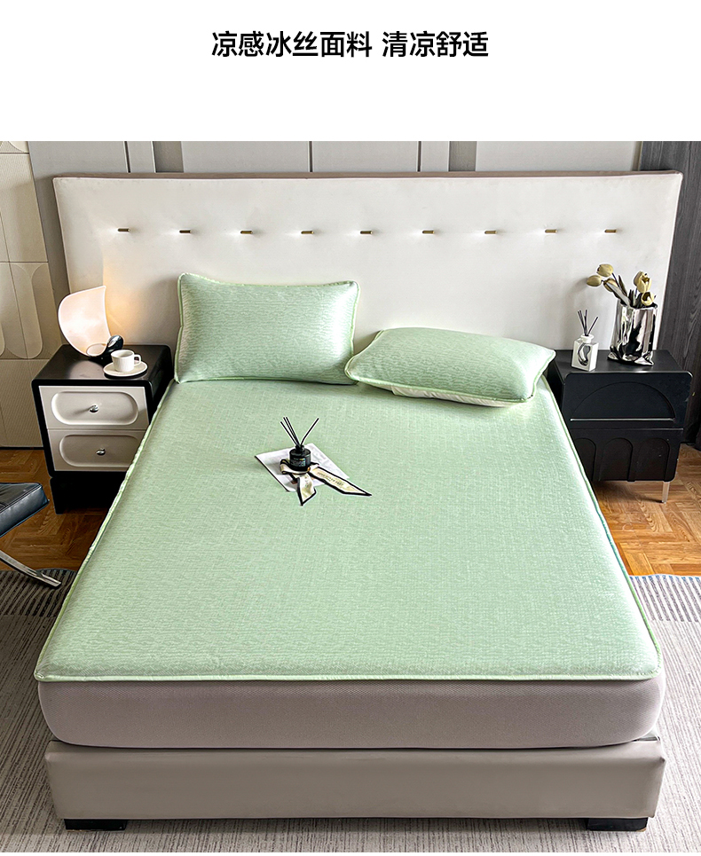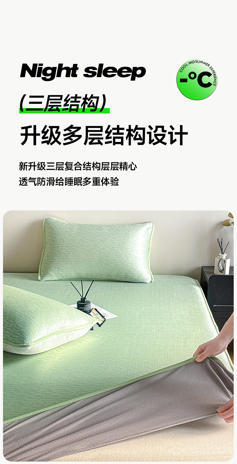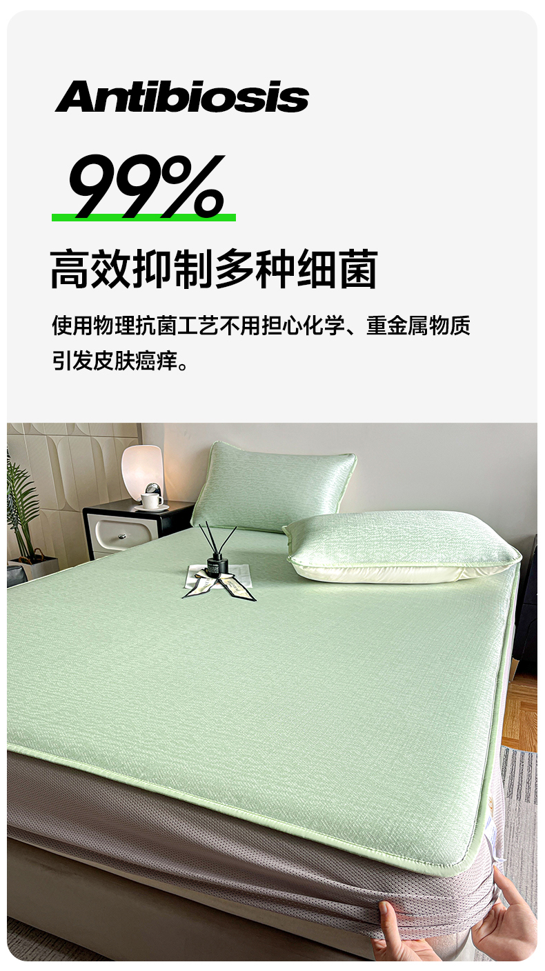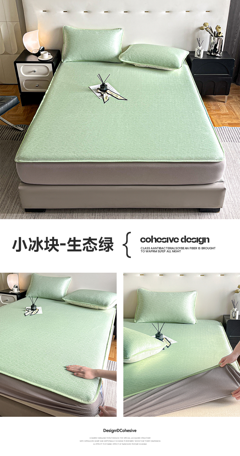 摩妮卡2025新款A类抗菌冰丝凉席席子三件套--床笠款 小冰块-生态绿