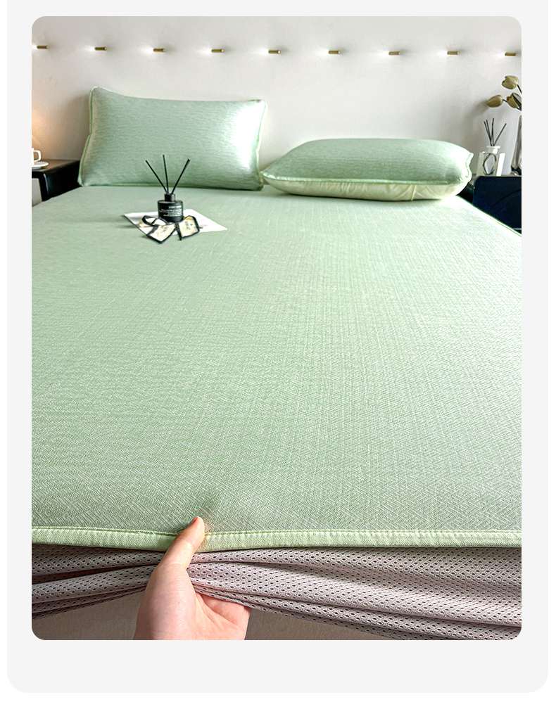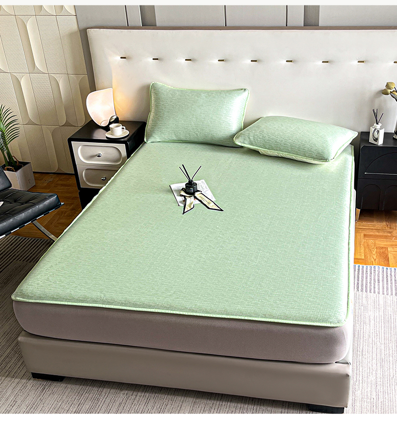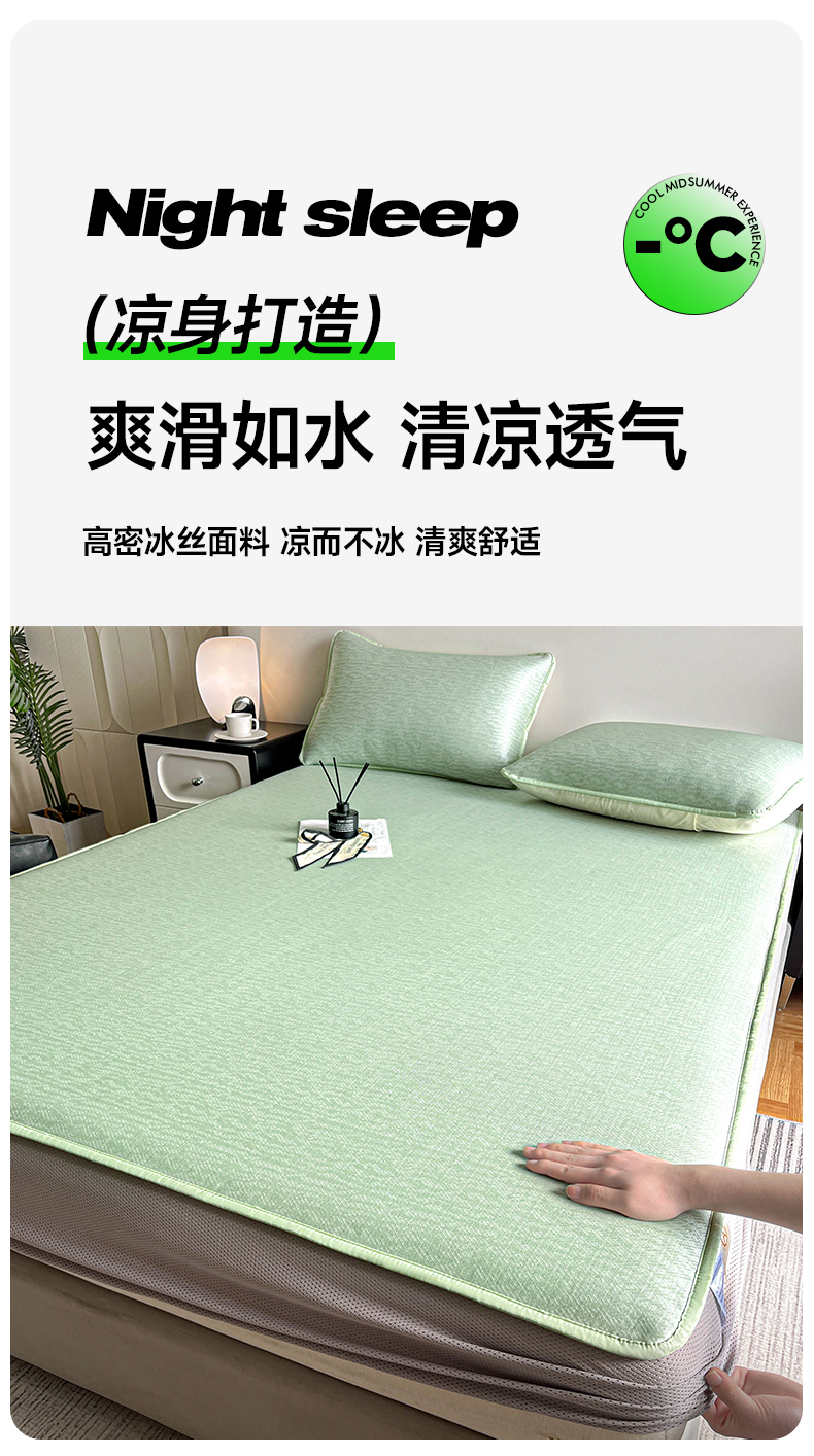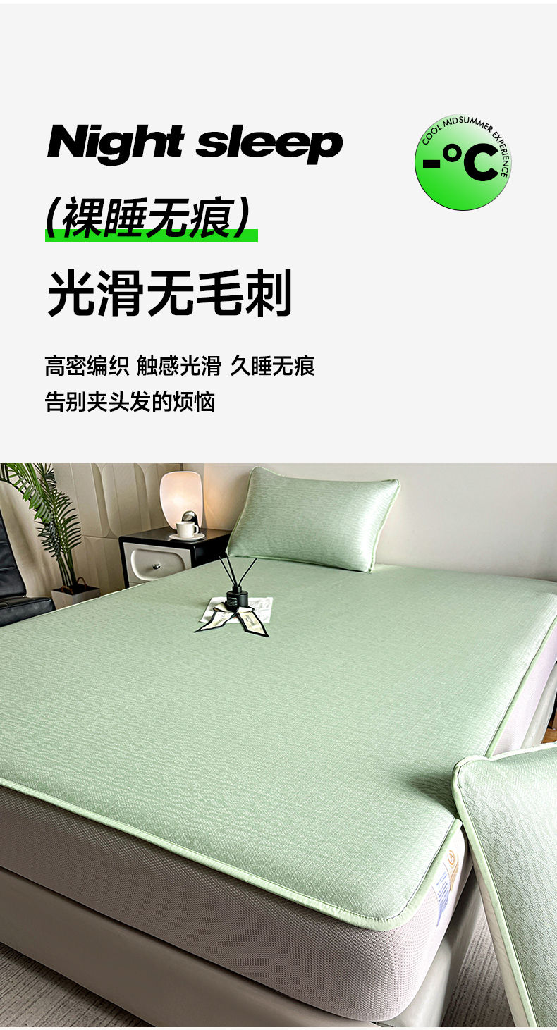 摩妮卡2025新款A类抗菌冰丝凉席席子三件套--床笠款 小冰块-生态绿