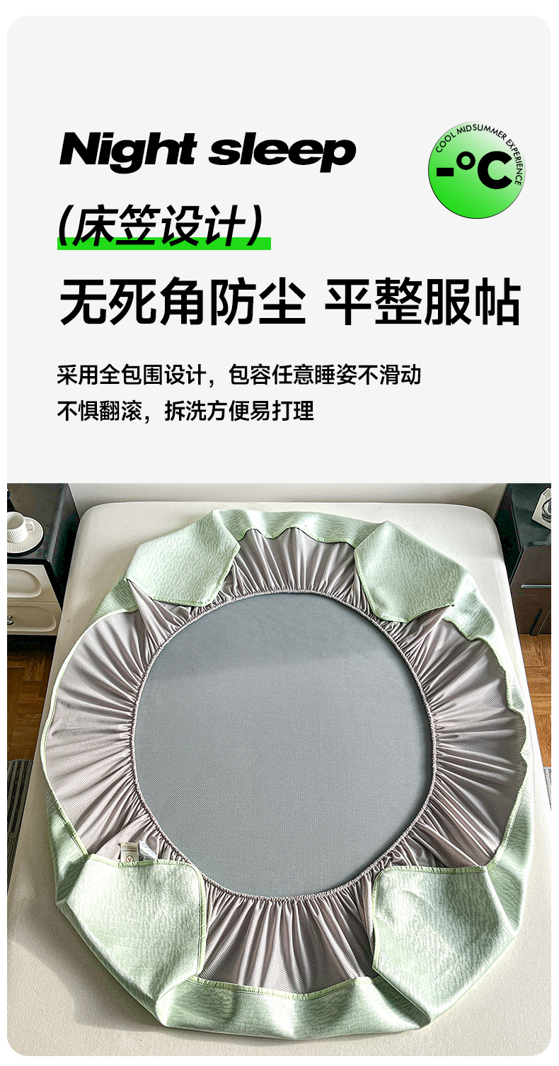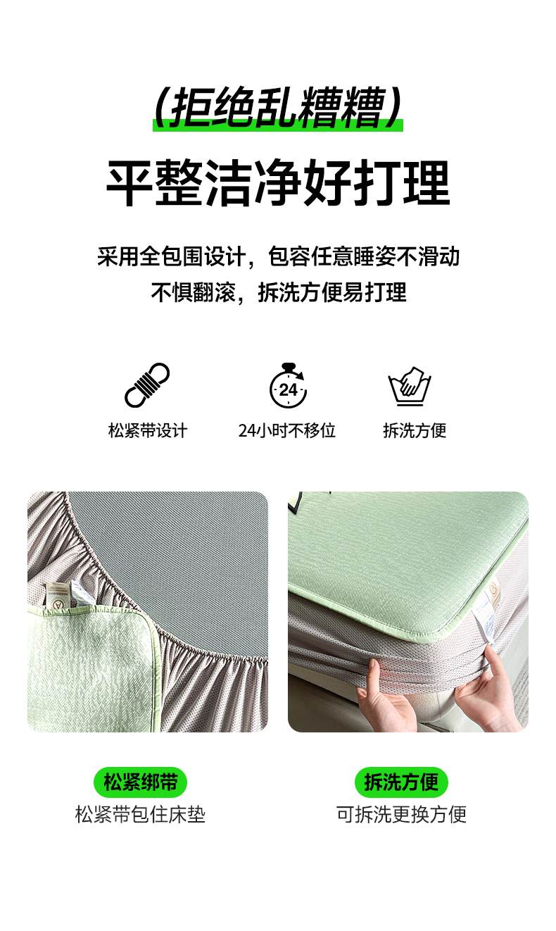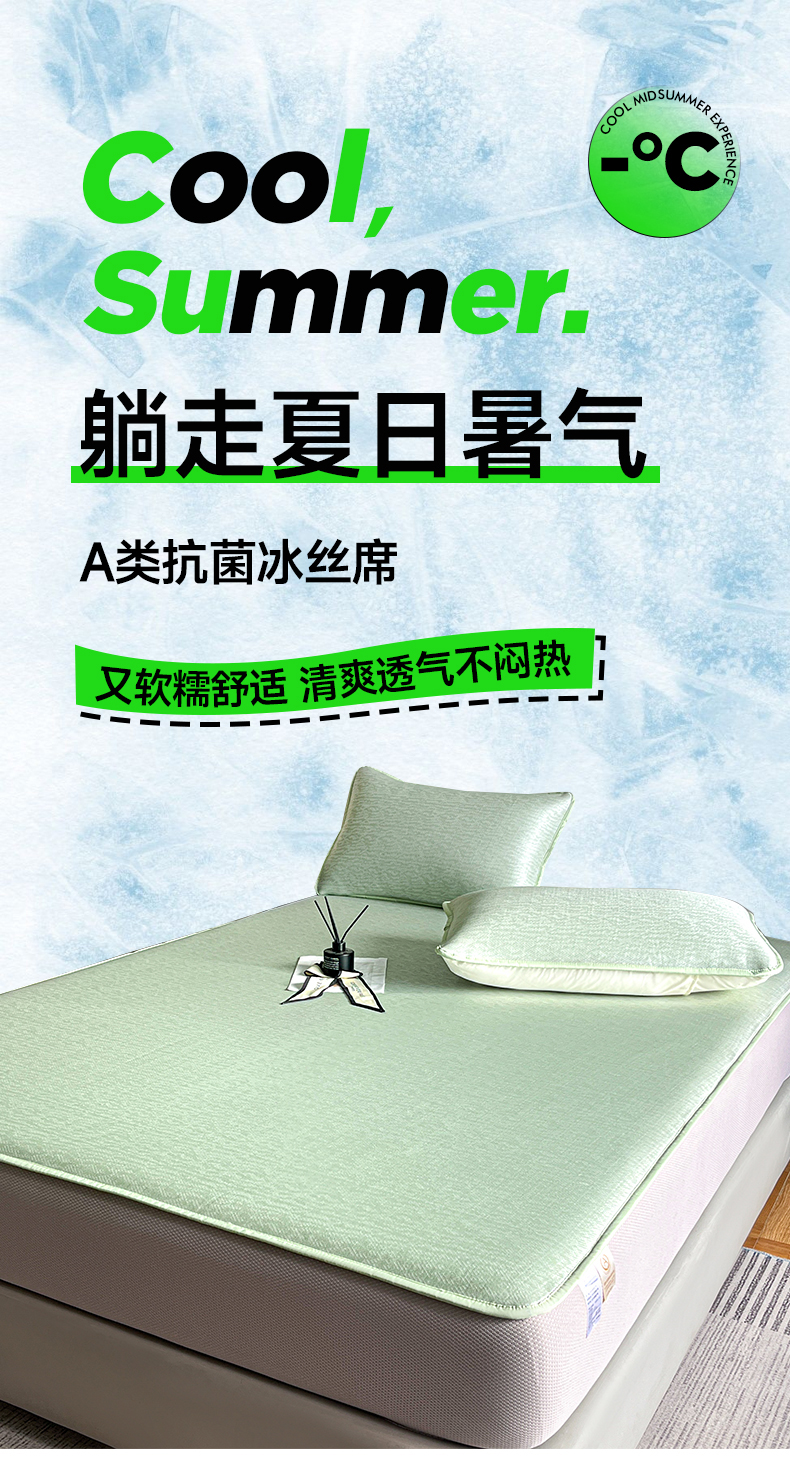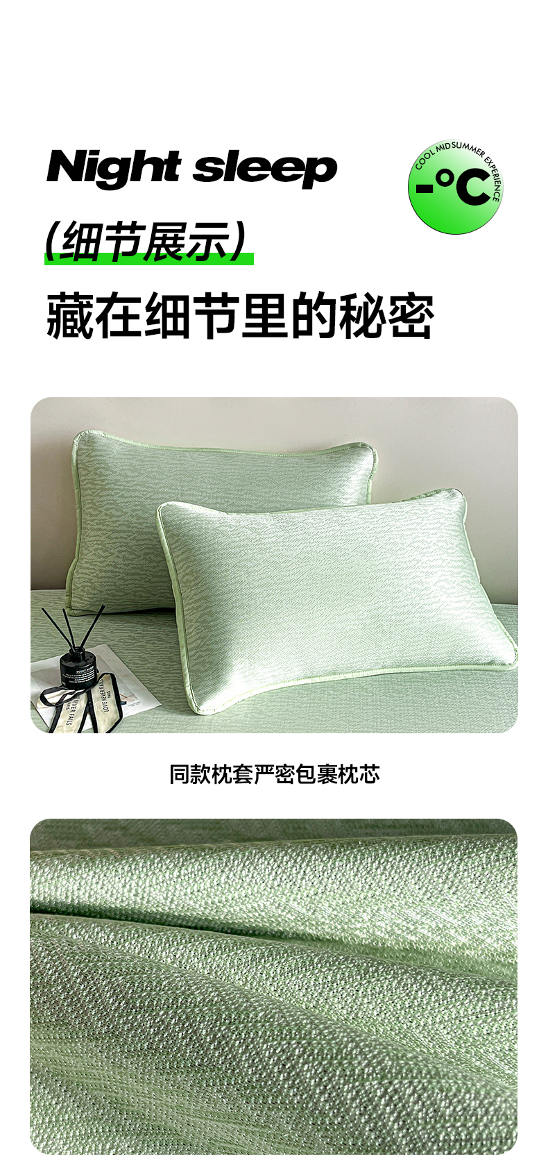 摩妮卡2025新款A类抗菌冰丝凉席席子三件套--床笠款 小冰块-生态绿