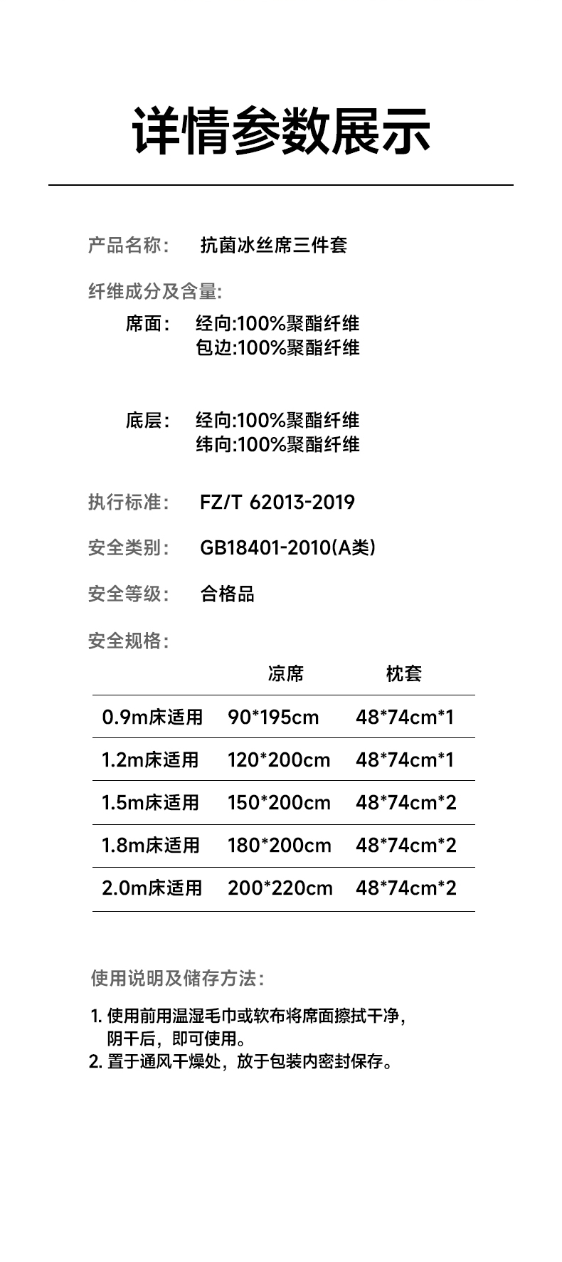商品名称:摩妮卡2025新款A类抗菌冰丝凉席席子三件套--床笠款 小冰块-生态绿