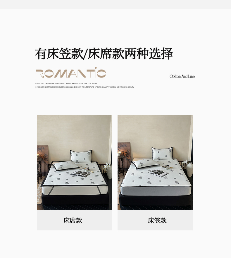 商品名称:三味舒屋 2025新款抗菌防螨小花卉系列900D高端印花冰藤凉席 小玫瑰 床席