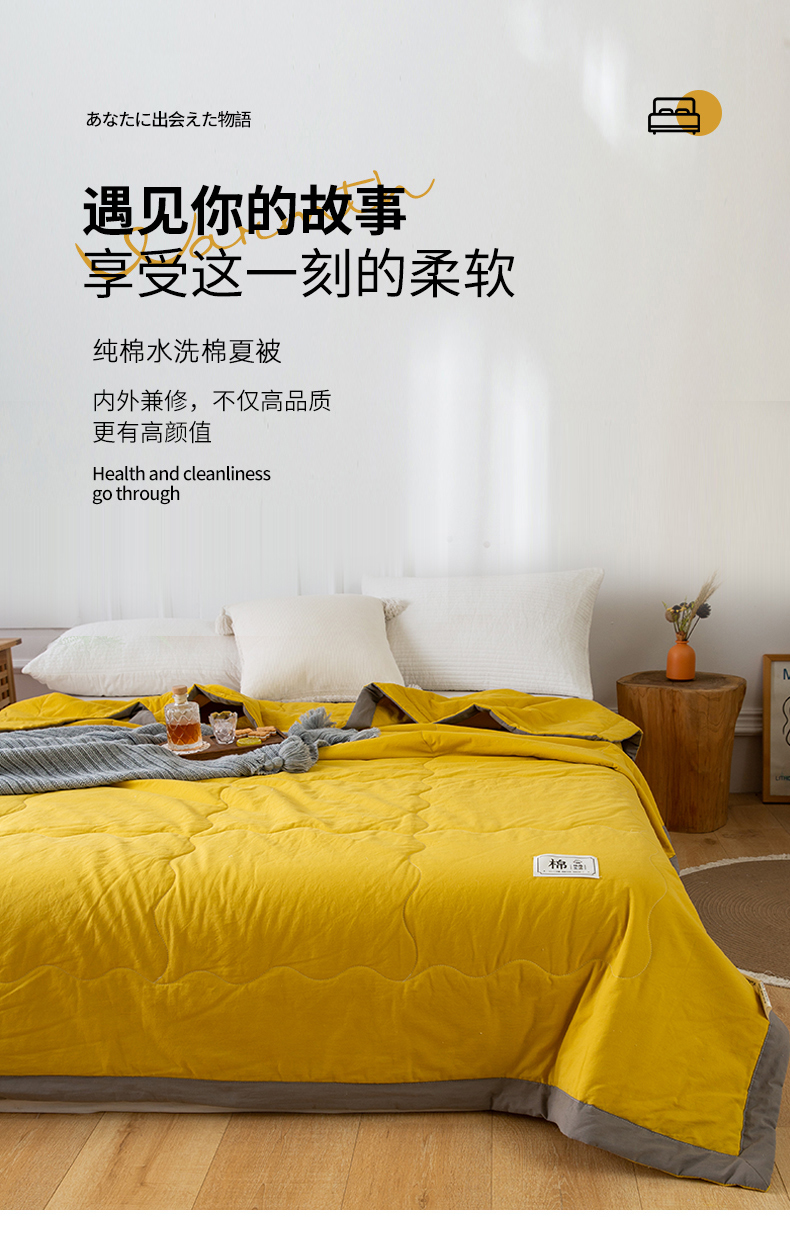 商品名称:天瑜 2024全棉夏被棉花芯纯色水洗棉夏凉被可水洗空调被 明亮黄