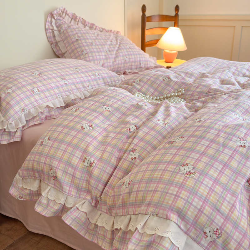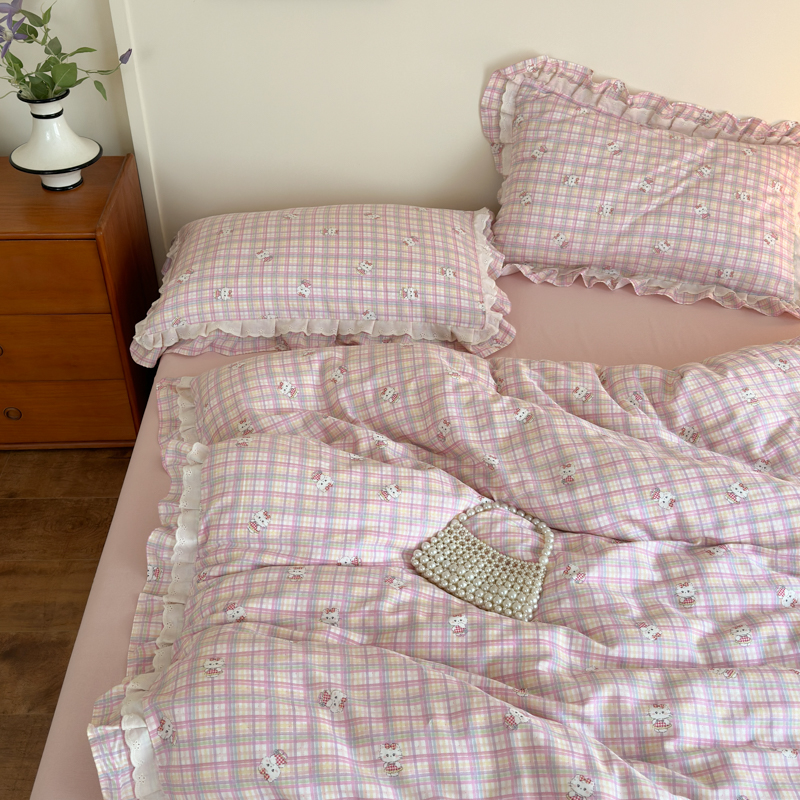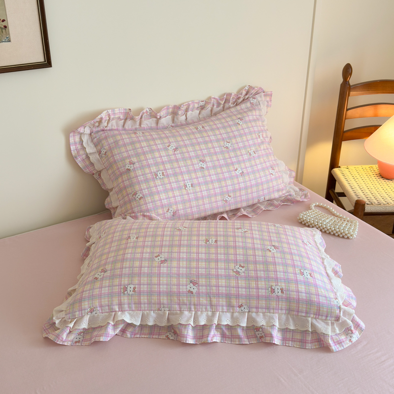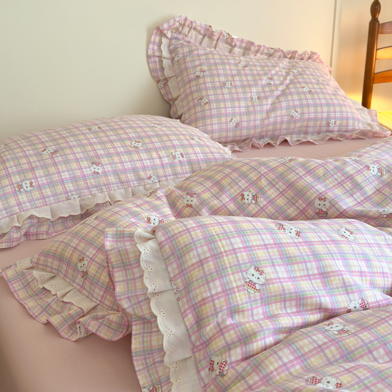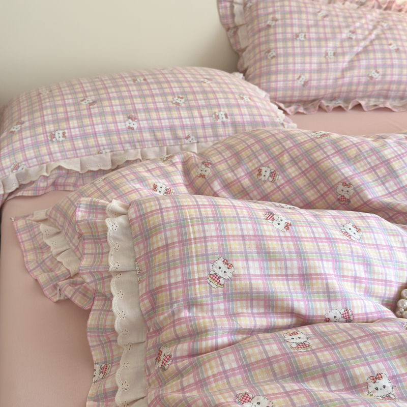 当前位置: 91家纺网 > 商品网购 > 床品套件 > 四件套 > 双层纱四件套 > 乐童家纺 2025纯棉A类双层纱双花边工艺小清新四件套 可爱猫咪
