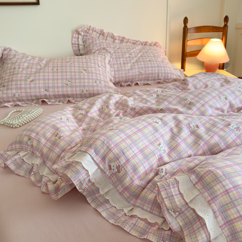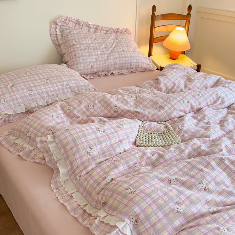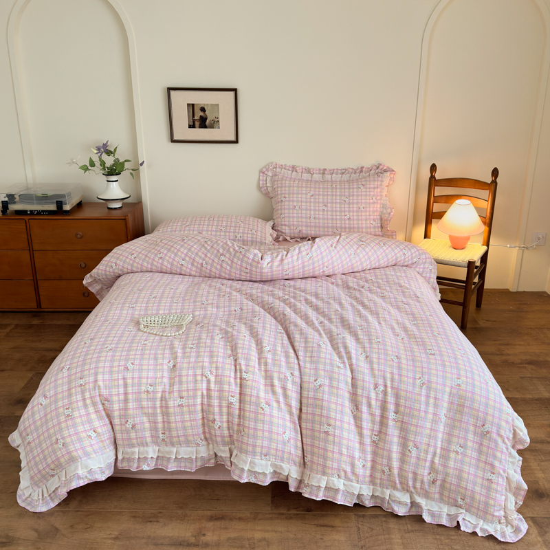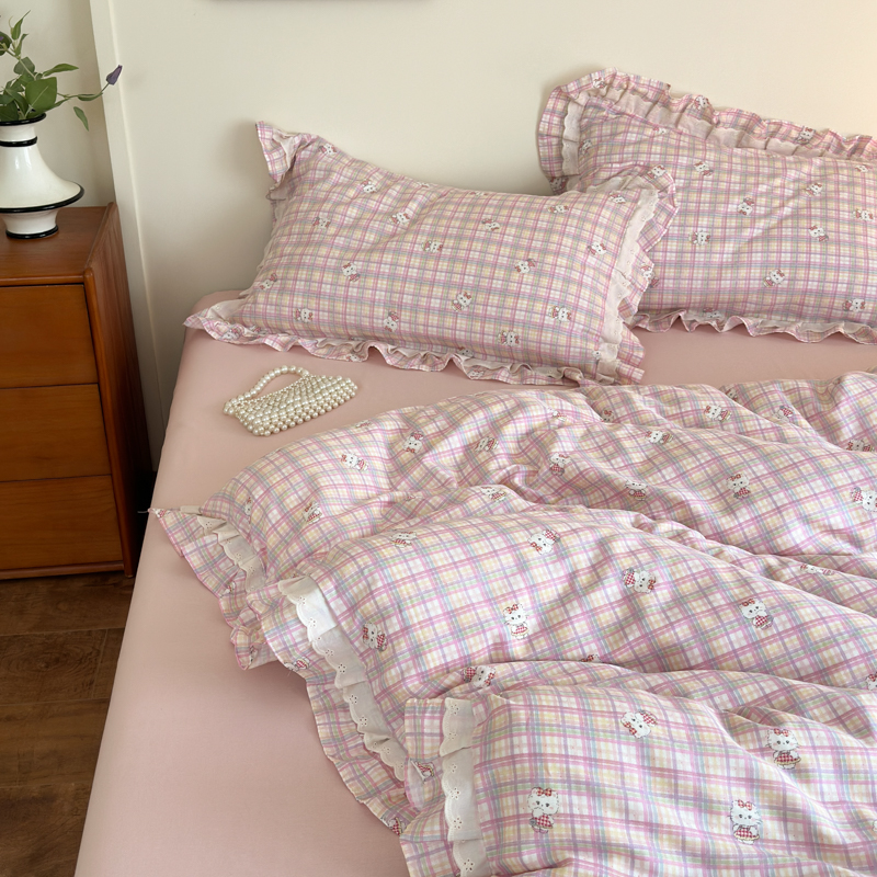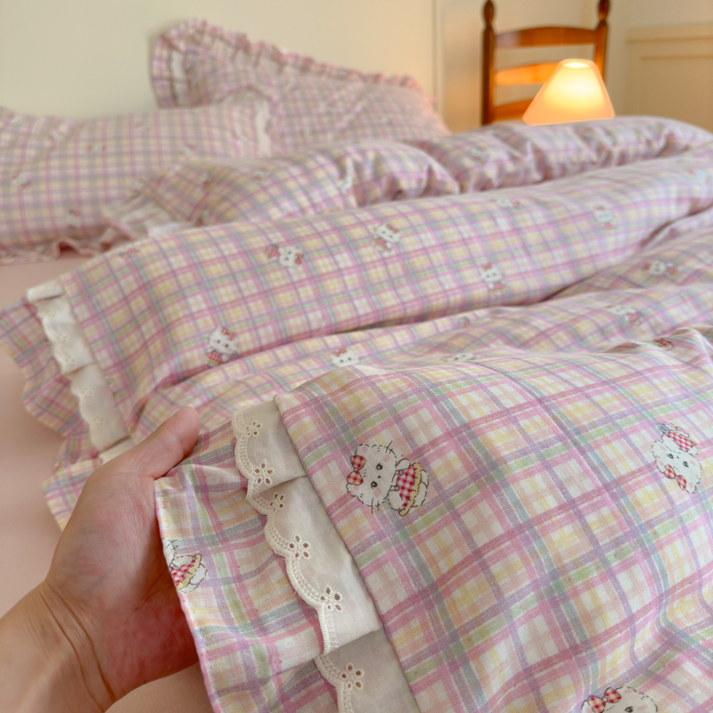 当前位置: 91家纺网 > 商品网购 > 床品套件 > 四件套 > 双层纱四件套 > 乐童家纺 2025纯棉A类双层纱双花边工艺小清新四件套 可爱猫咪