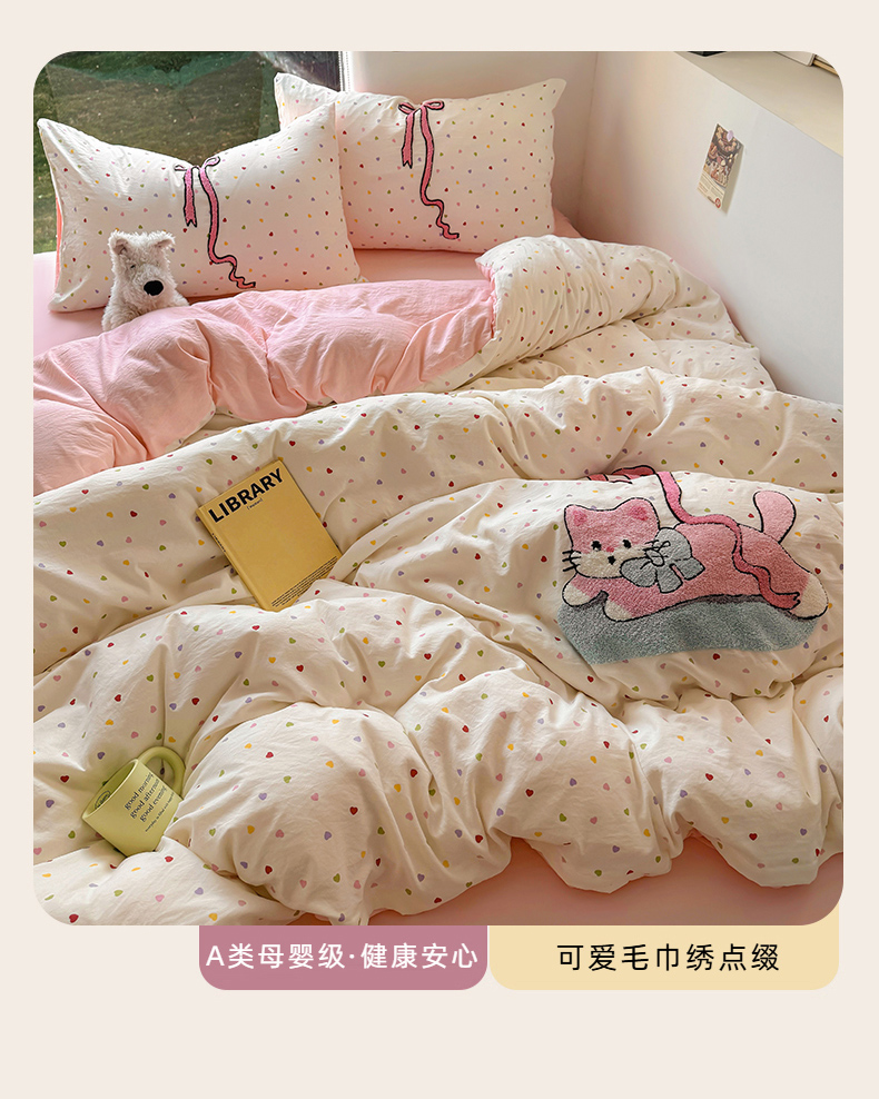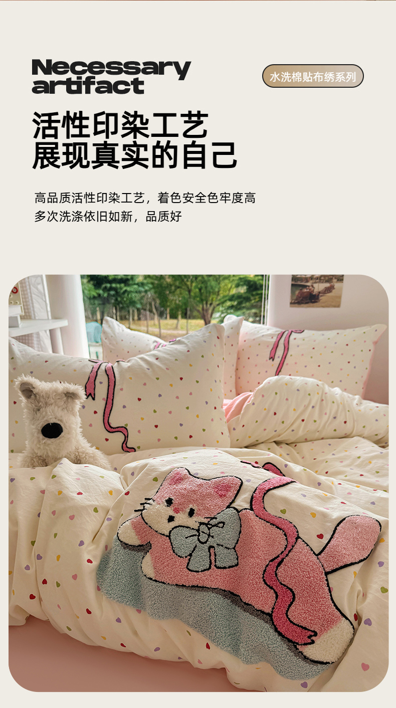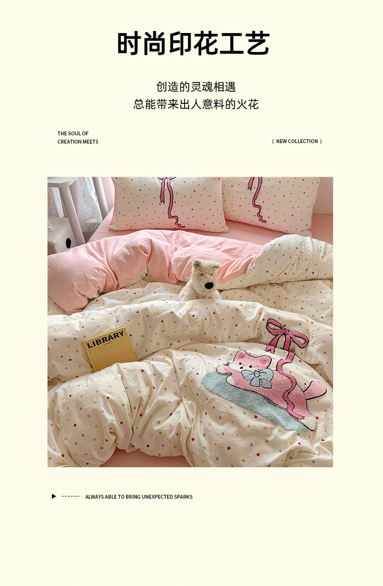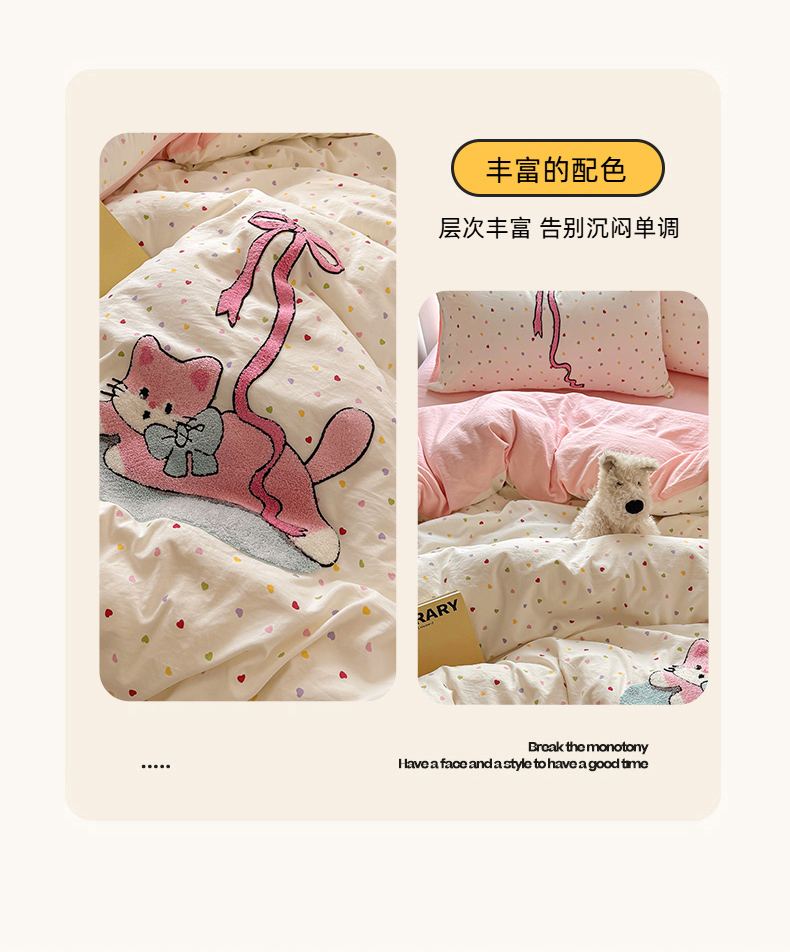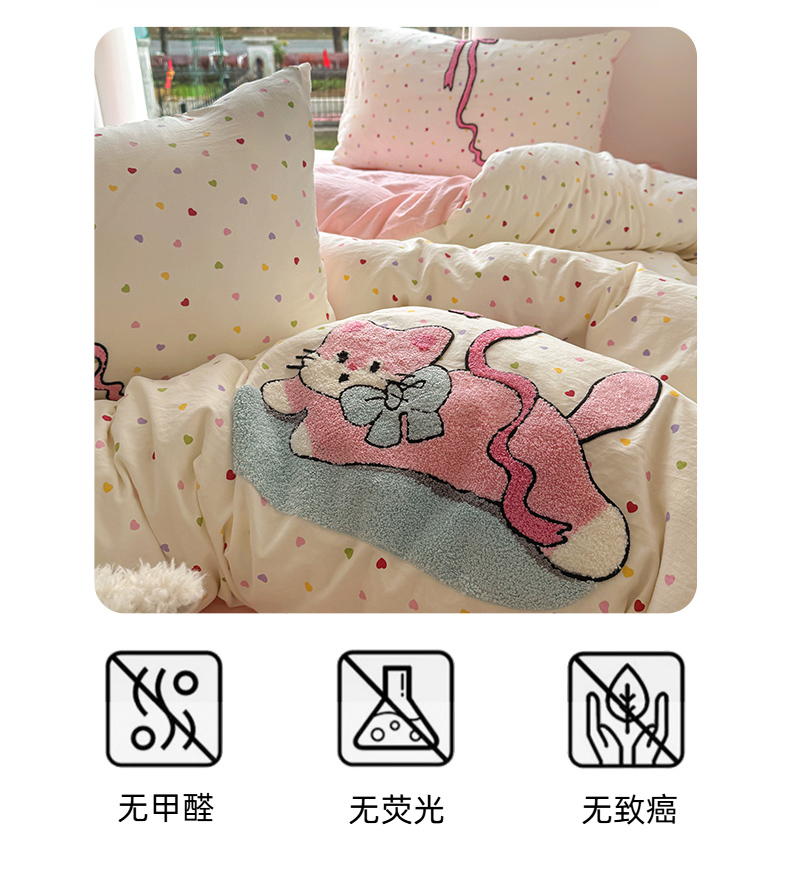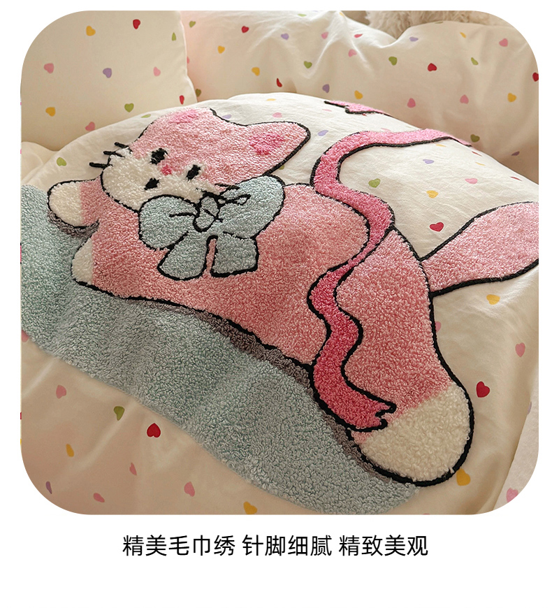 当前位置: 91家纺网 > 商品网购 > 床品套件 > 四件套 > 水洗棉四件套 > 耀达家居 2025新款A类水洗棉毛巾绣四件套 甜心猫咪