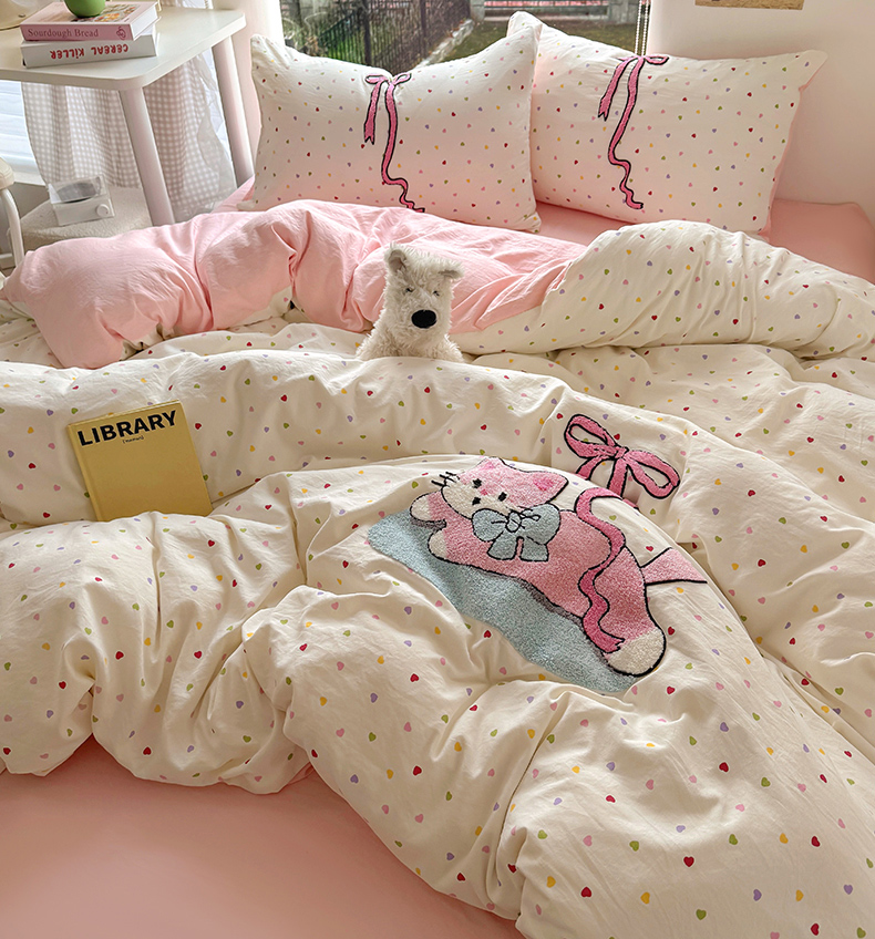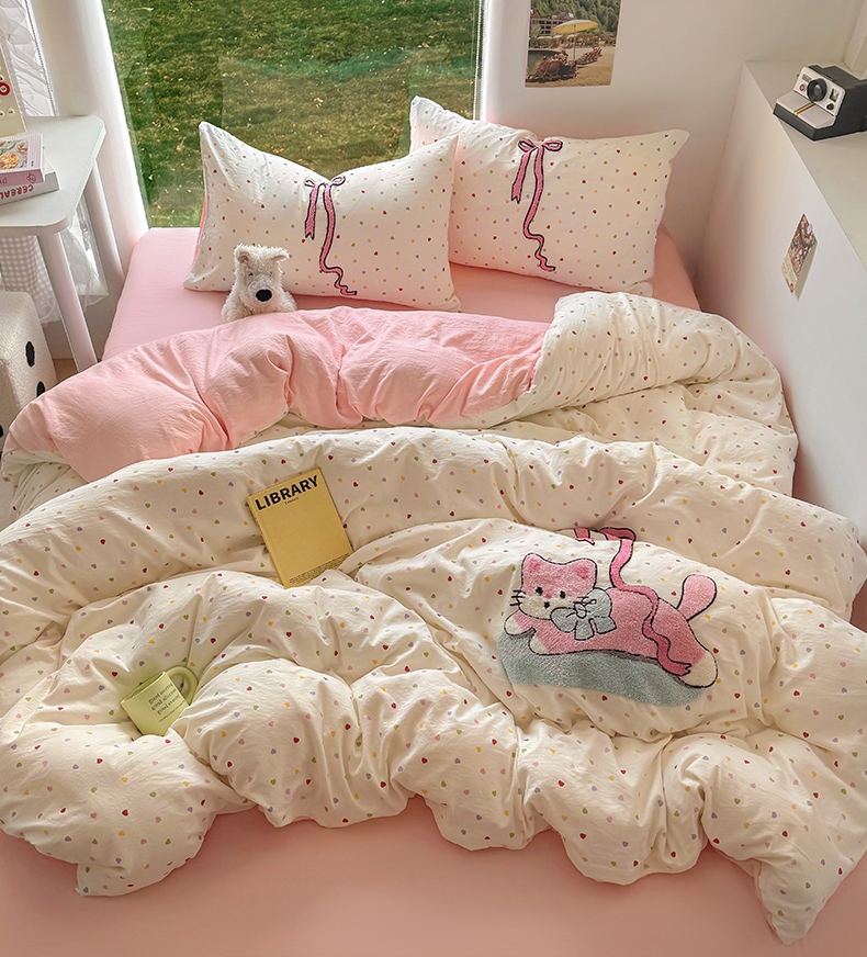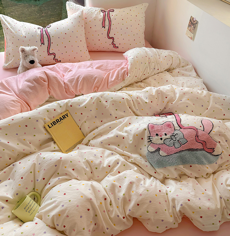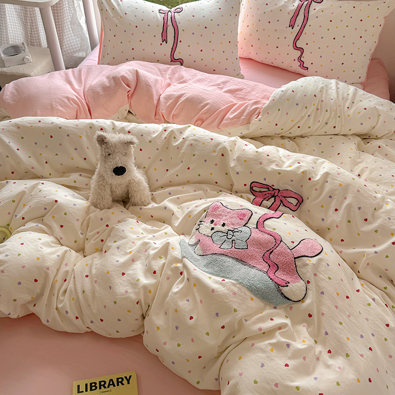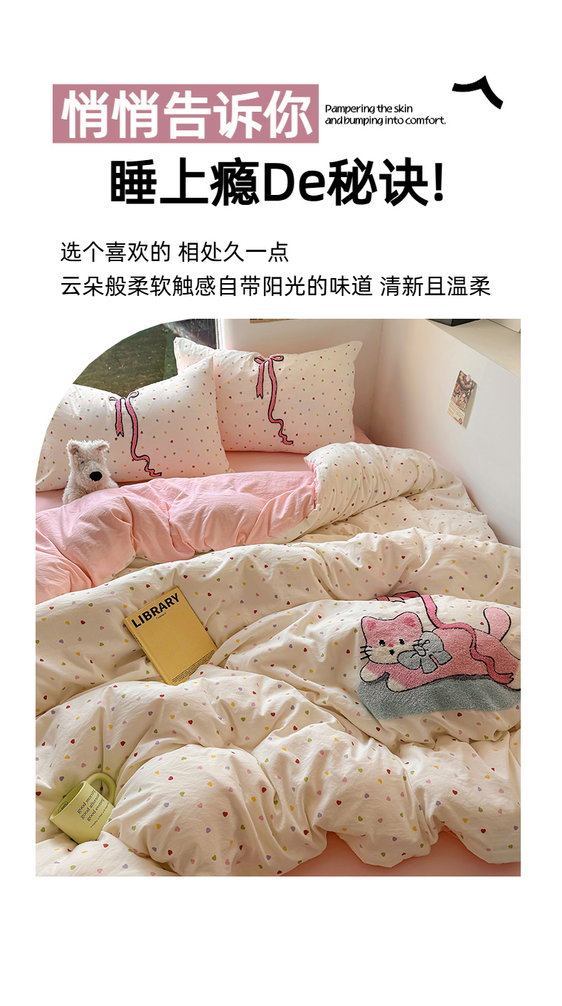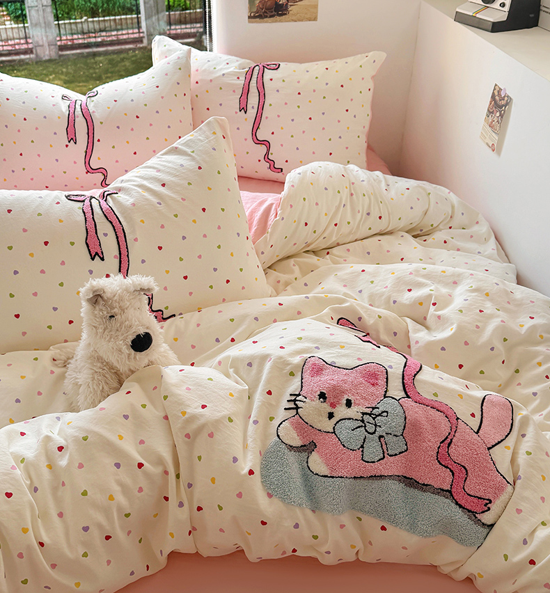 当前位置: 91家纺网 > 商品网购 > 床品套件 > 四件套 > 水洗棉四件套 > 耀达家居 2025新款A类水洗棉毛巾绣四件套 甜心猫咪