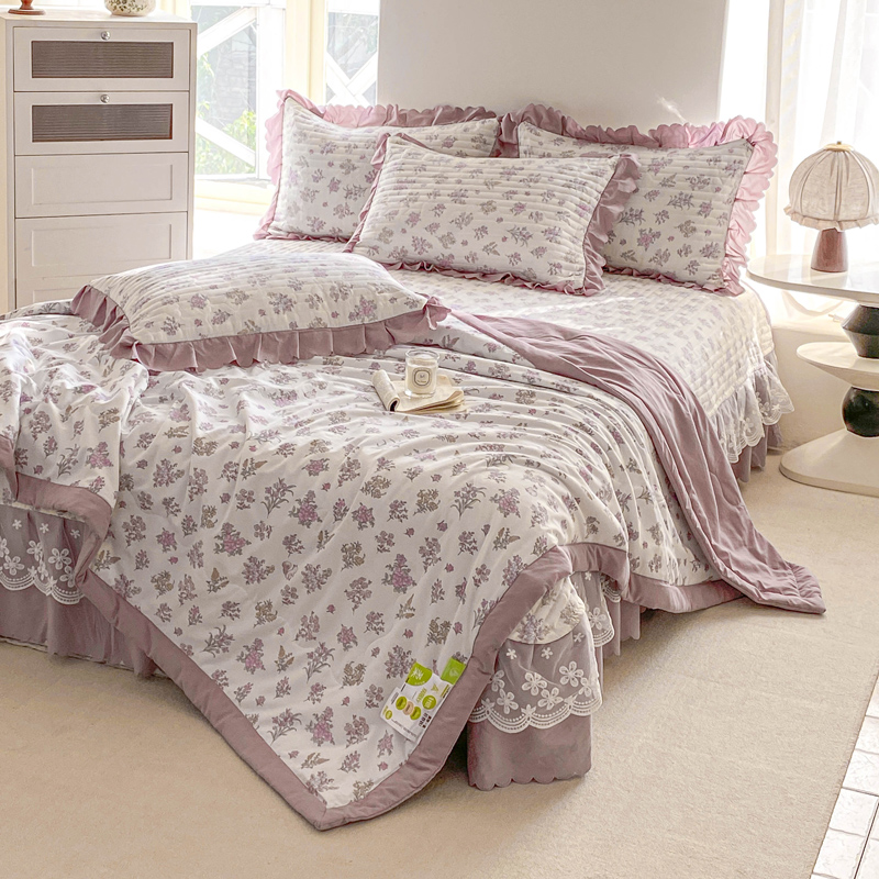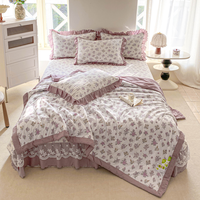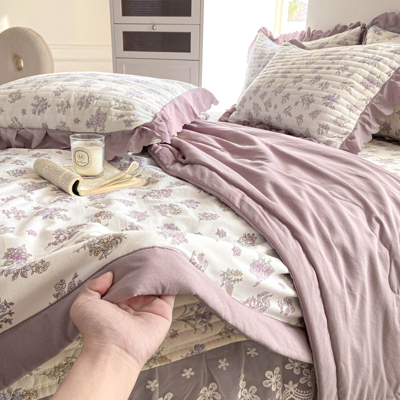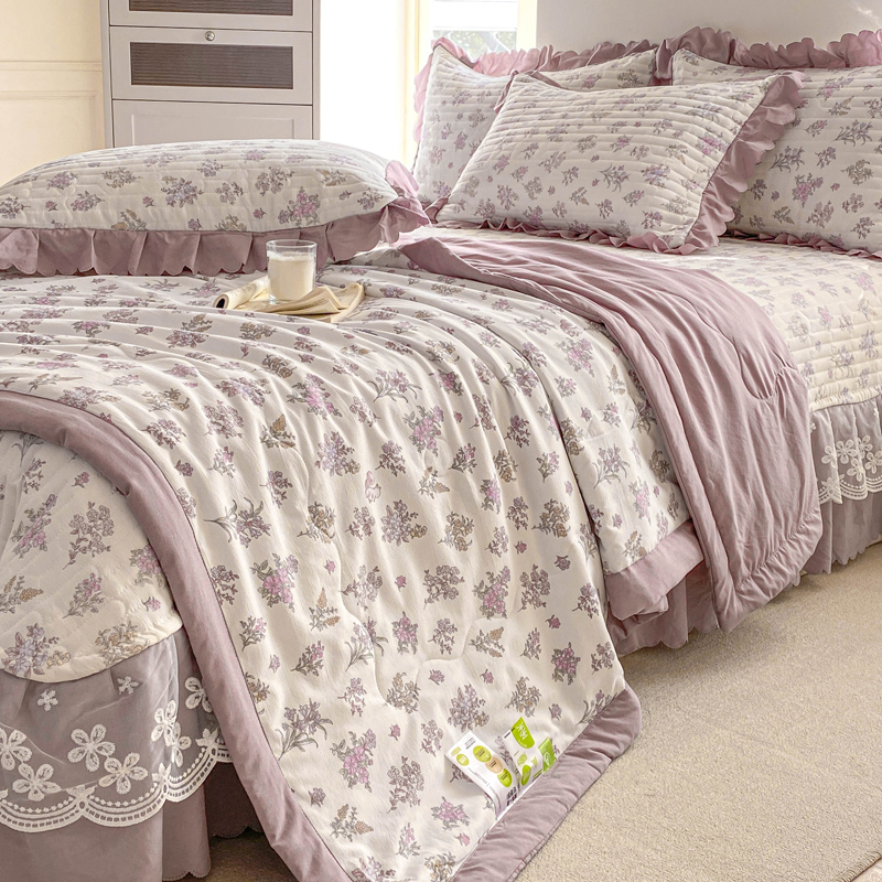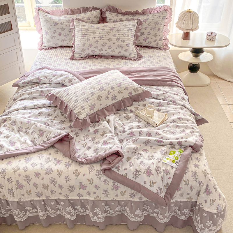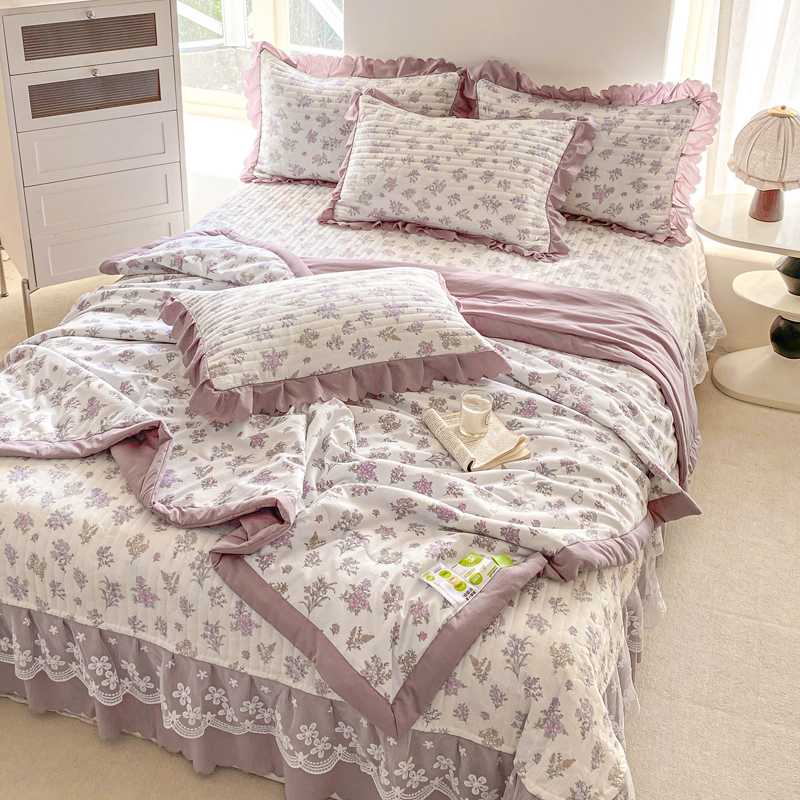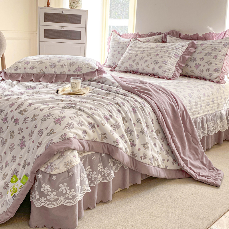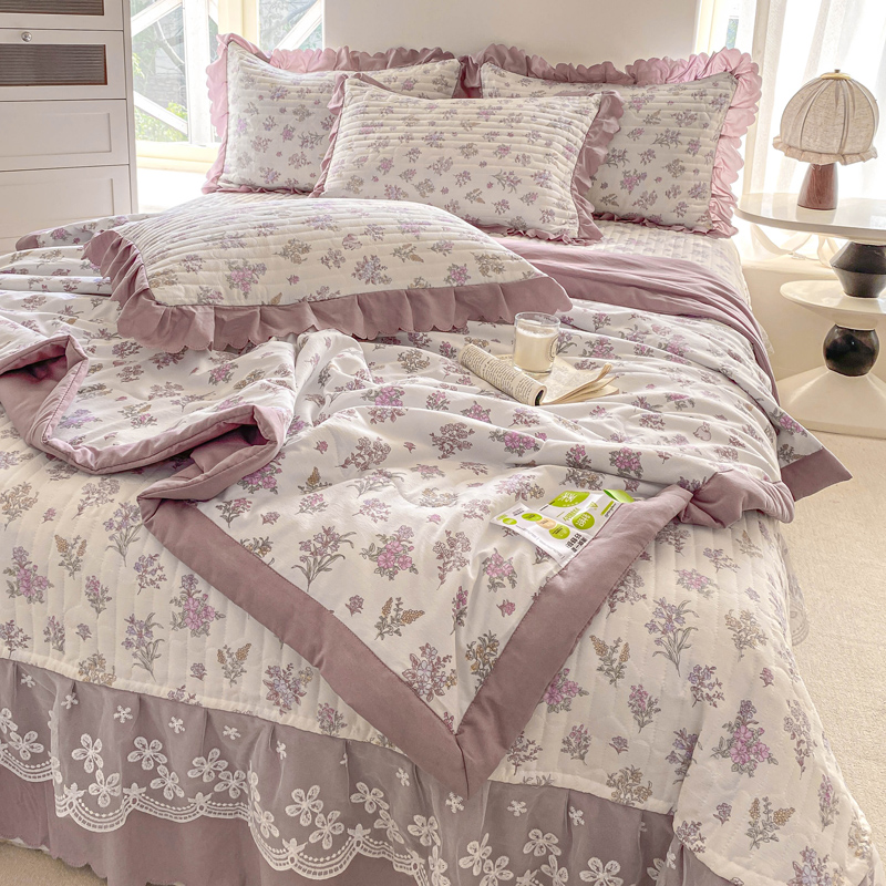 当前位置: 91家纺网 > 商品网购 > 床品套件 > 四件套 > 针织棉四件套 > 2025新款直播热款A类针织棉双层纱床盖款夏被四件套 薰衣草