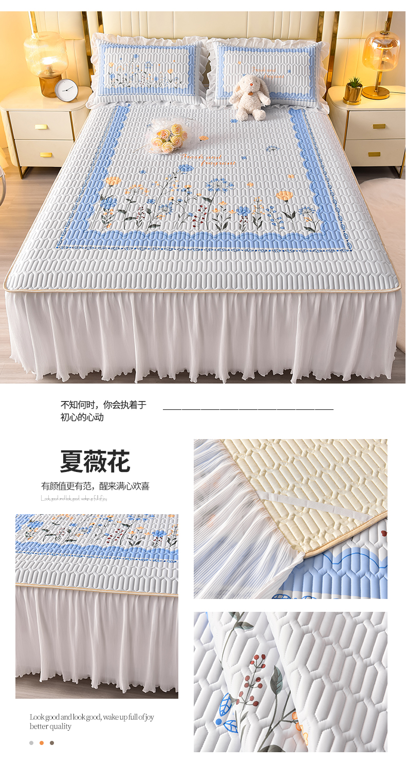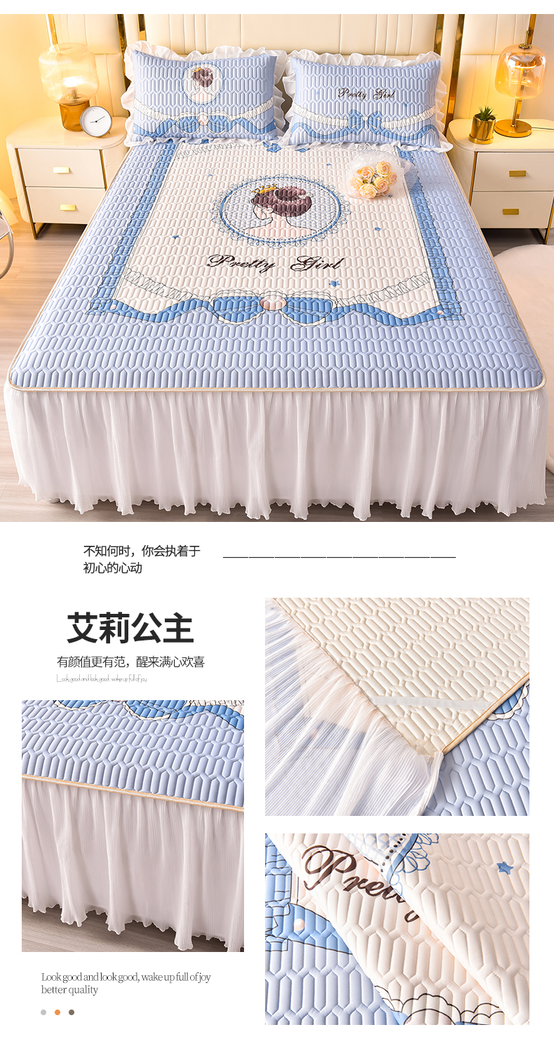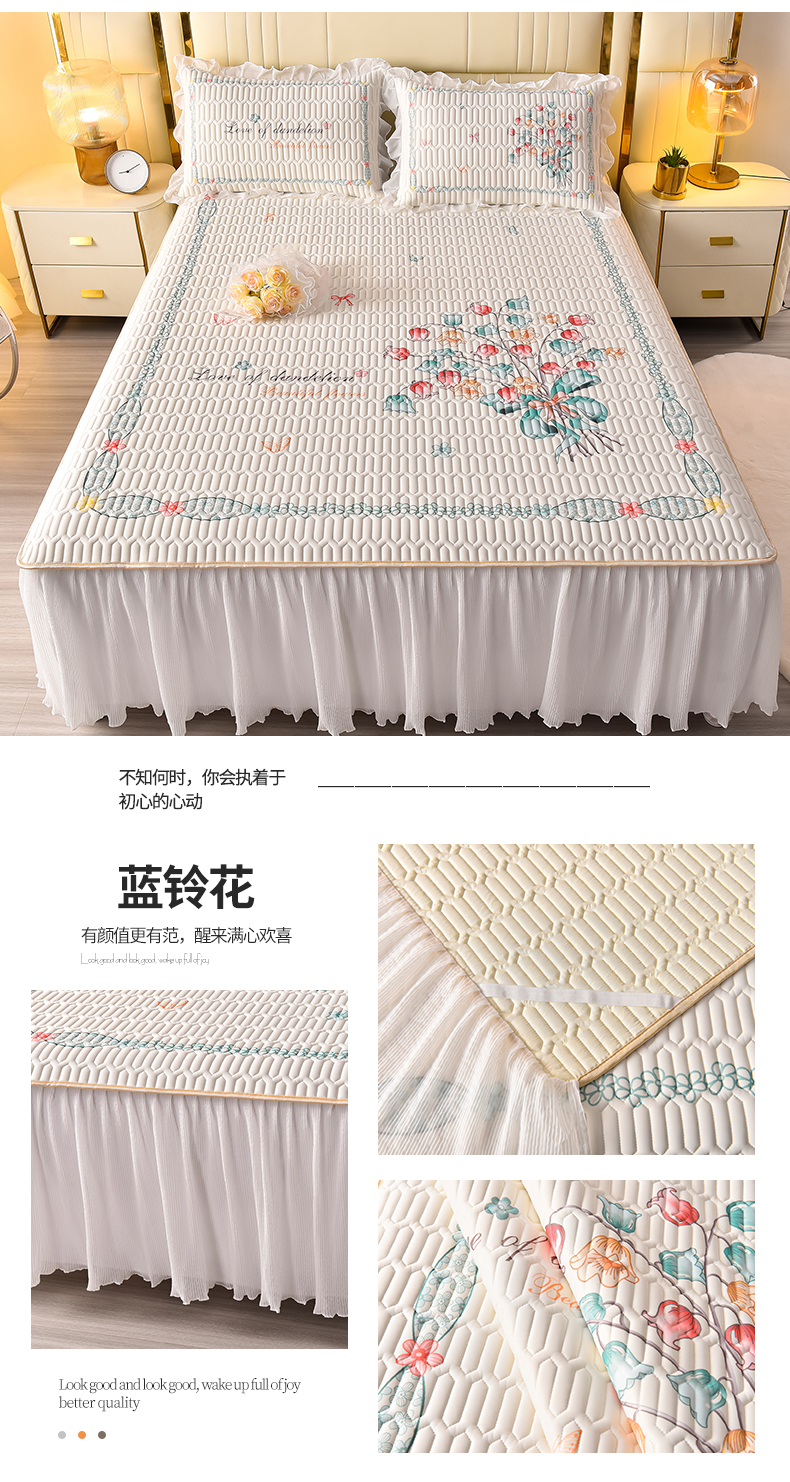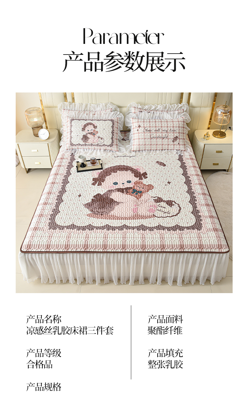 商品名称:(总)炫拼家纺 2025新款凉感丝印花床裙款乳胶凉席三件套
