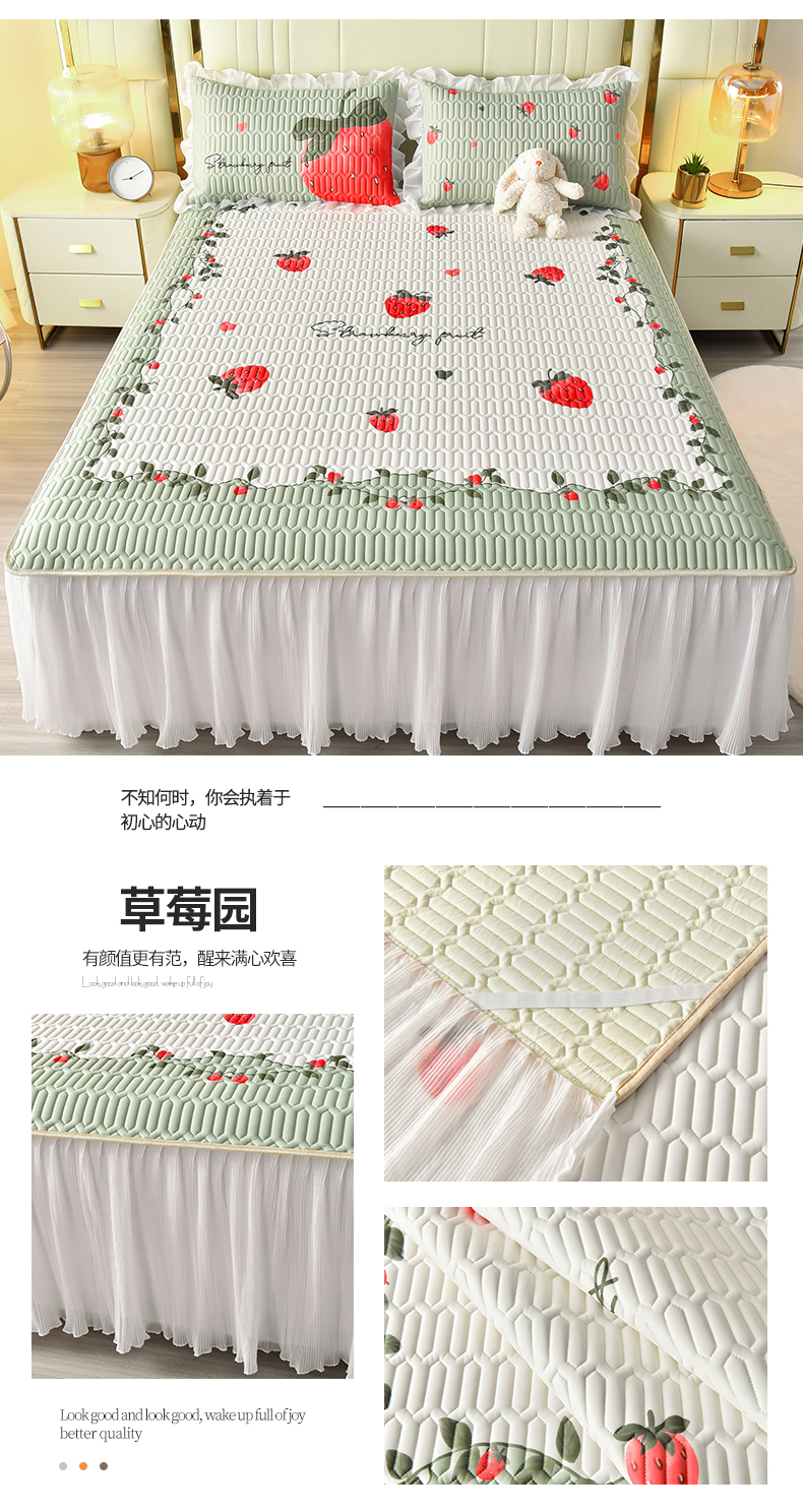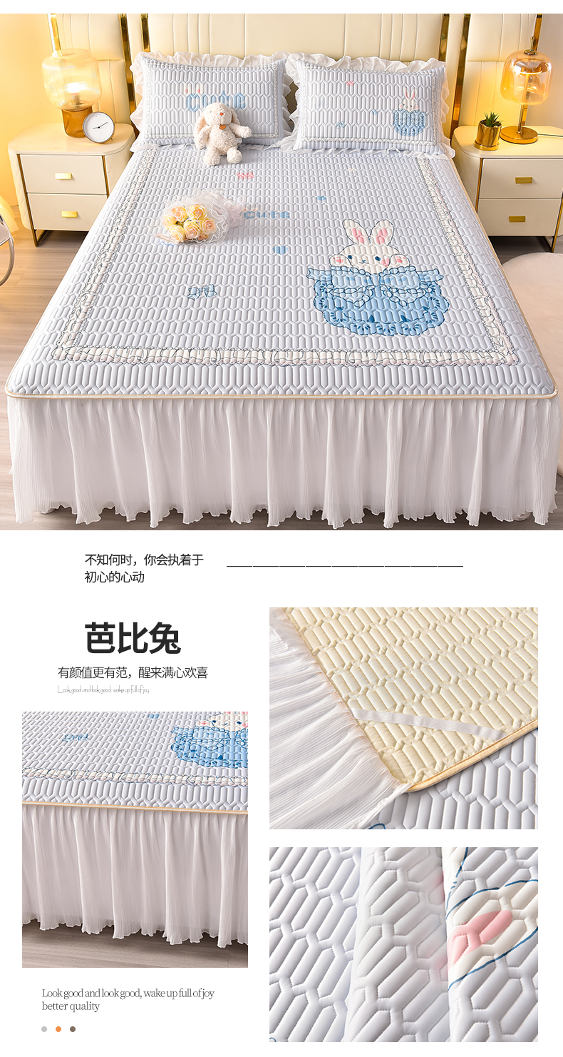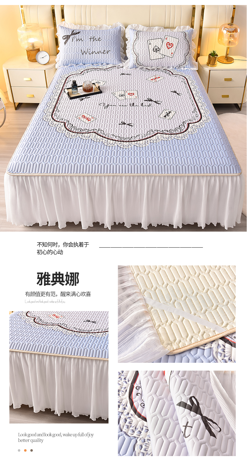 商品名称:(总)炫拼家纺 2025新款凉感丝印花床裙款乳胶凉席三件套