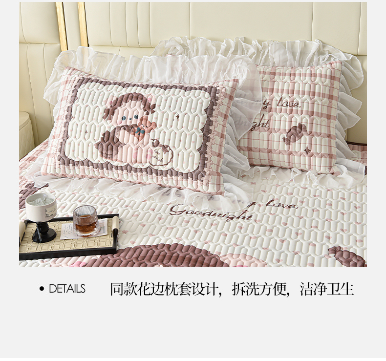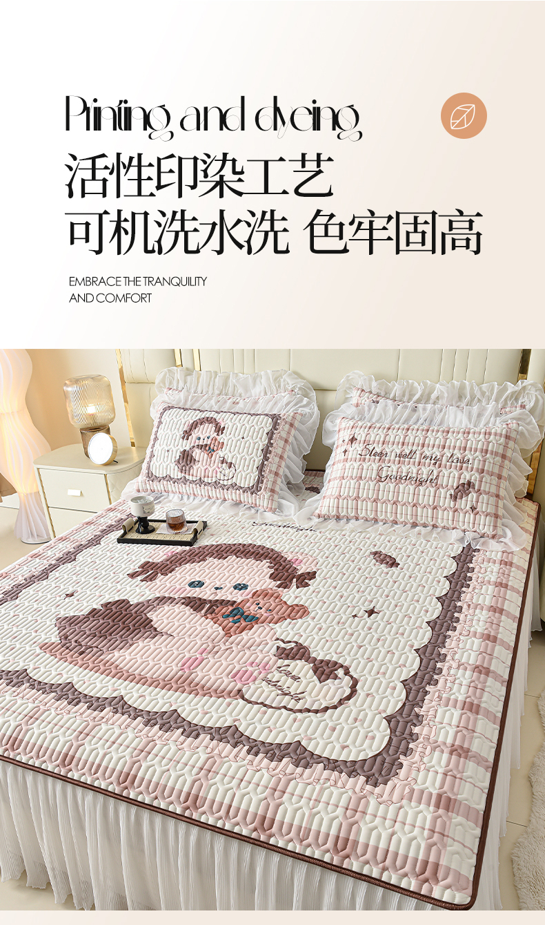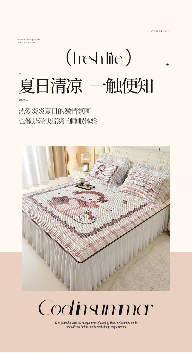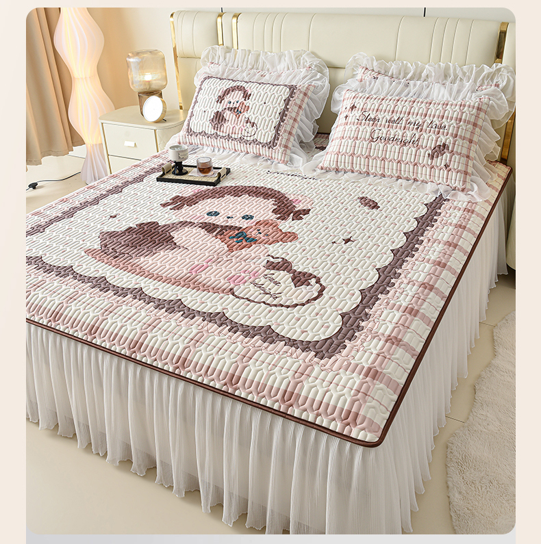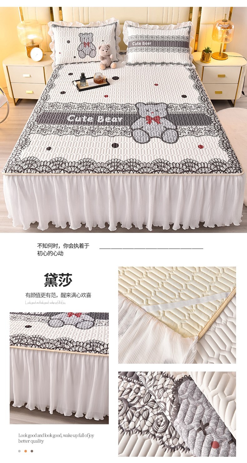 商品名称:(总)炫拼家纺 2025新款凉感丝印花床裙款乳胶凉席三件套