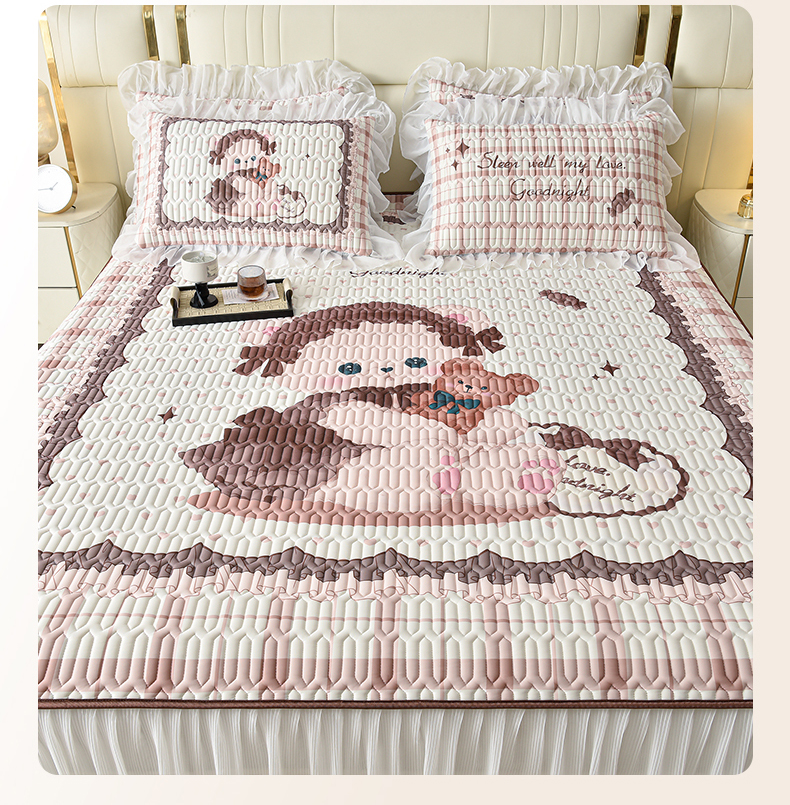 (总)炫拼家纺 2025新款凉感丝印花床裙款乳胶凉席三件套