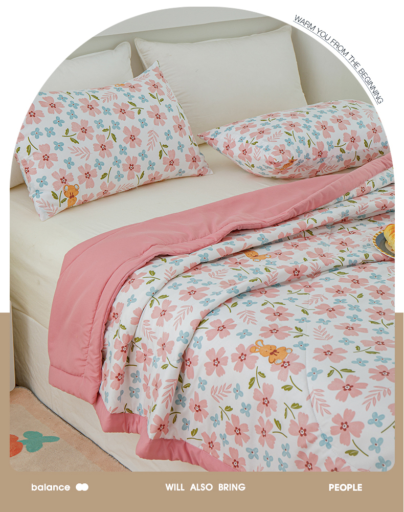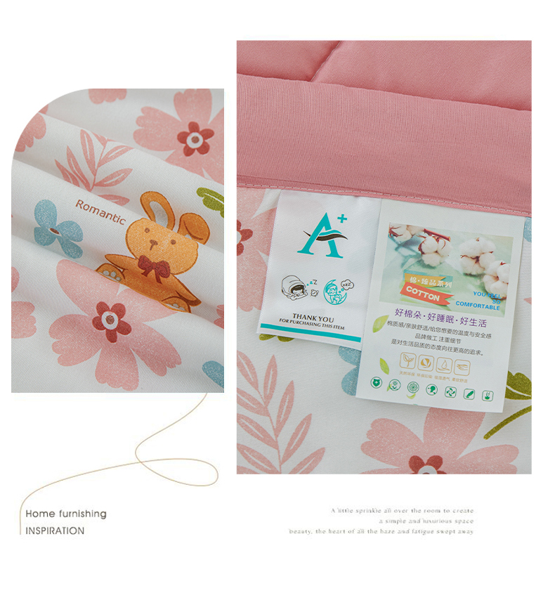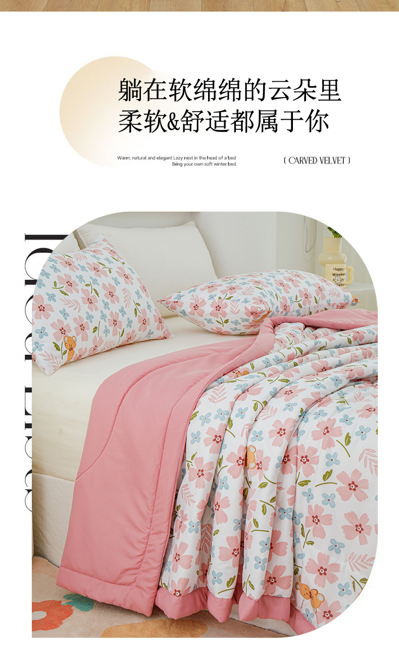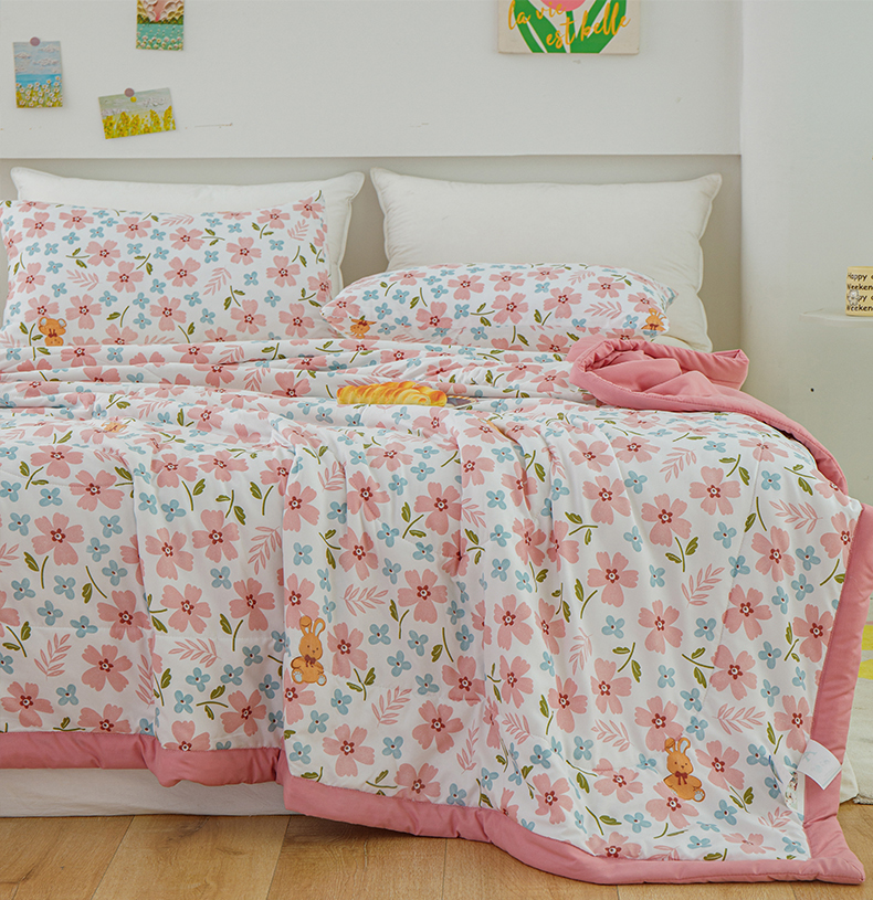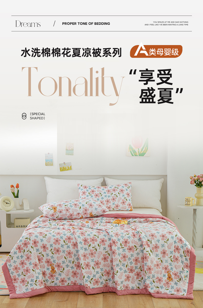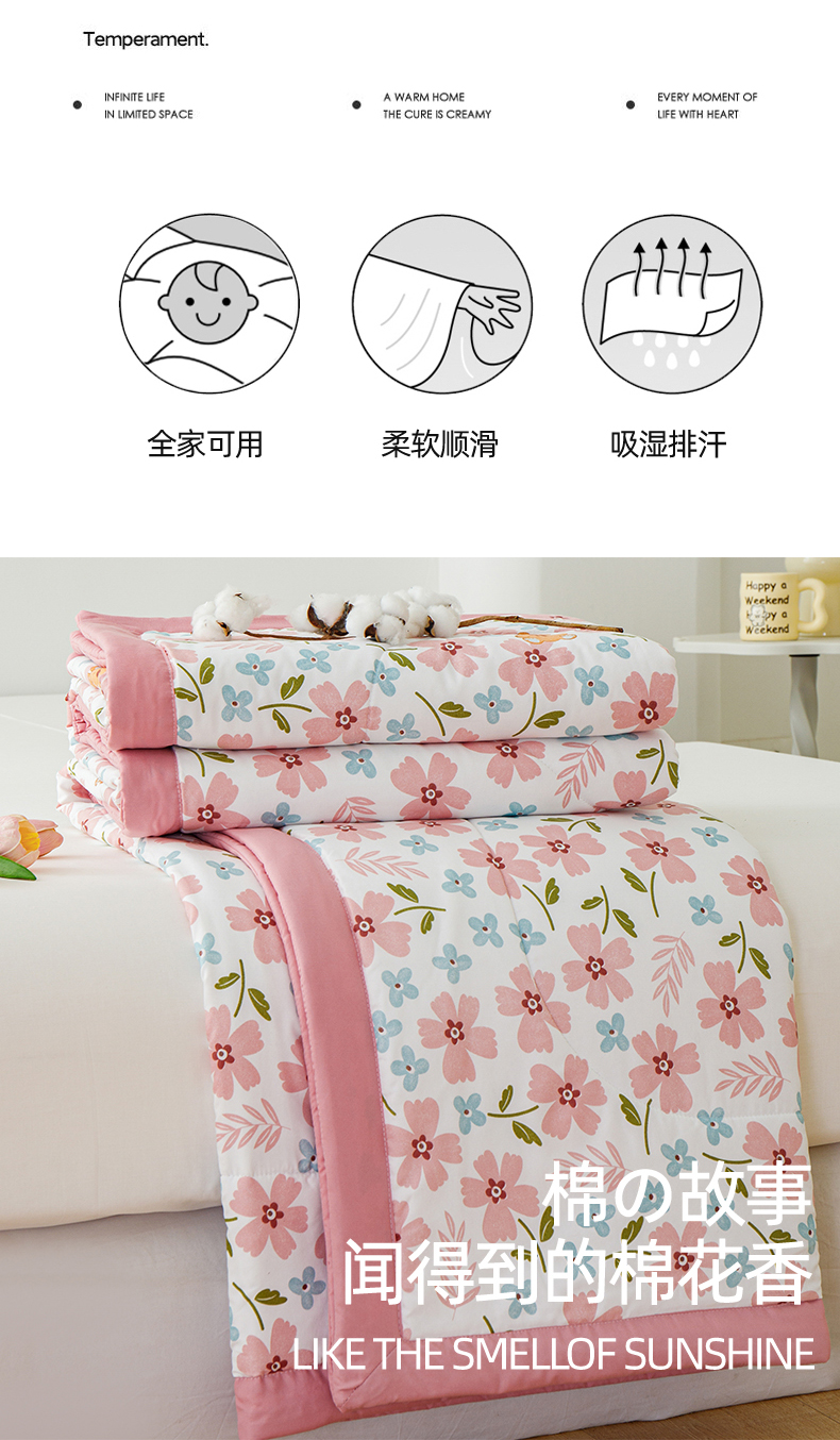 商品名称:海洋家纺 2025款水洗棉纯棉花夏凉被全棉花印花夏被空调被薄被子 悠然粉