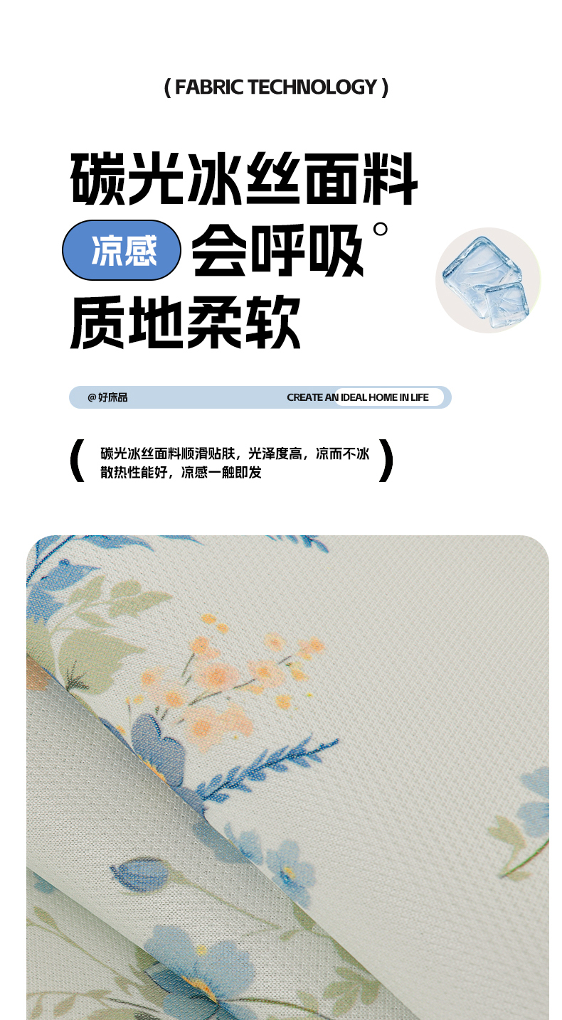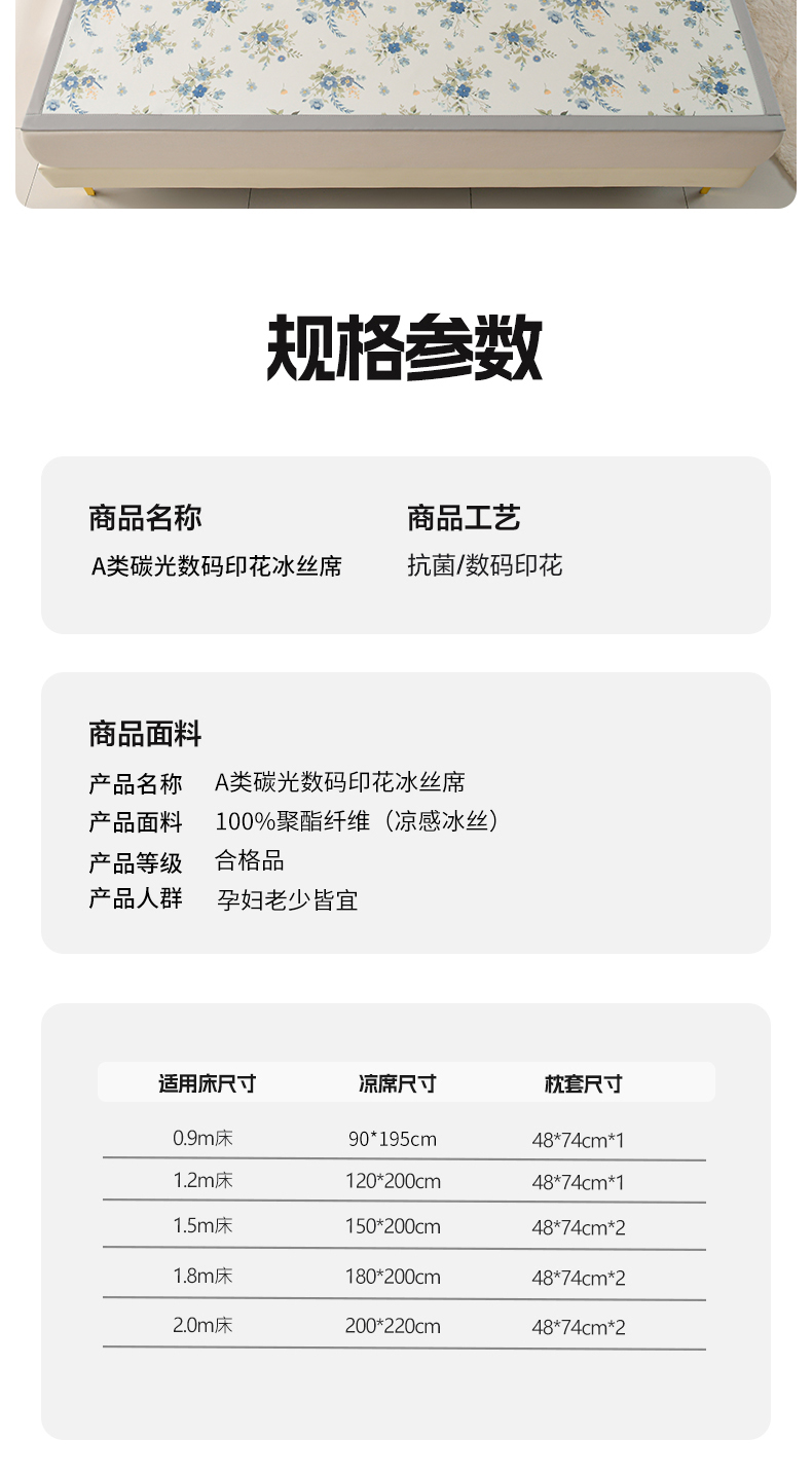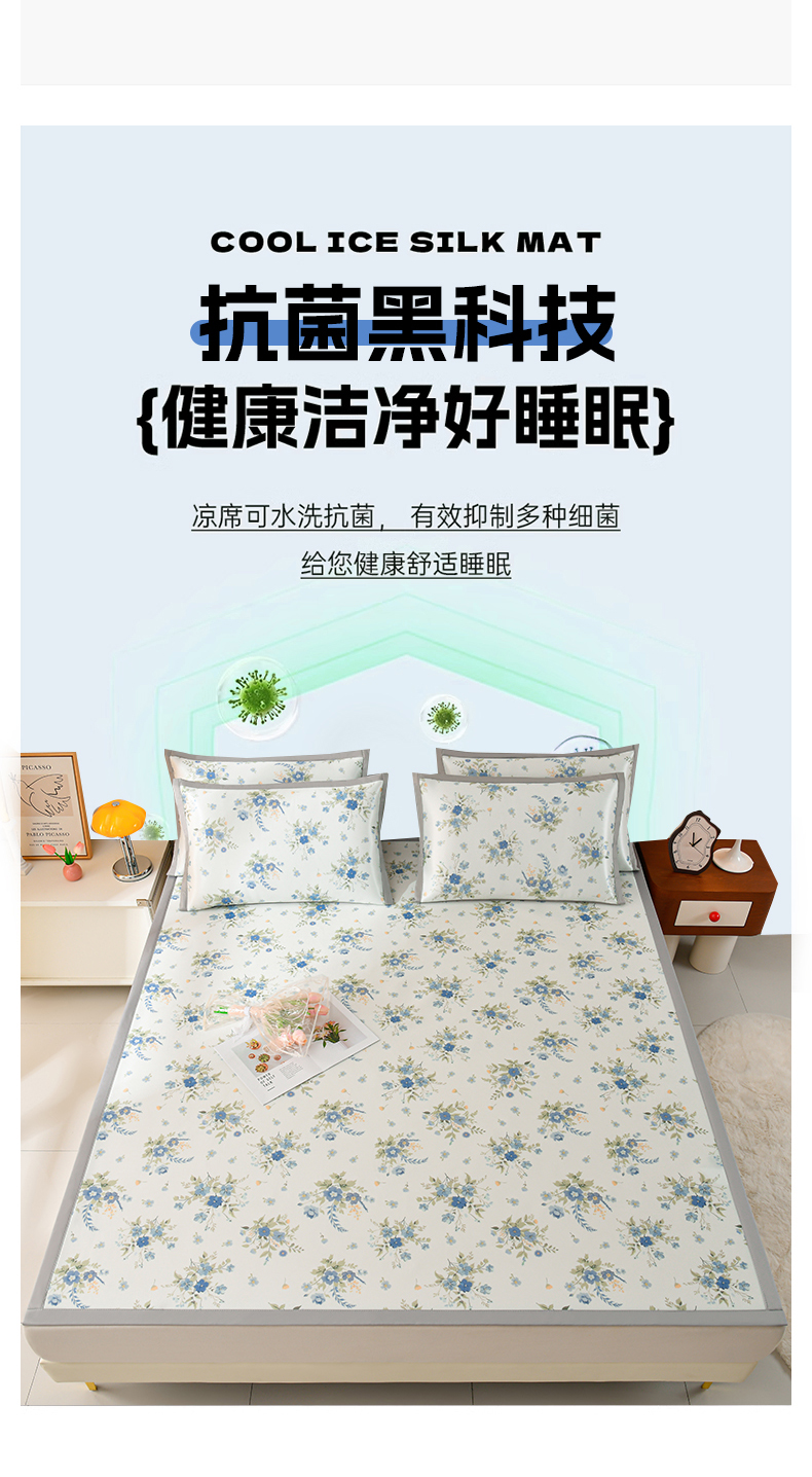 商品名称:简一 2025新款A类碳光印花数码冰丝凉席系列-床单款 浪漫花影