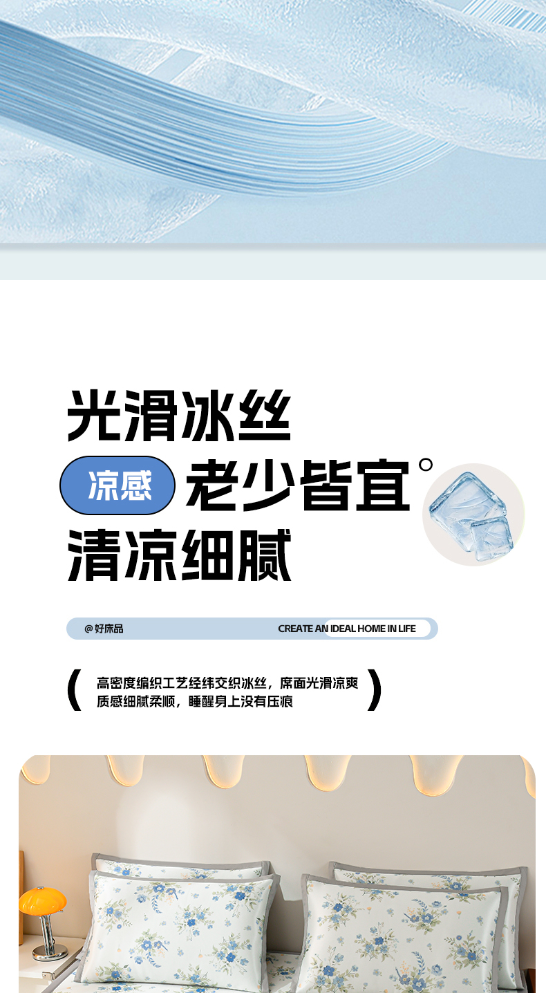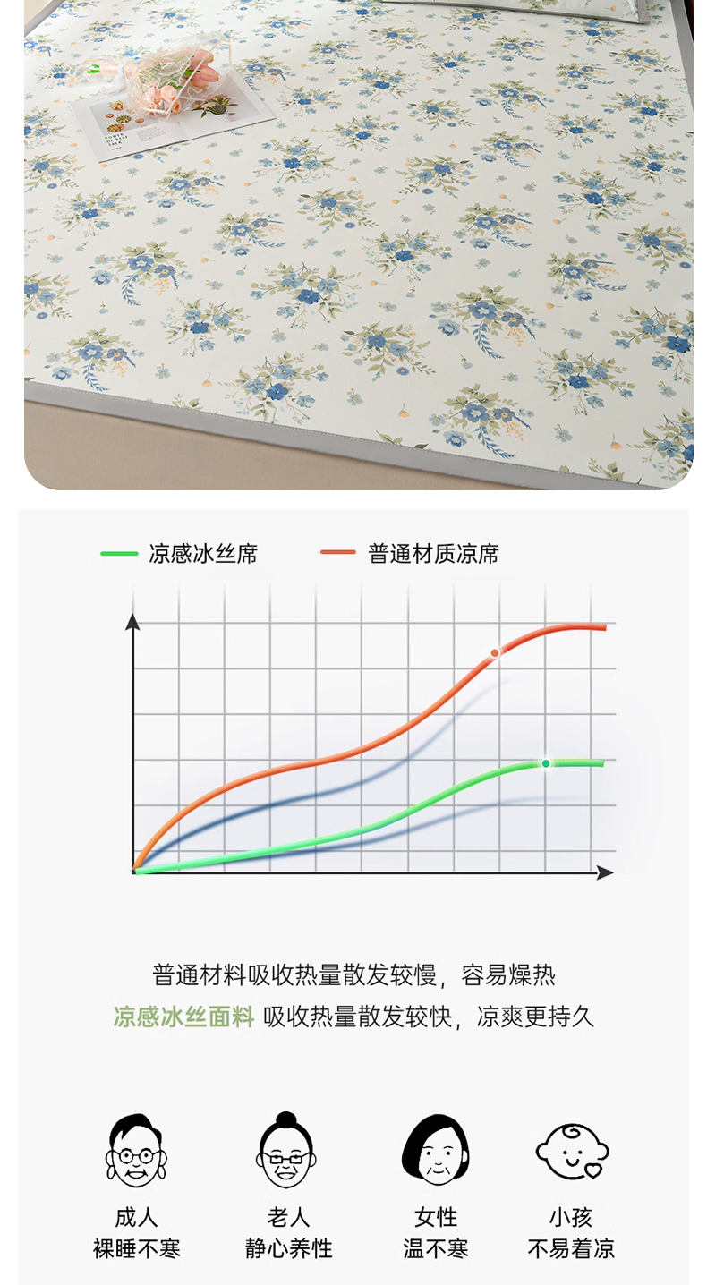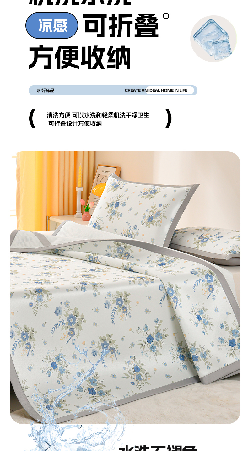 商品名称:简一 2025新款A类碳光印花数码冰丝凉席系列-床单款 浪漫花影