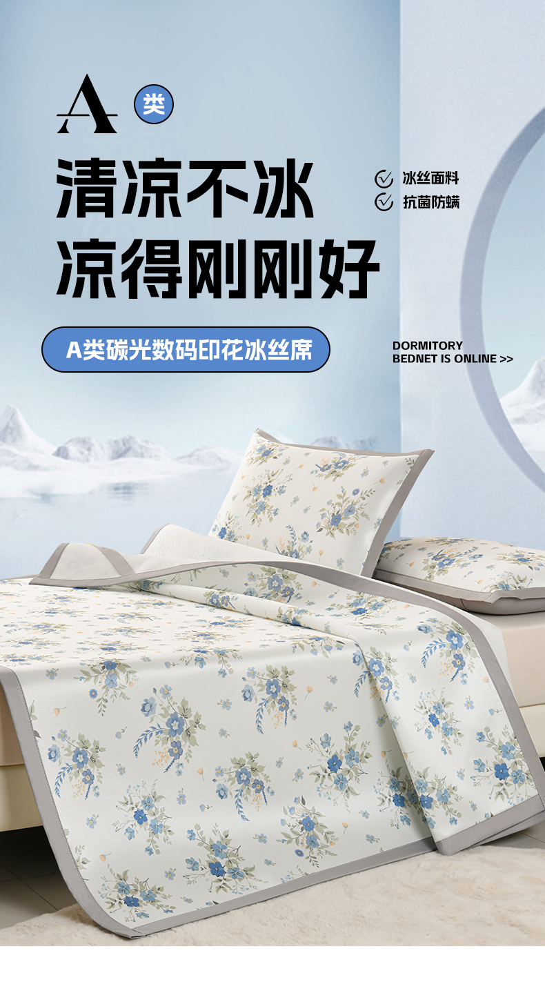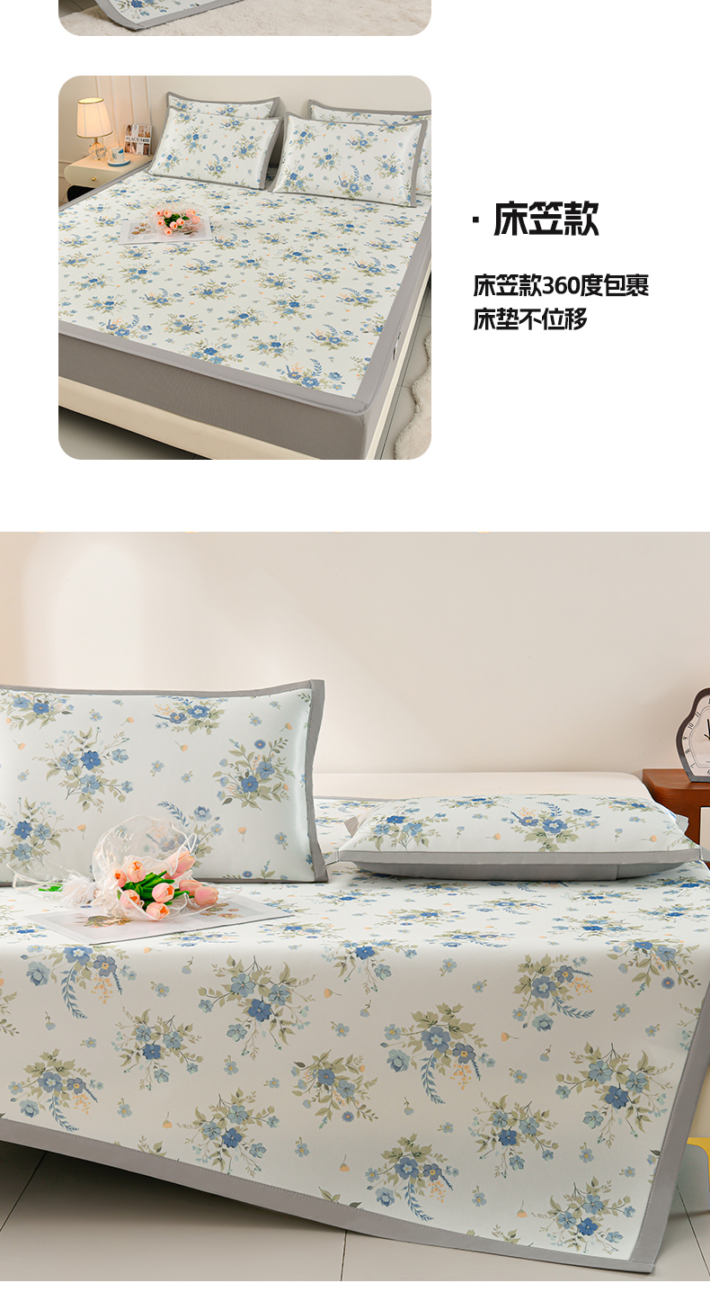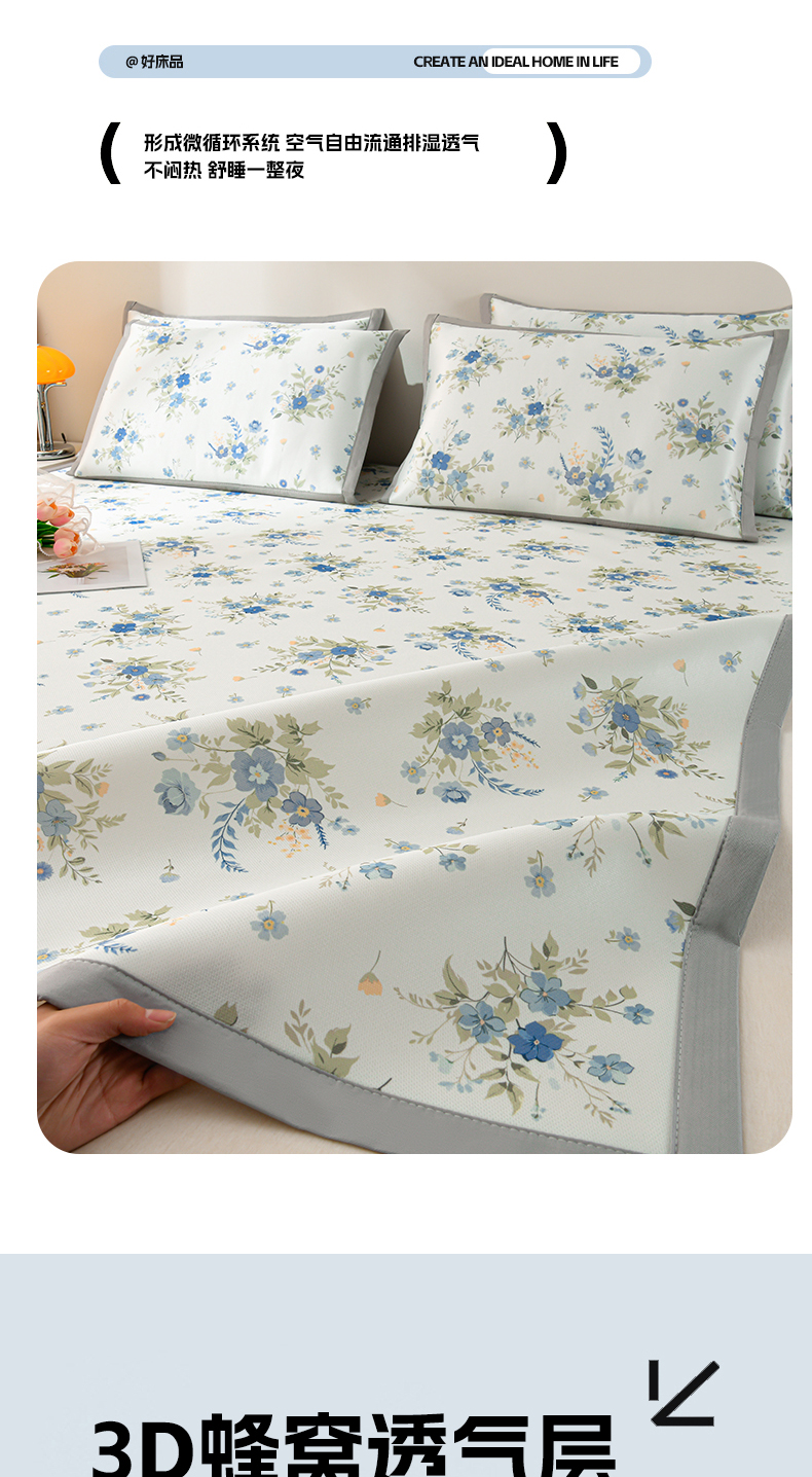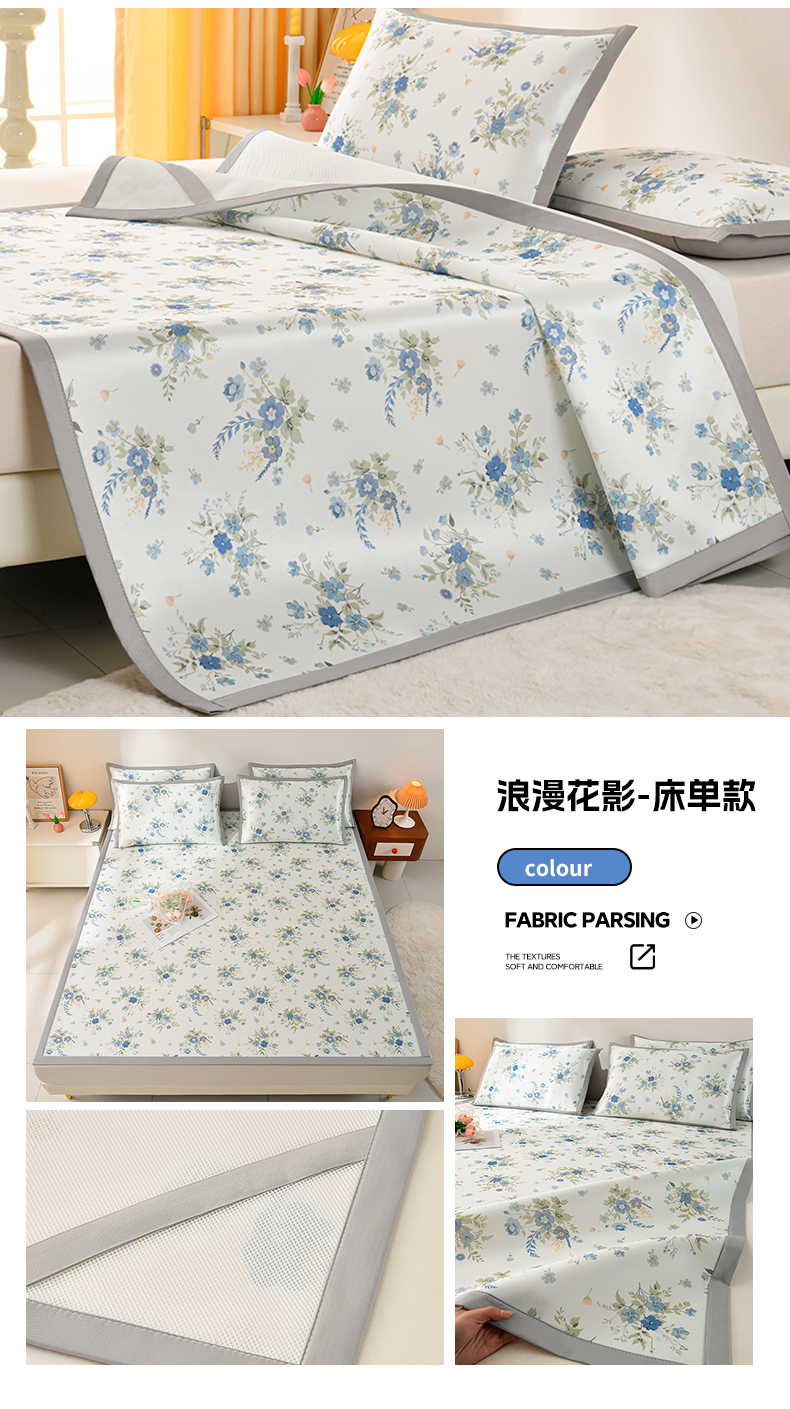 简一 2025新款A类碳光印花数码冰丝凉席系列-床单款 浪漫花影