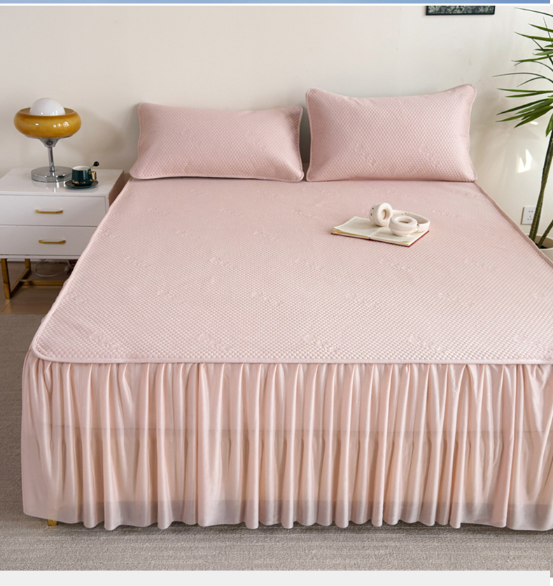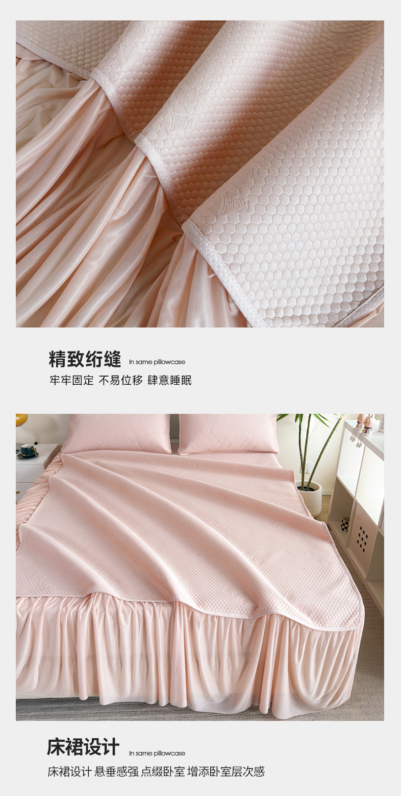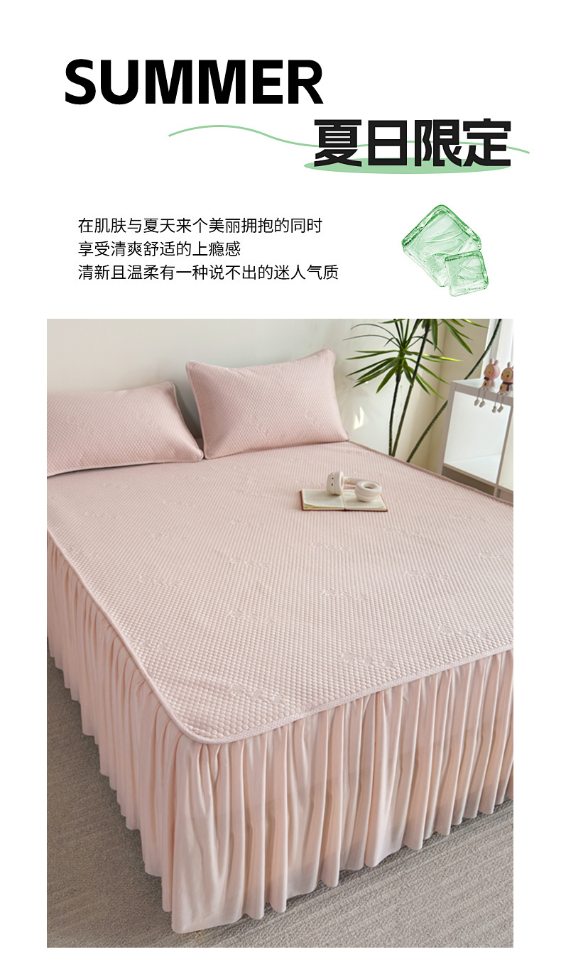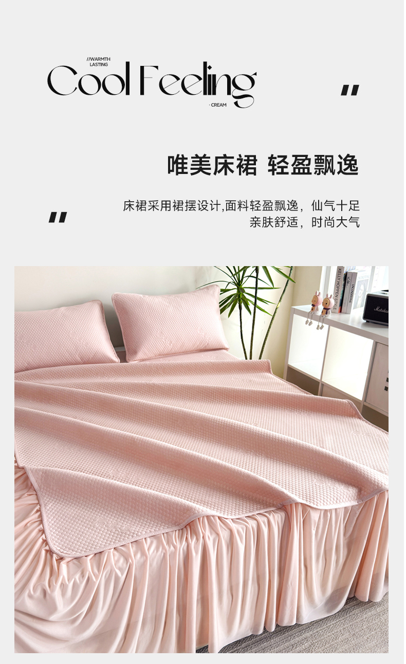 • 91家纺网 家纺一手货源 找家纺 许林2025新款凉豆豆床裙 北欧粉