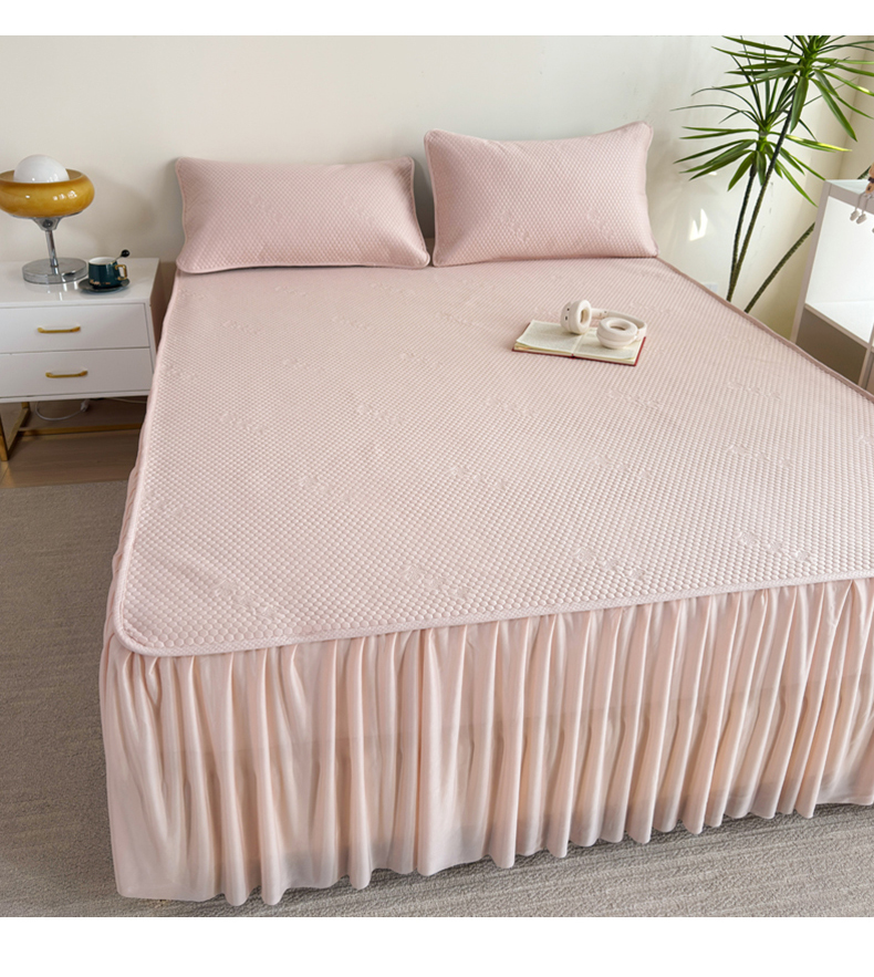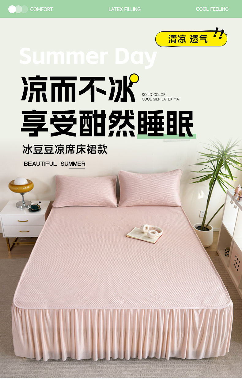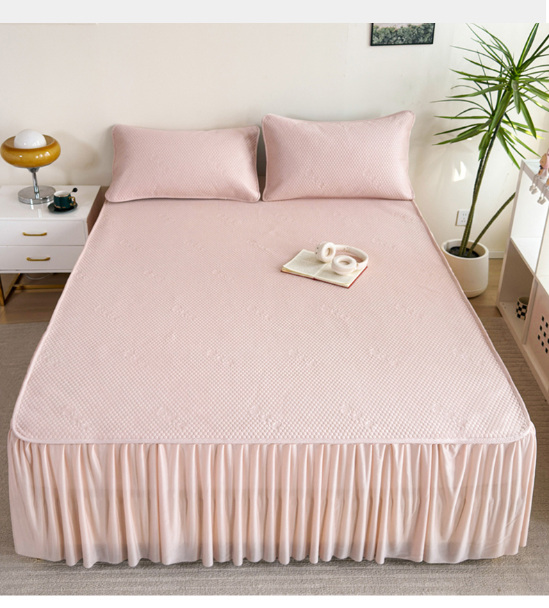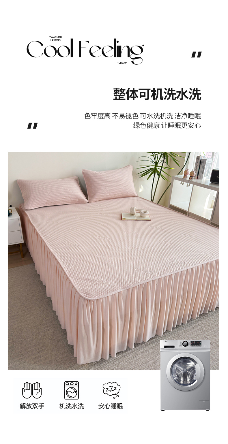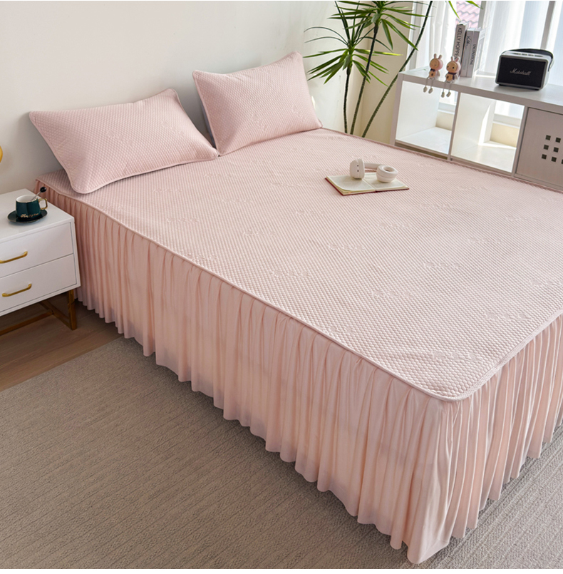 • 91家纺网 家纺一手货源 找家纺 许林2025新款凉豆豆床裙 北欧粉