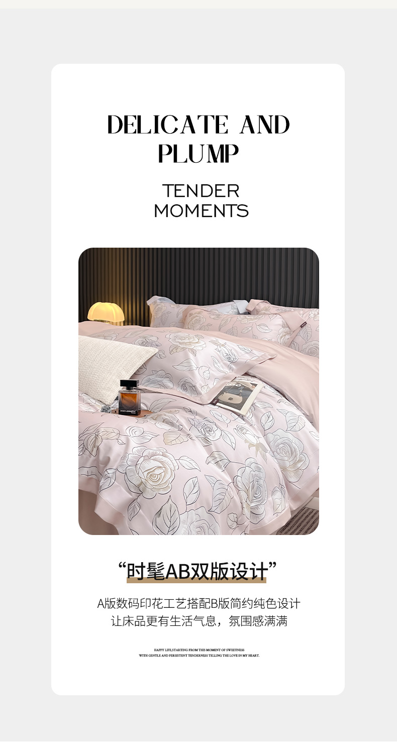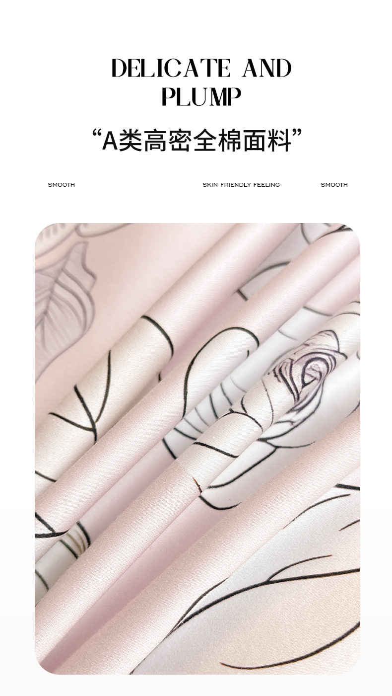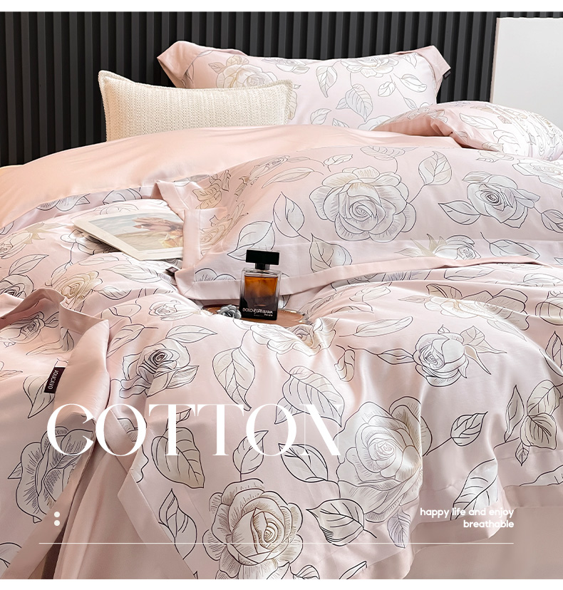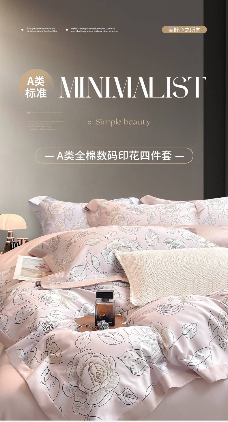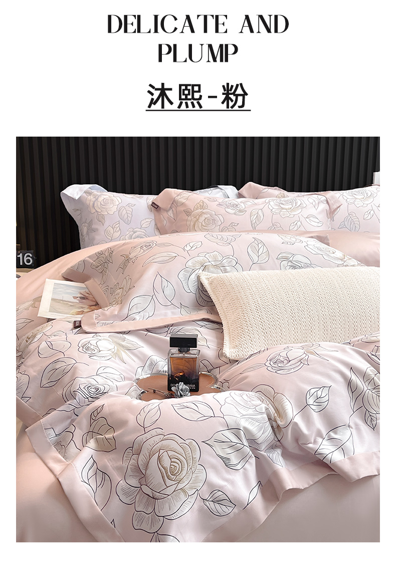 商品名称:2025新款夏季热款A类母婴级数码印花全棉四件套高端纯棉被套长绒棉床单床笠床上用品 沐熙-粉