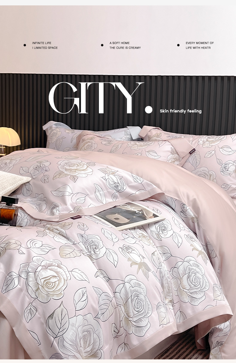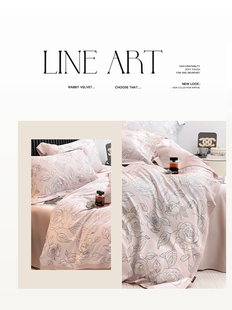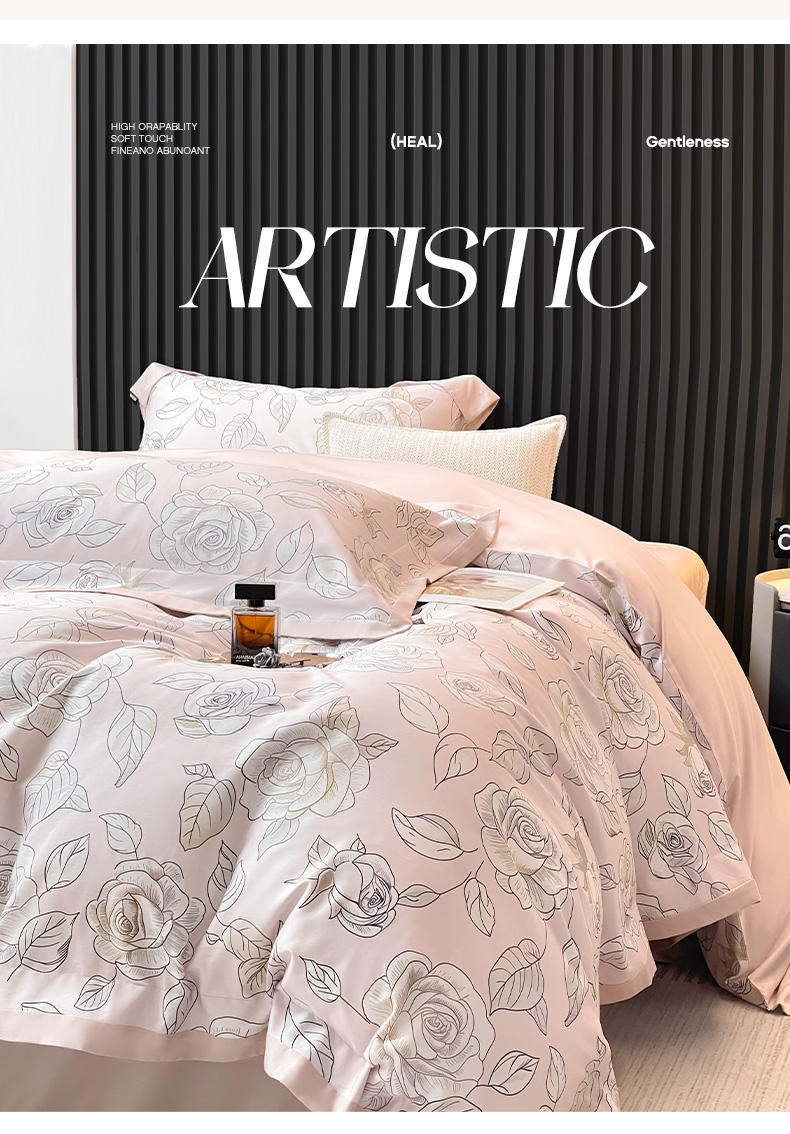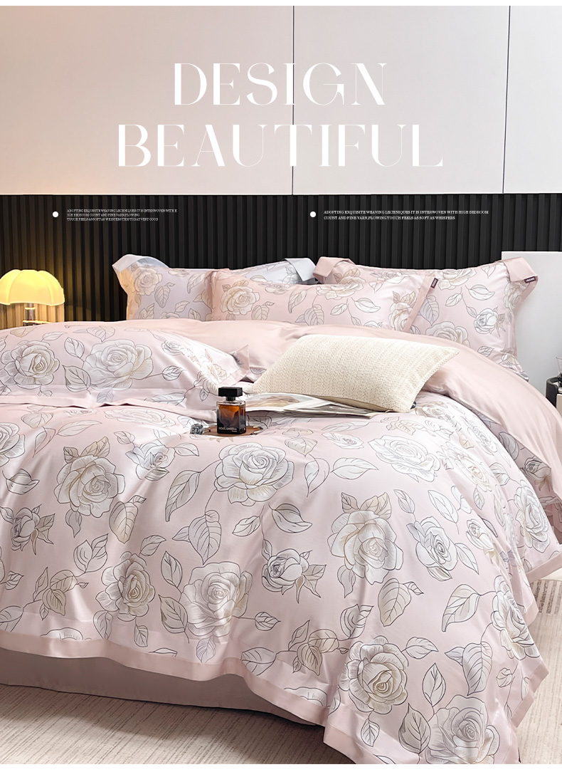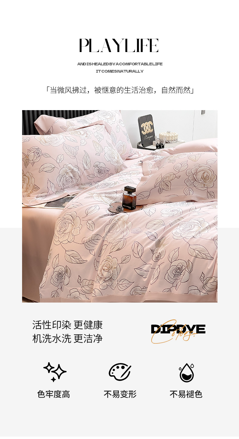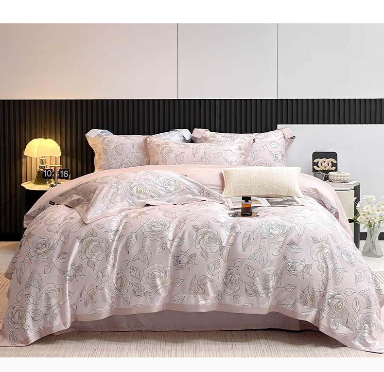 商品名称:2025新款夏季热款A类母婴级数码印花全棉四件套高端纯棉被套长绒棉床单床笠床上用品 沐熙-粉