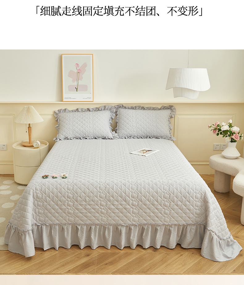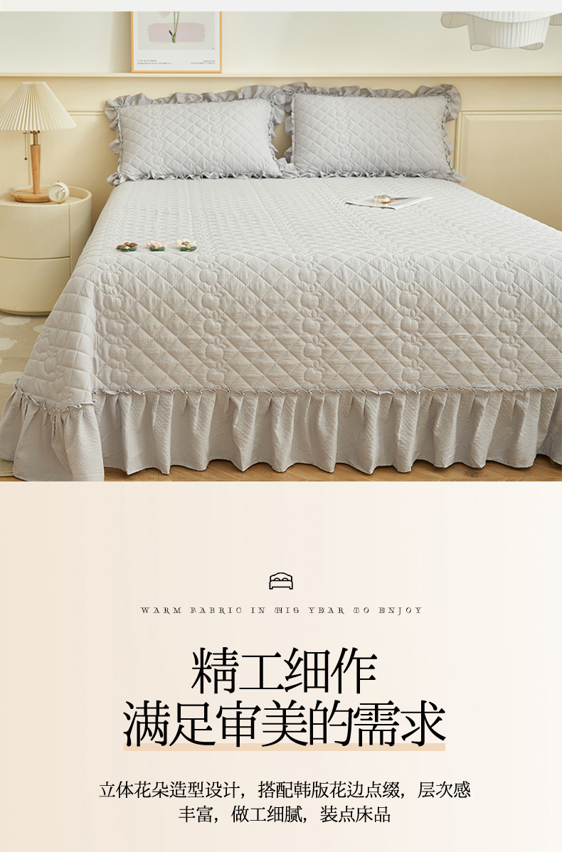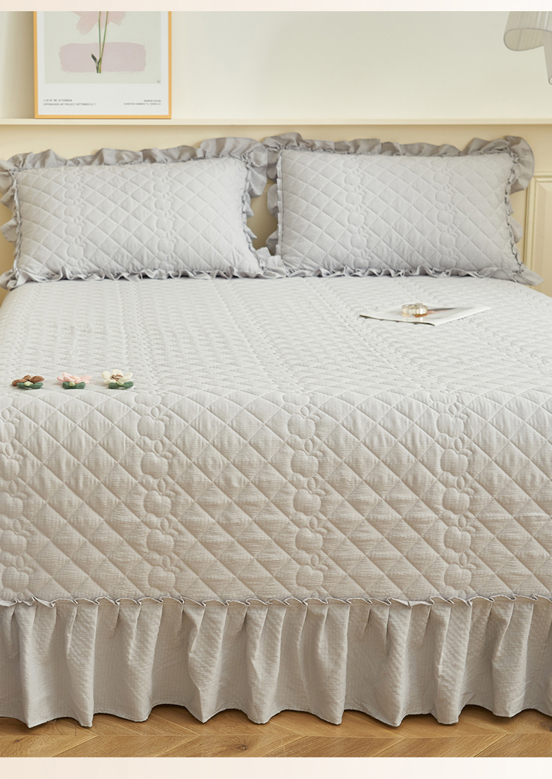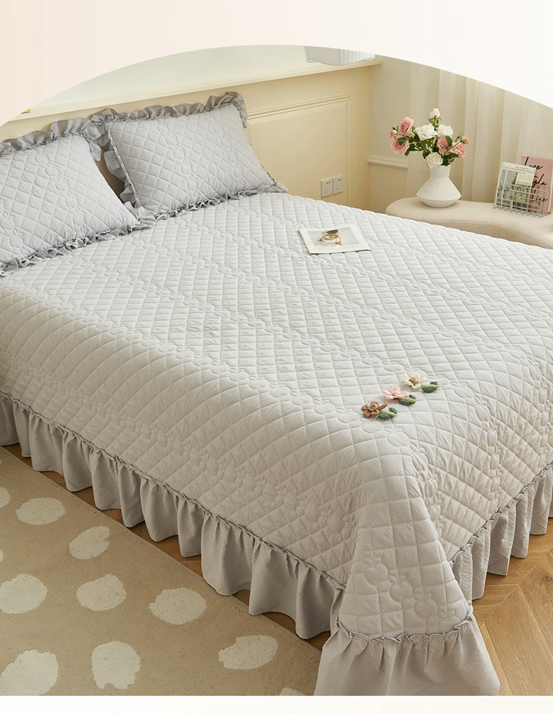 商品名称:恒爱家纺 2025新款A类泡泡纱床盖-杜鹃 绅士灰