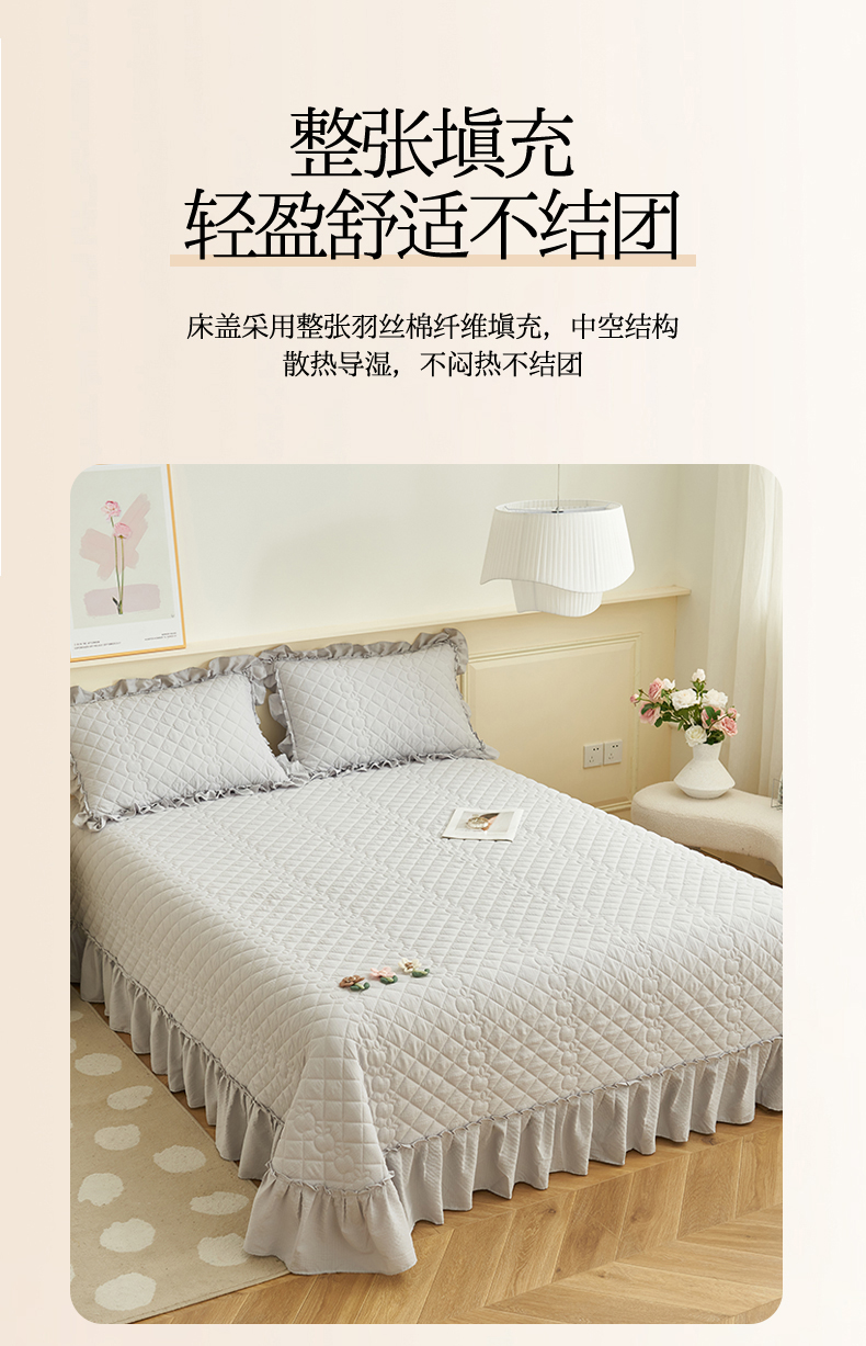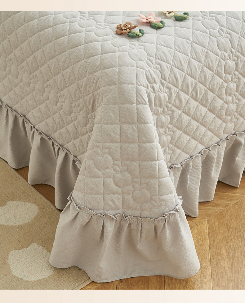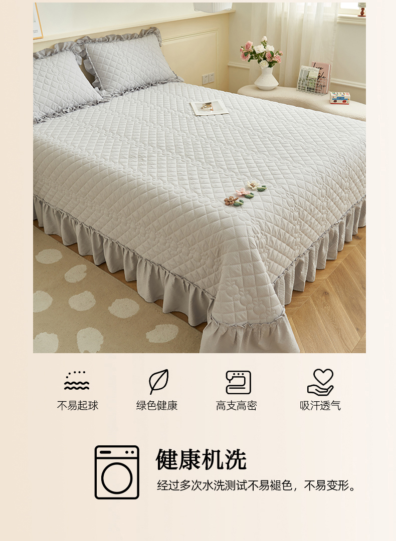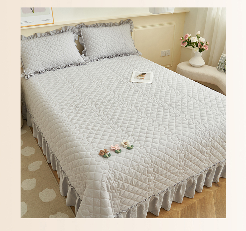商品名称:恒爱家纺 2025新款A类泡泡纱床盖-杜鹃 绅士灰