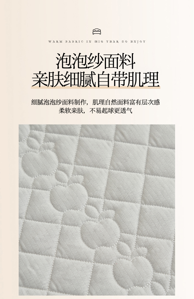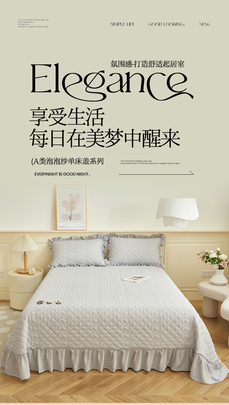 恒爱家纺 2025新款A类泡泡纱床盖-杜鹃 绅士灰