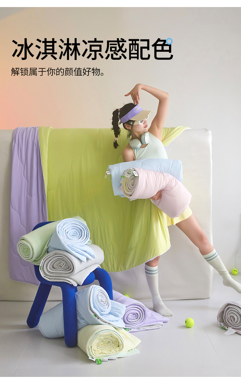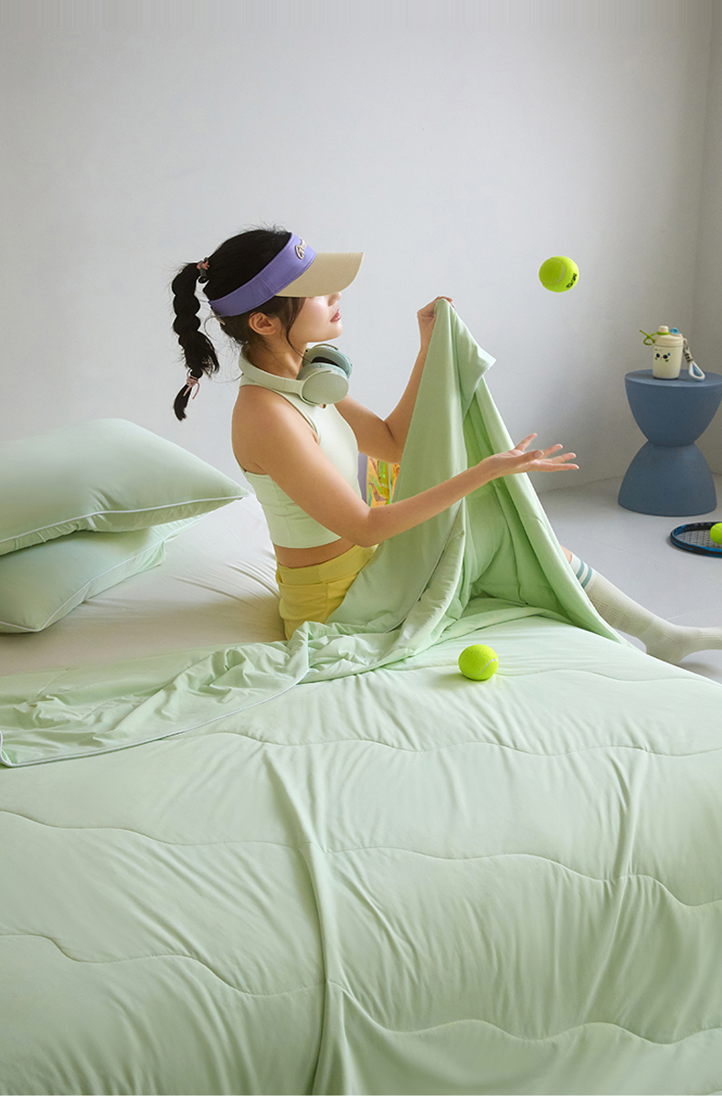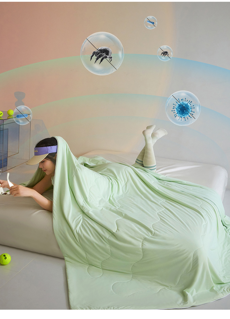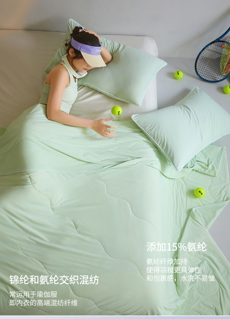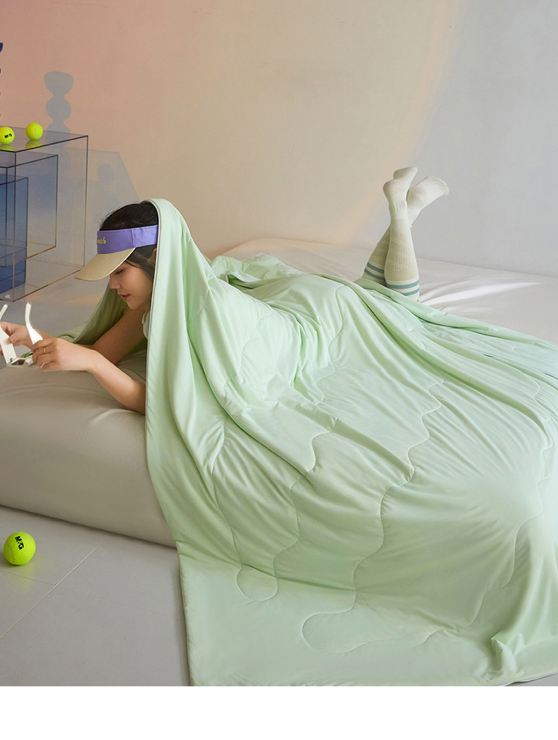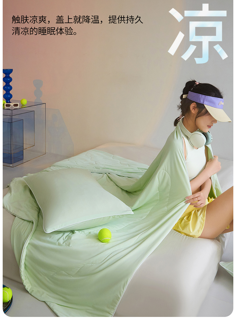头等舱 2025新款4.0版凉感A类锦氨(165克)55大豆抗菌夏凉被夏被配礼盒模特图 浅绿