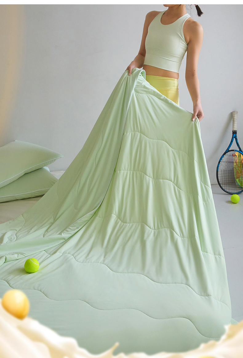商品名称:头等舱 2025新款4.0版凉感A类锦氨(165克)55大豆抗菌夏凉被夏被配礼盒模特图 浅绿