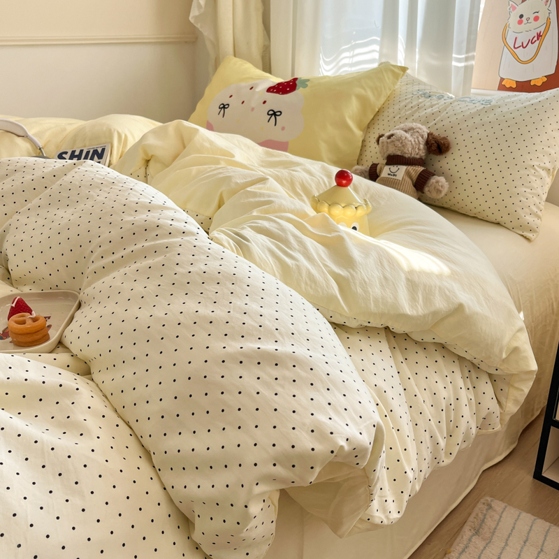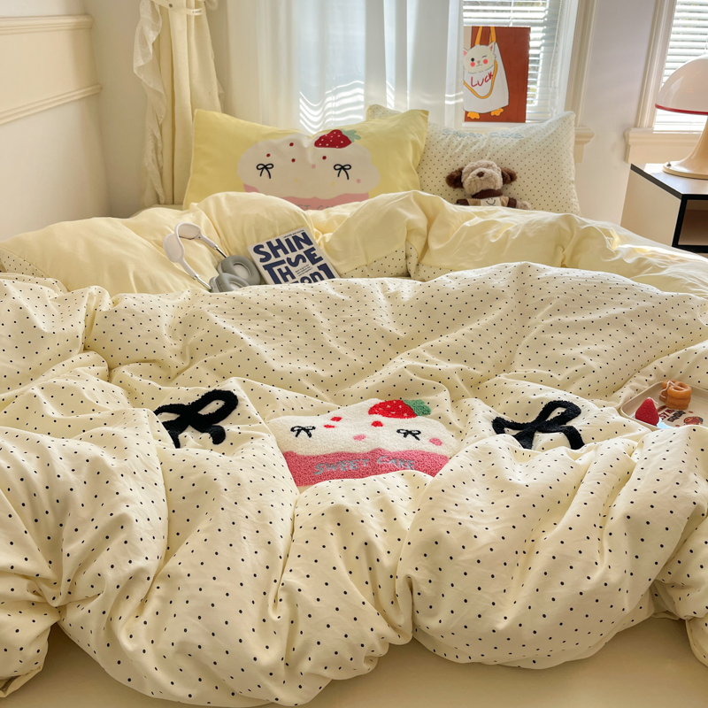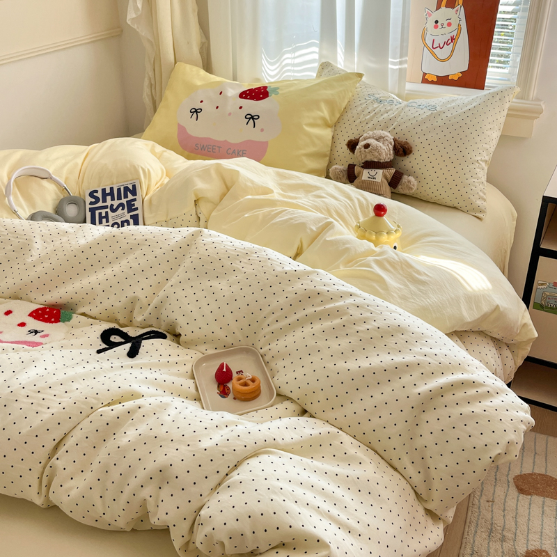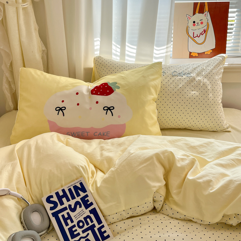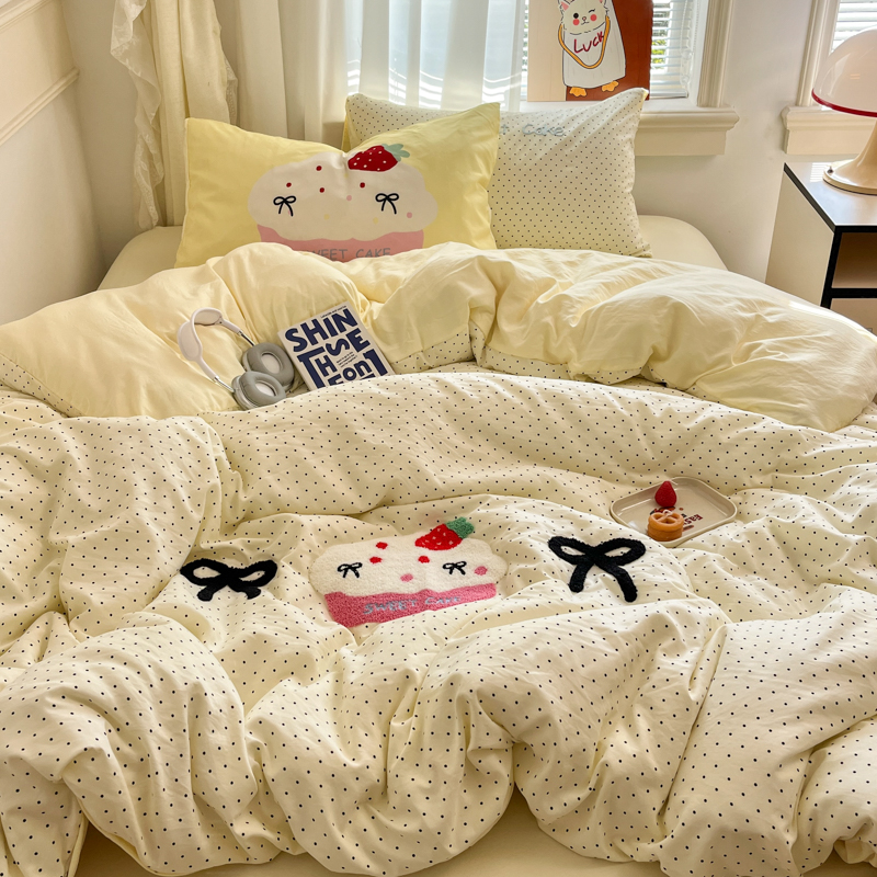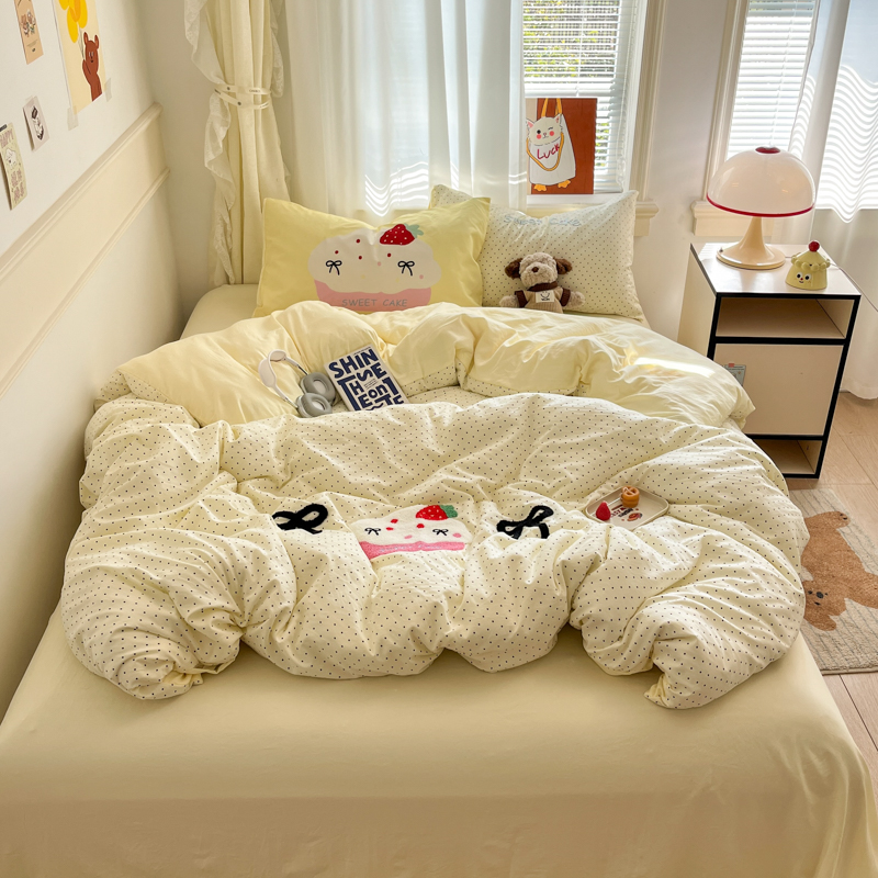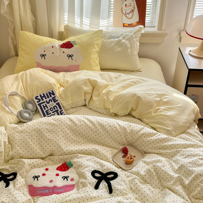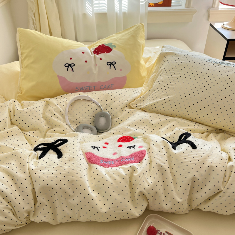 当前位置: 91家纺网 > 商品网购 > 床品套件 > 四件套 > 水洗棉四件套 > 桃喜 2025新款韩系卡通水洗棉毛巾绣套件(化纤) 波点草莓蛋糕(水洗棉)
