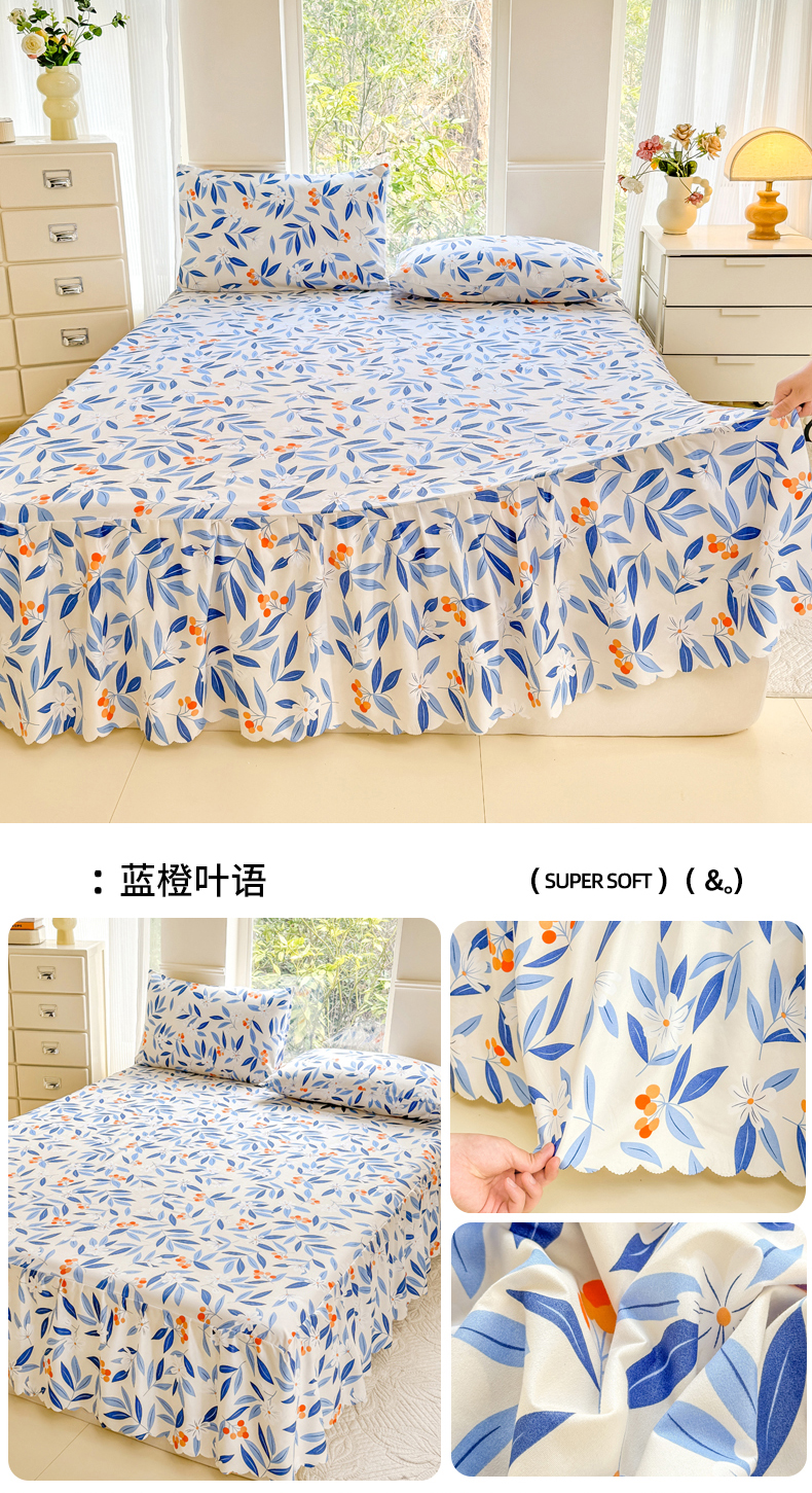 当前位置: 91家纺网 > 商品网购 > 床上用品 > 床裙 > 莎臣豹 2025新款植物羊绒单品单件单床裙可配床裙三件套 蓝橙叶语