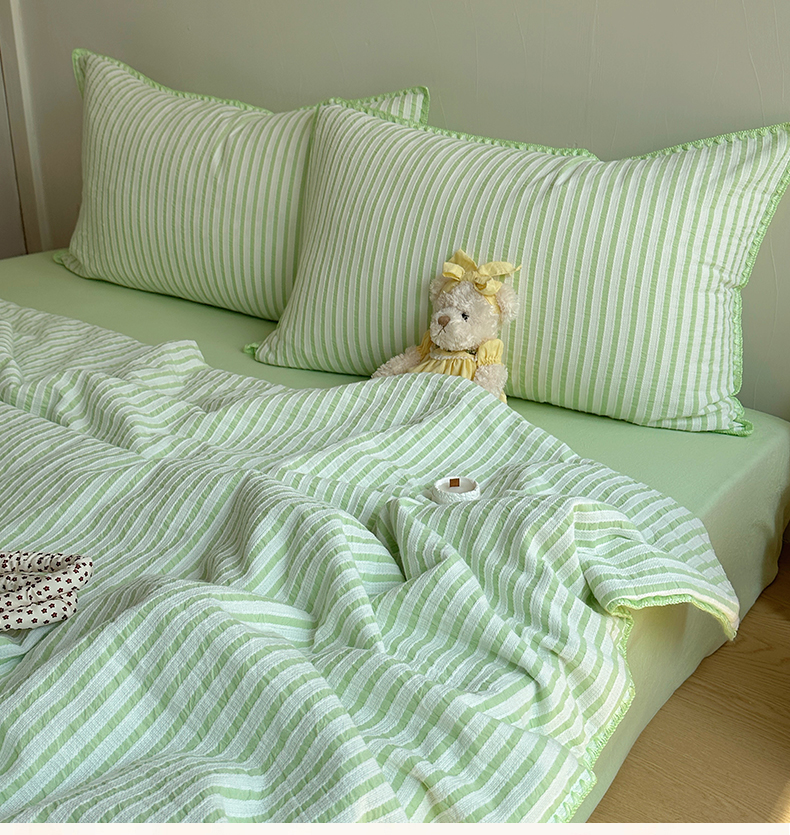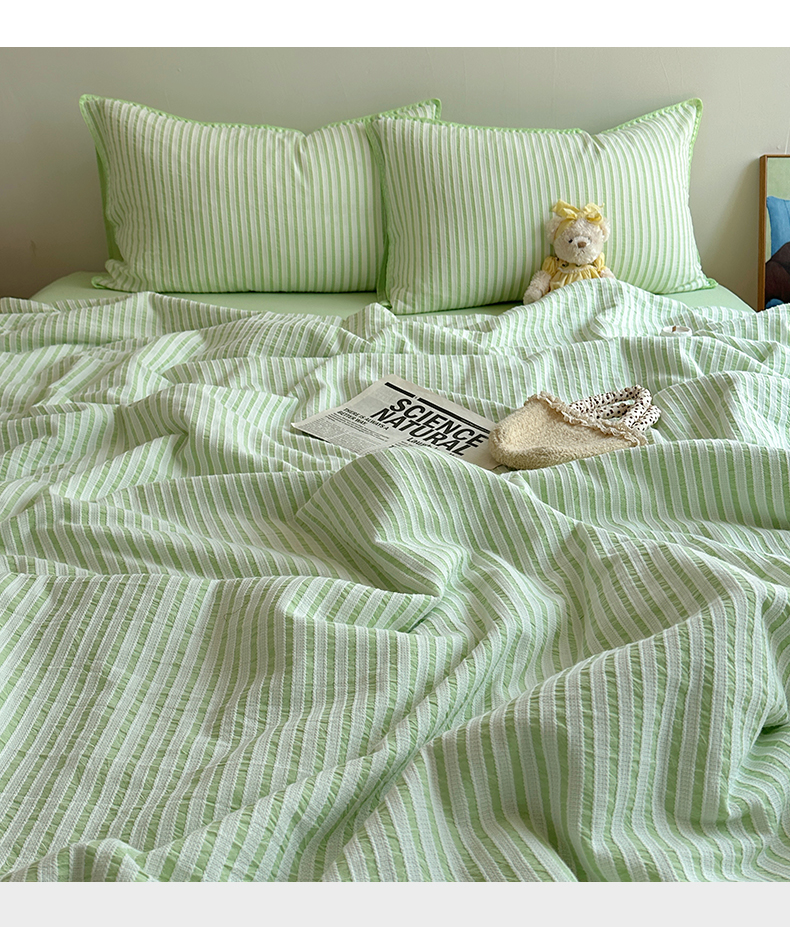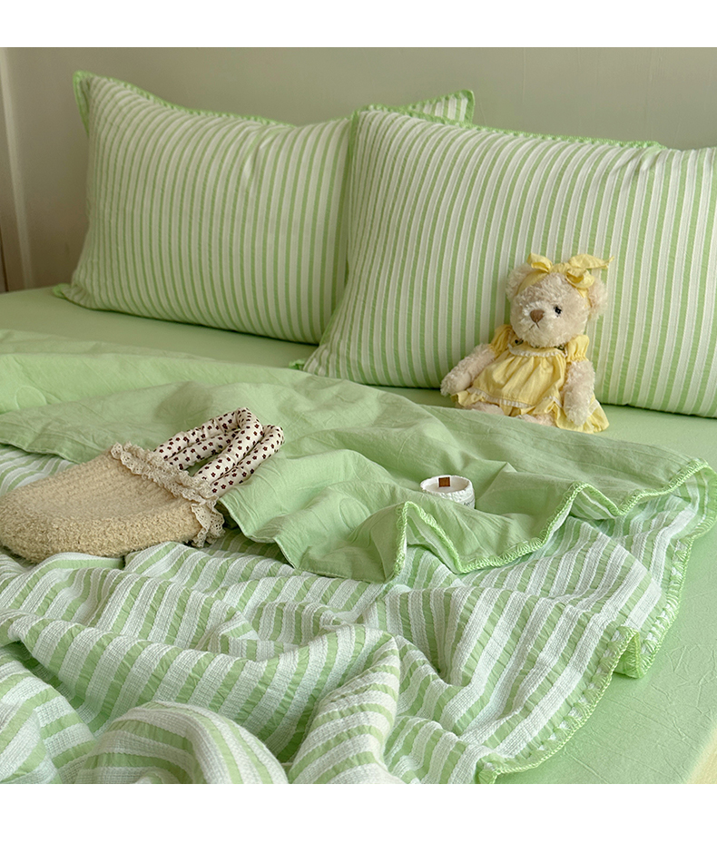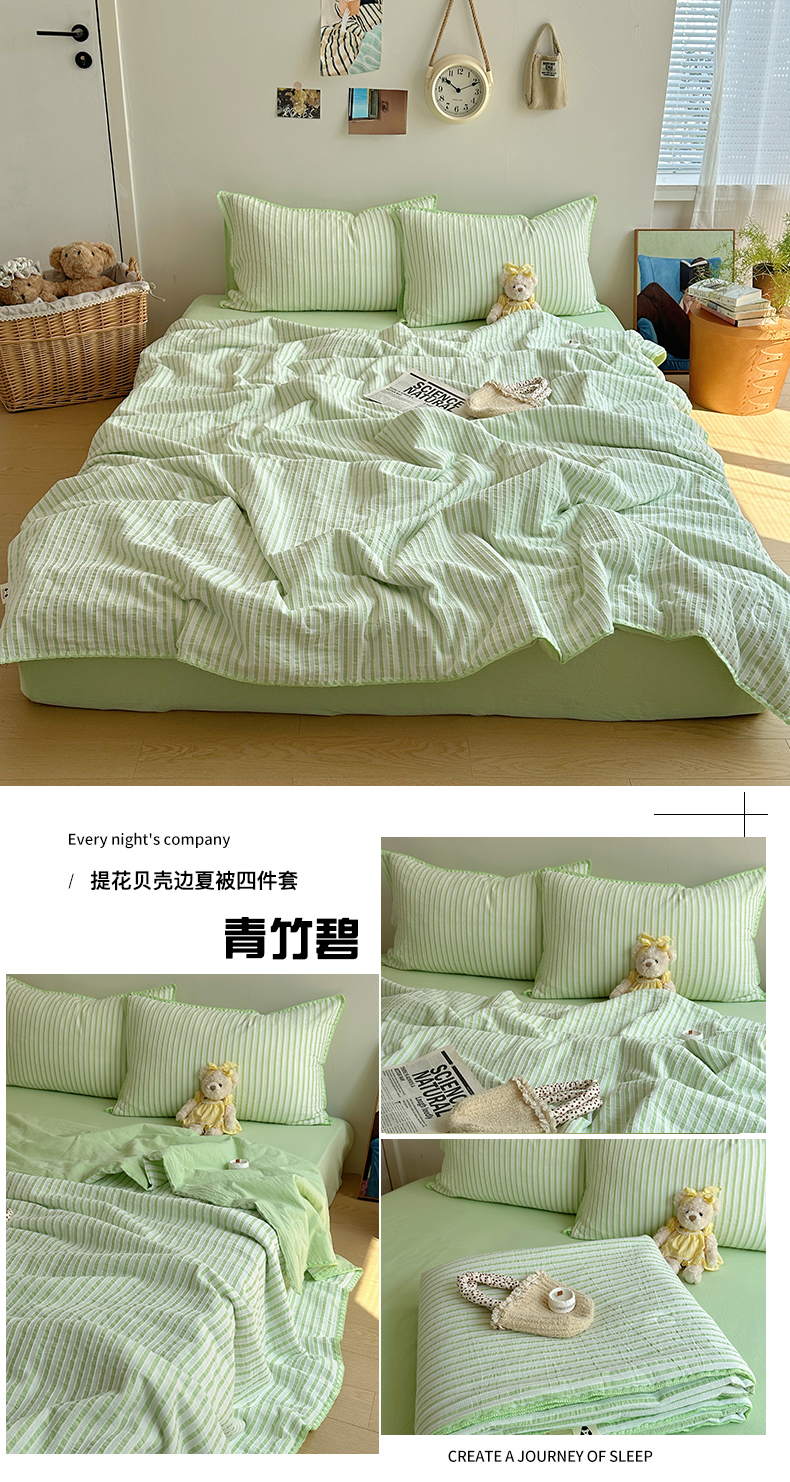 当前位置: 91家纺网 > 商品网购 > 床品套件 > 四件套 > 全棉普通四件套 > 曼町家居2025新款全棉水洗棉提花贝壳边夏被系列 青竹碧