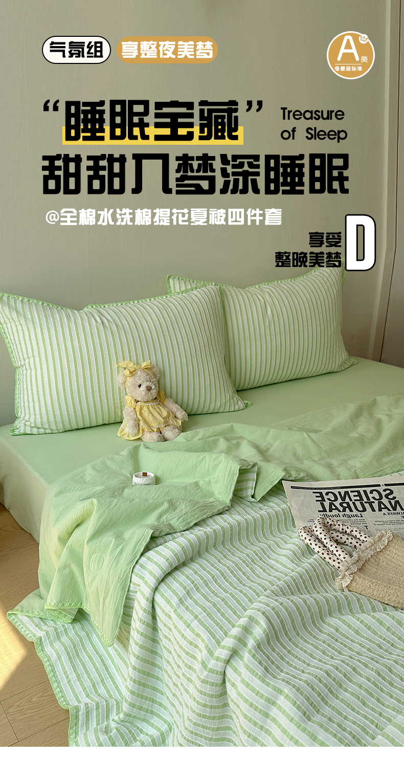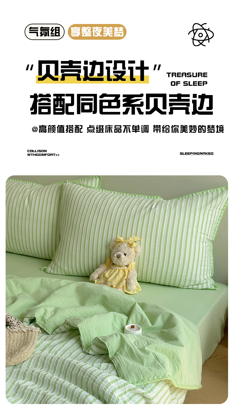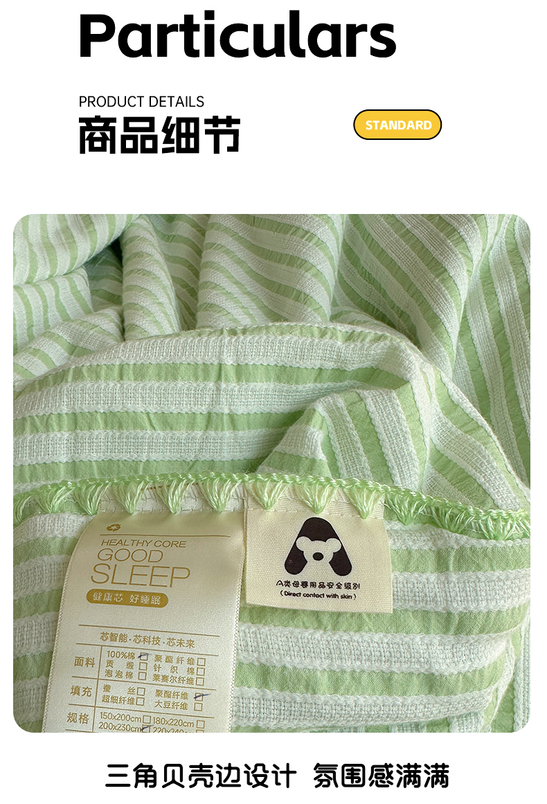 当前位置: 91家纺网 > 商品网购 > 床品套件 > 四件套 > 全棉普通四件套 > 曼町家居2025新款全棉水洗棉提花贝壳边夏被系列 青竹碧