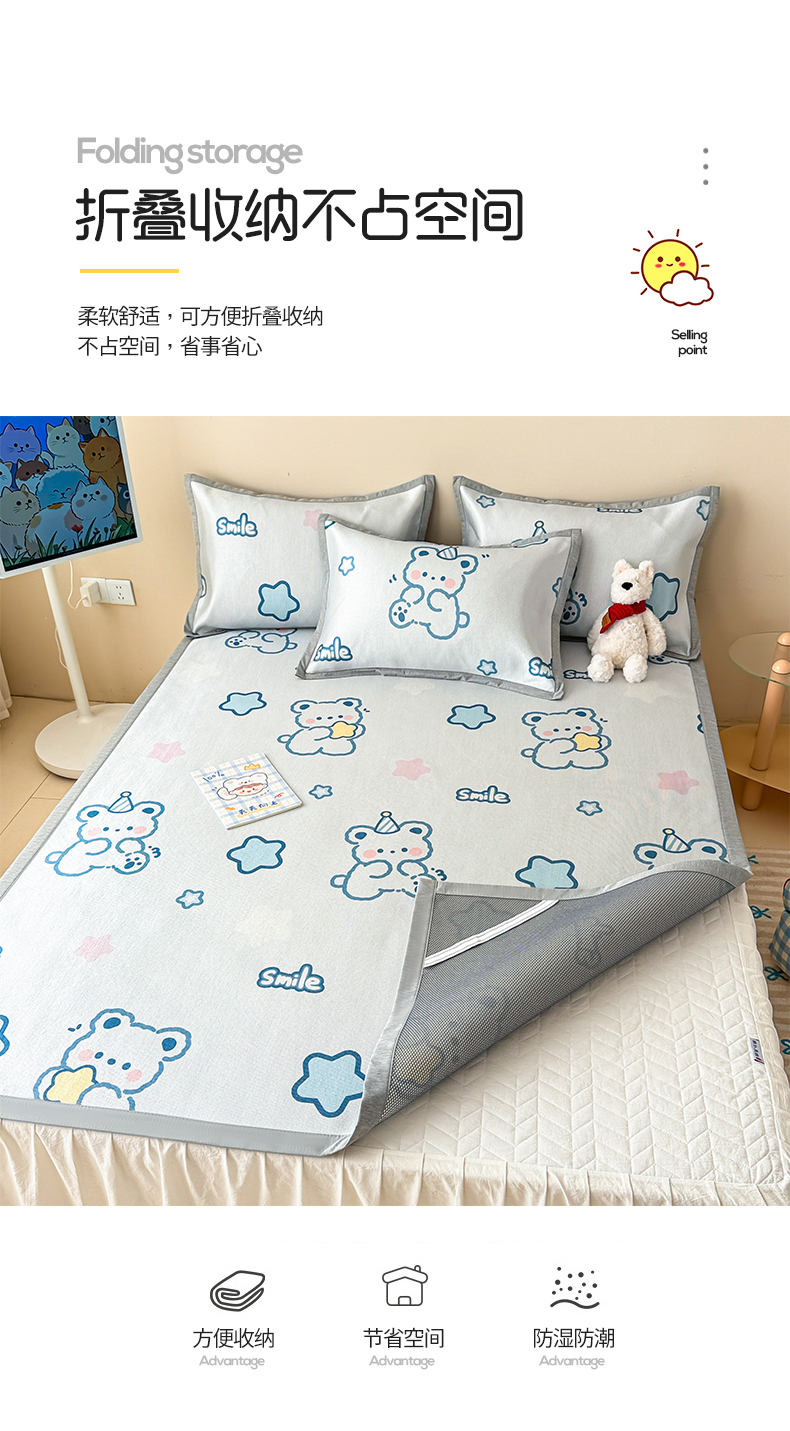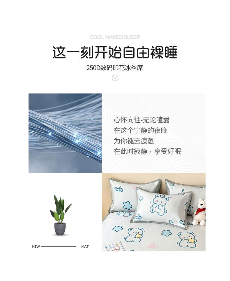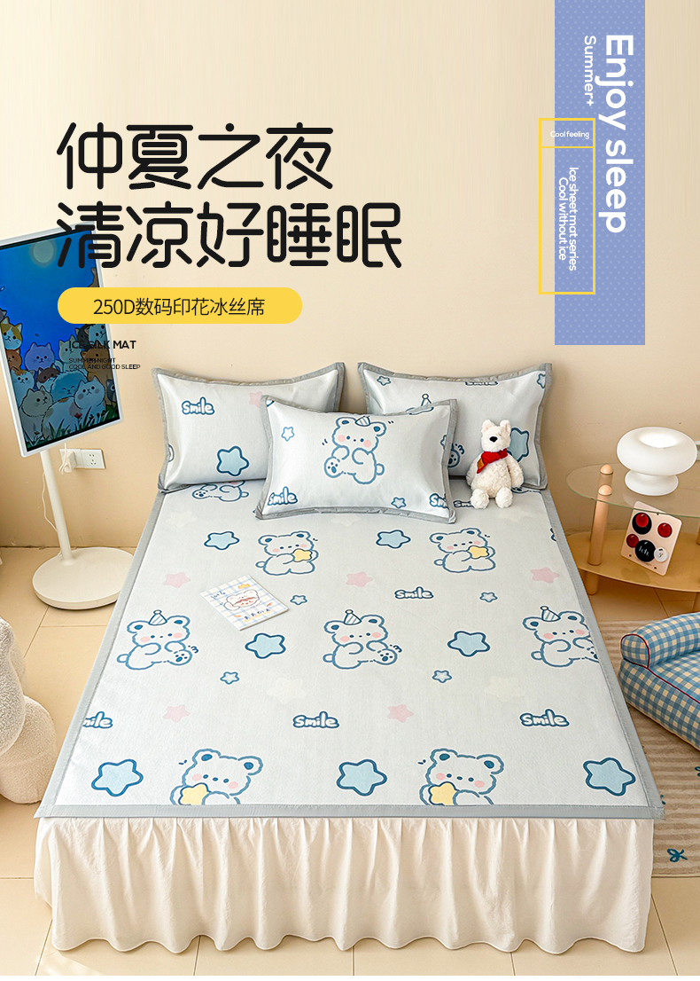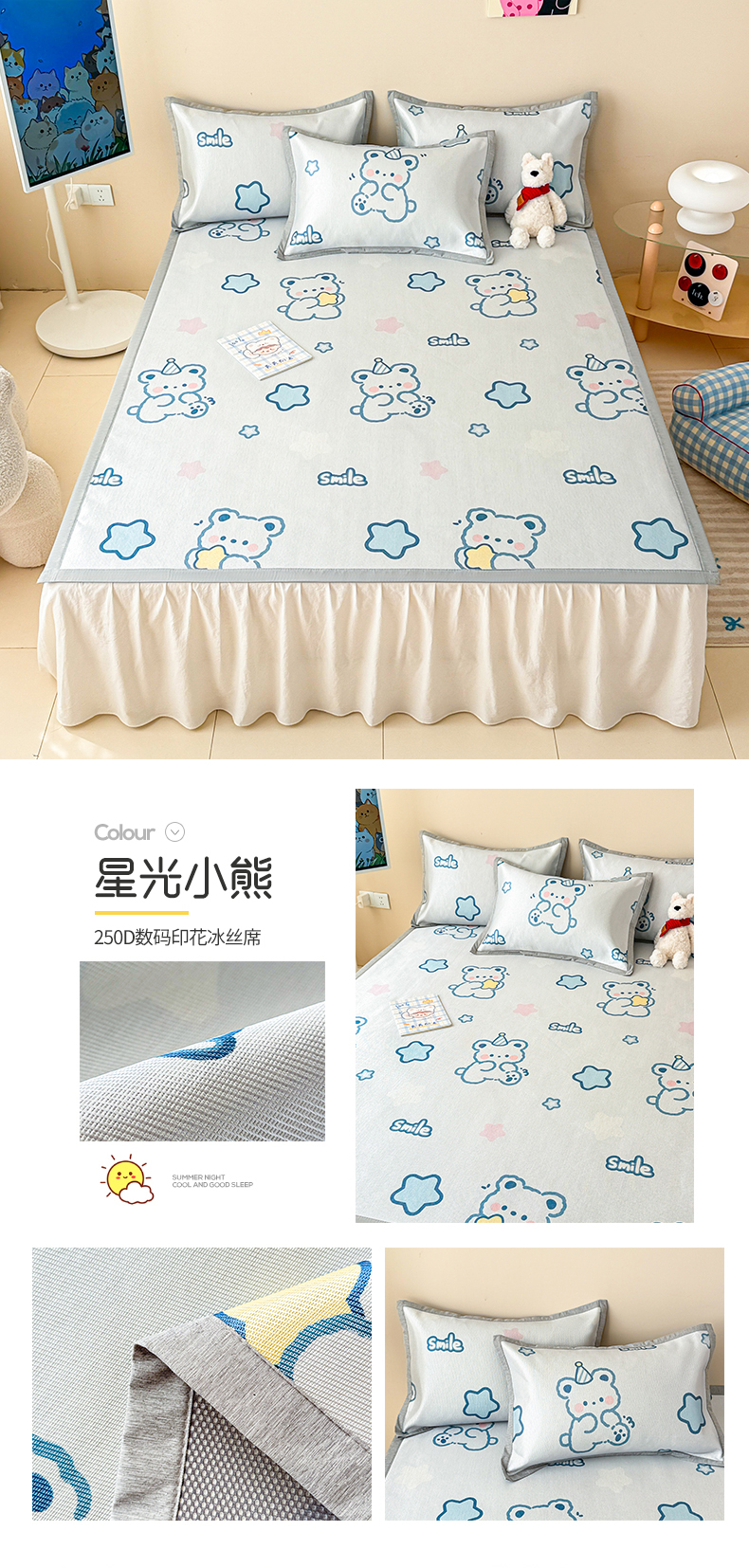 商品名称:懒猫家纺 2025春夏新款250D数码印花冰丝席凉席席子 星光小熊