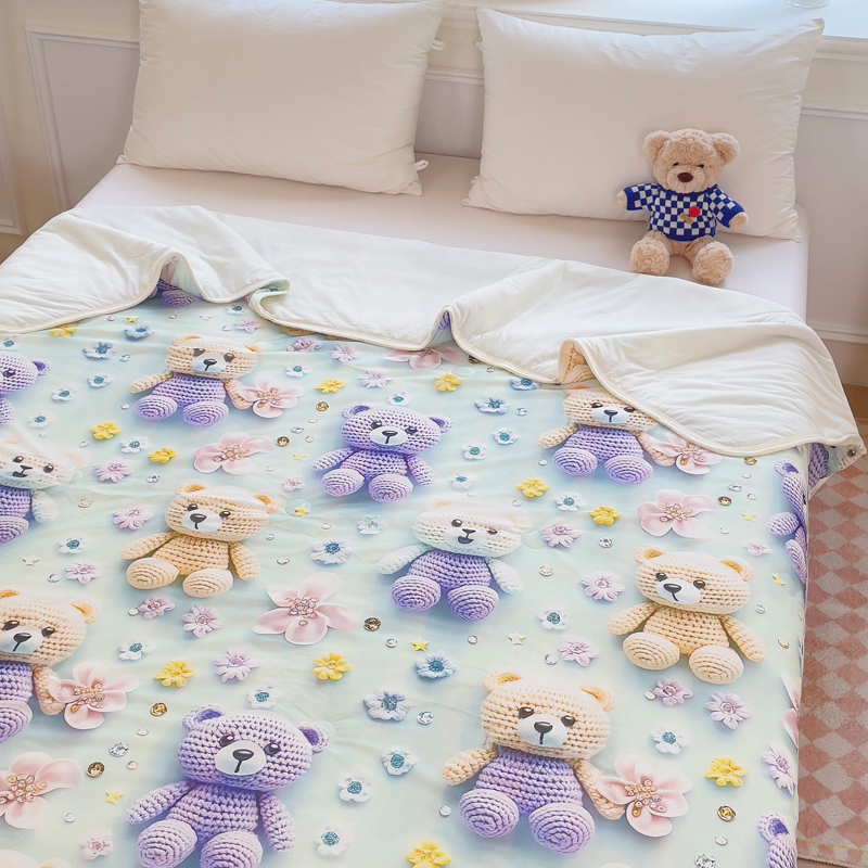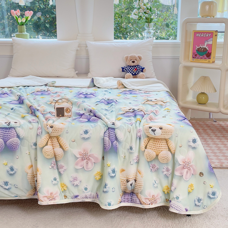 蓝冰家纺 2025新款凉感数码印花夏被夏凉被空调被 蓝黄熊宝