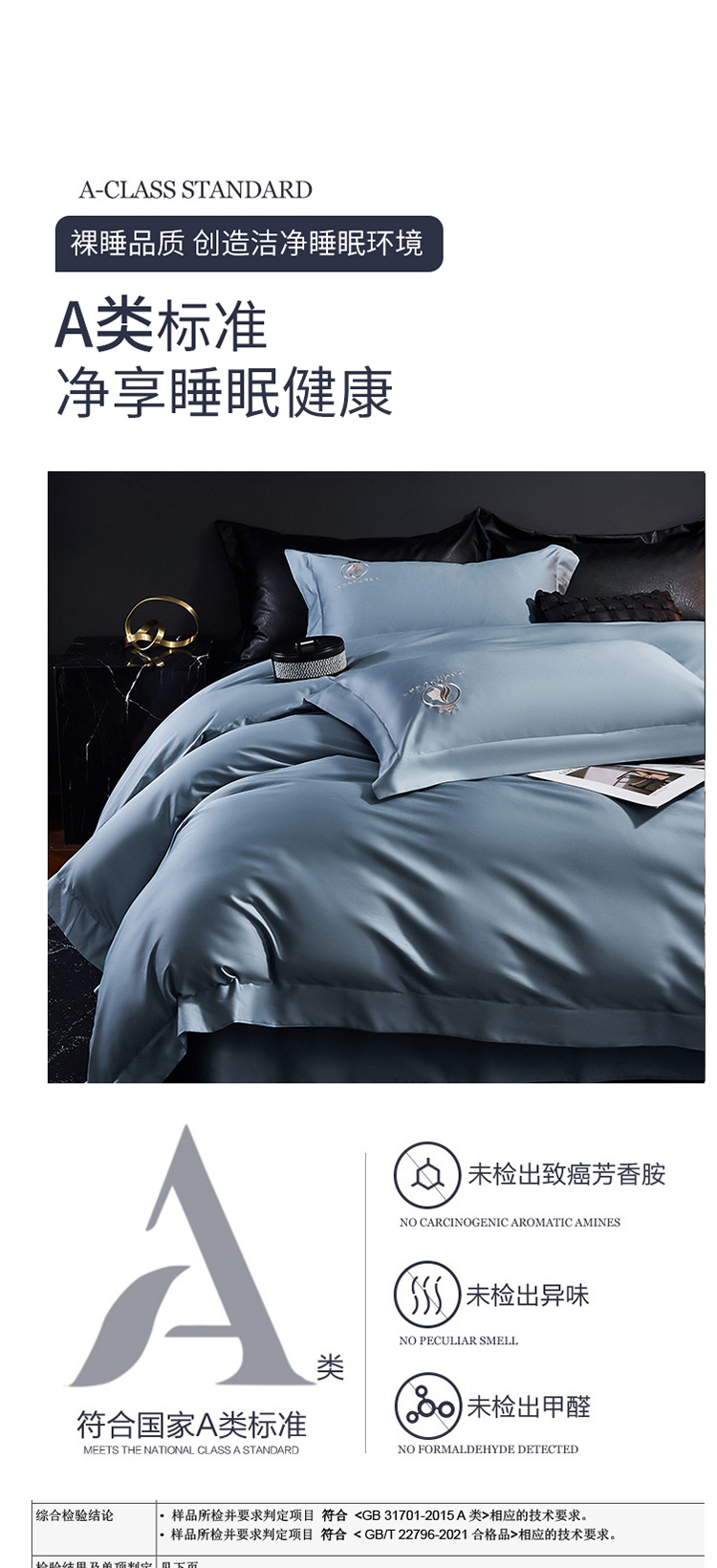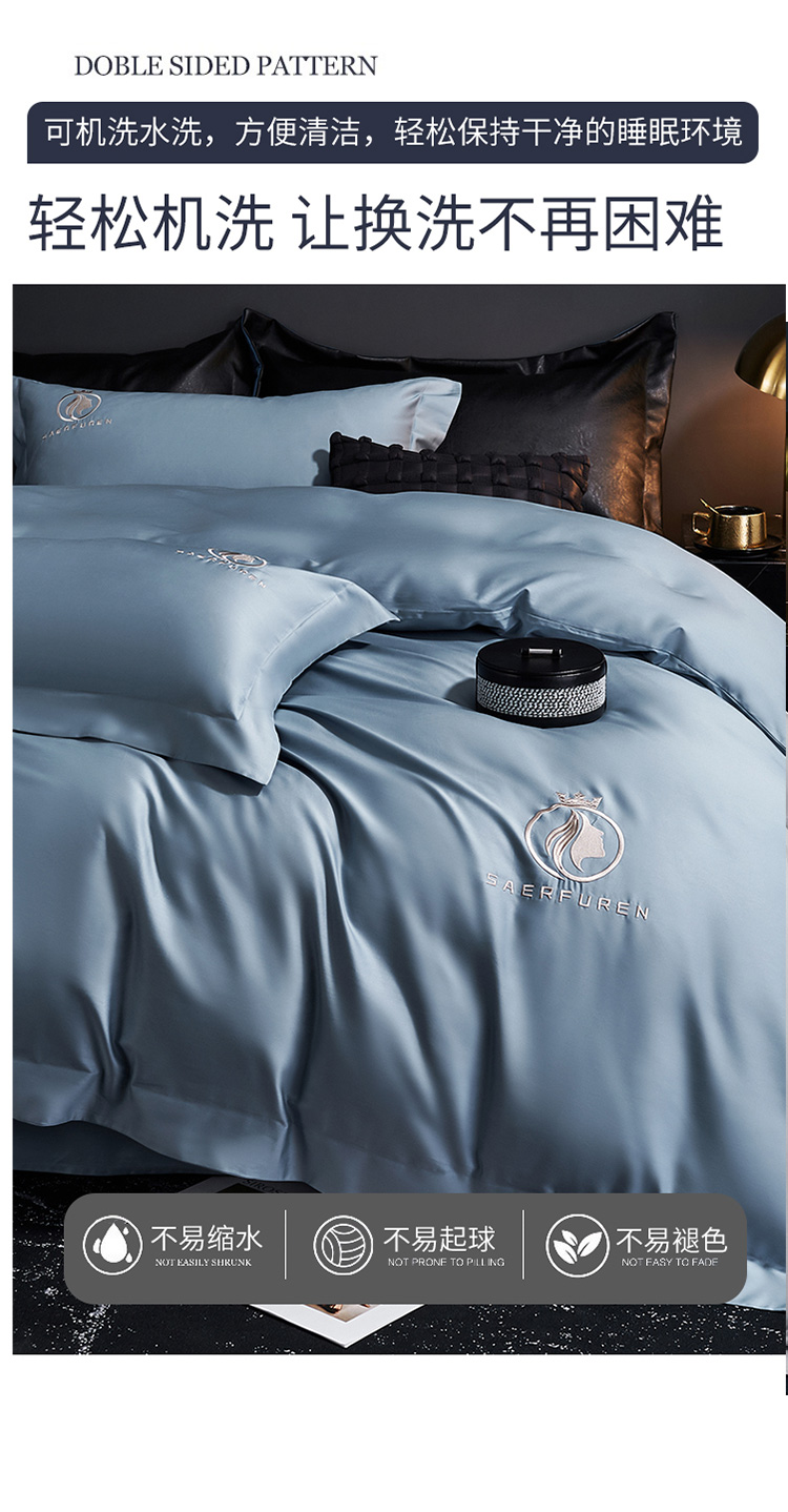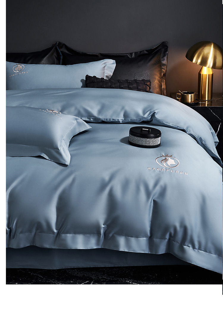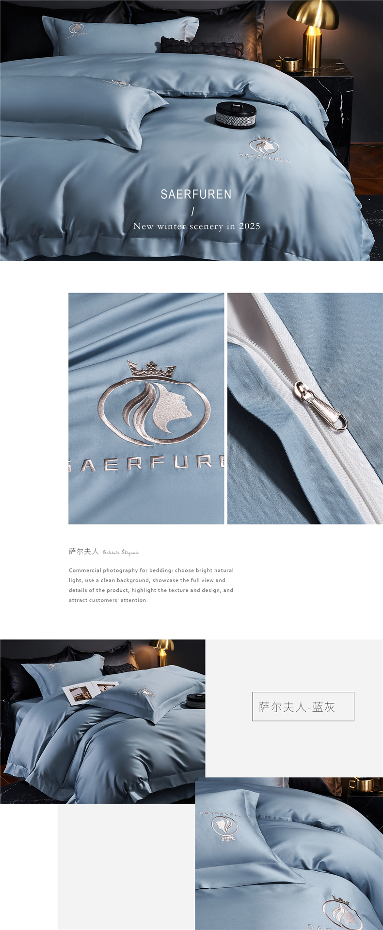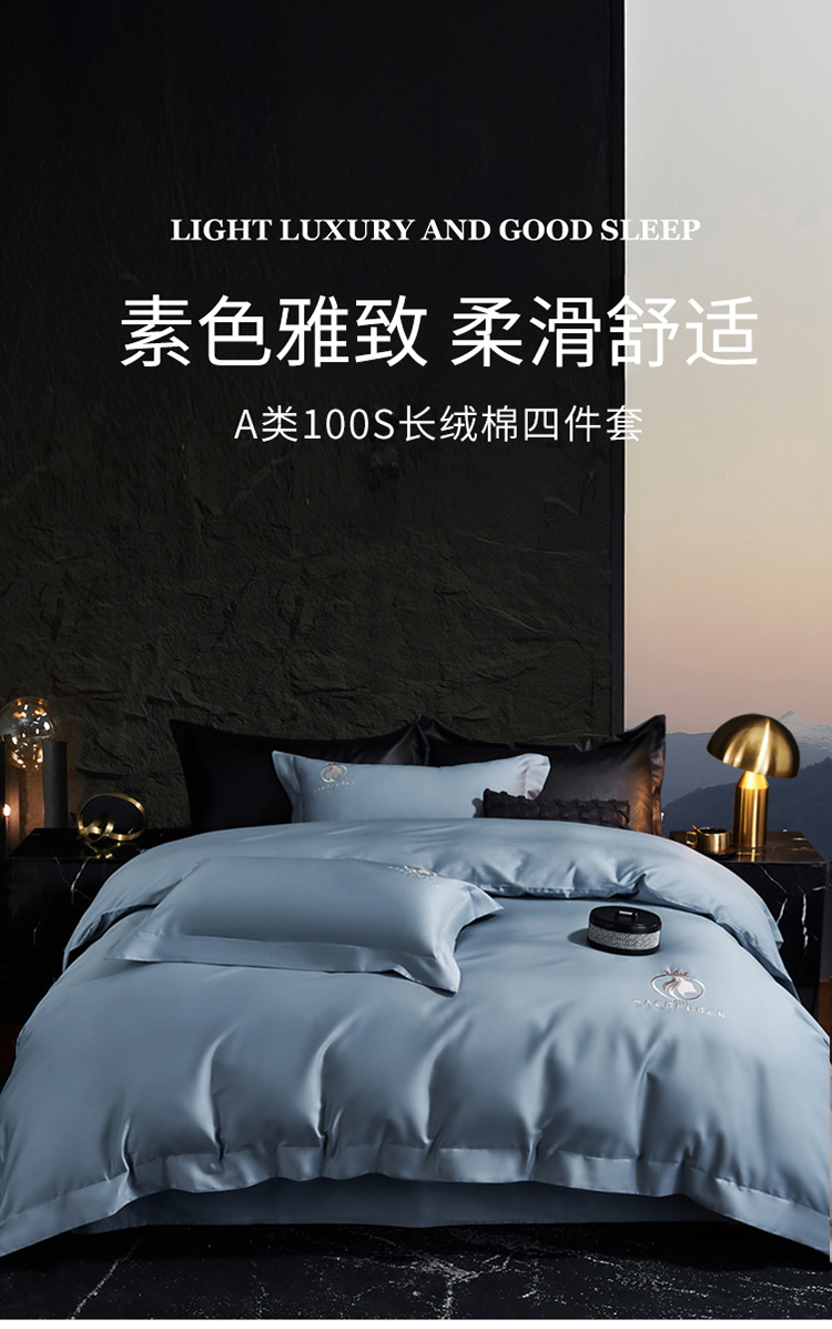 当前位置: 91家纺网 > 商品网购 > 床品套件 > 四件套 > 长绒棉四件套 > 沃尔居 2025新款全棉纯棉长绒棉四件套刺绣绣花纯色贡缎床笠款高端礼盒装 萨尔夫人-蓝灰