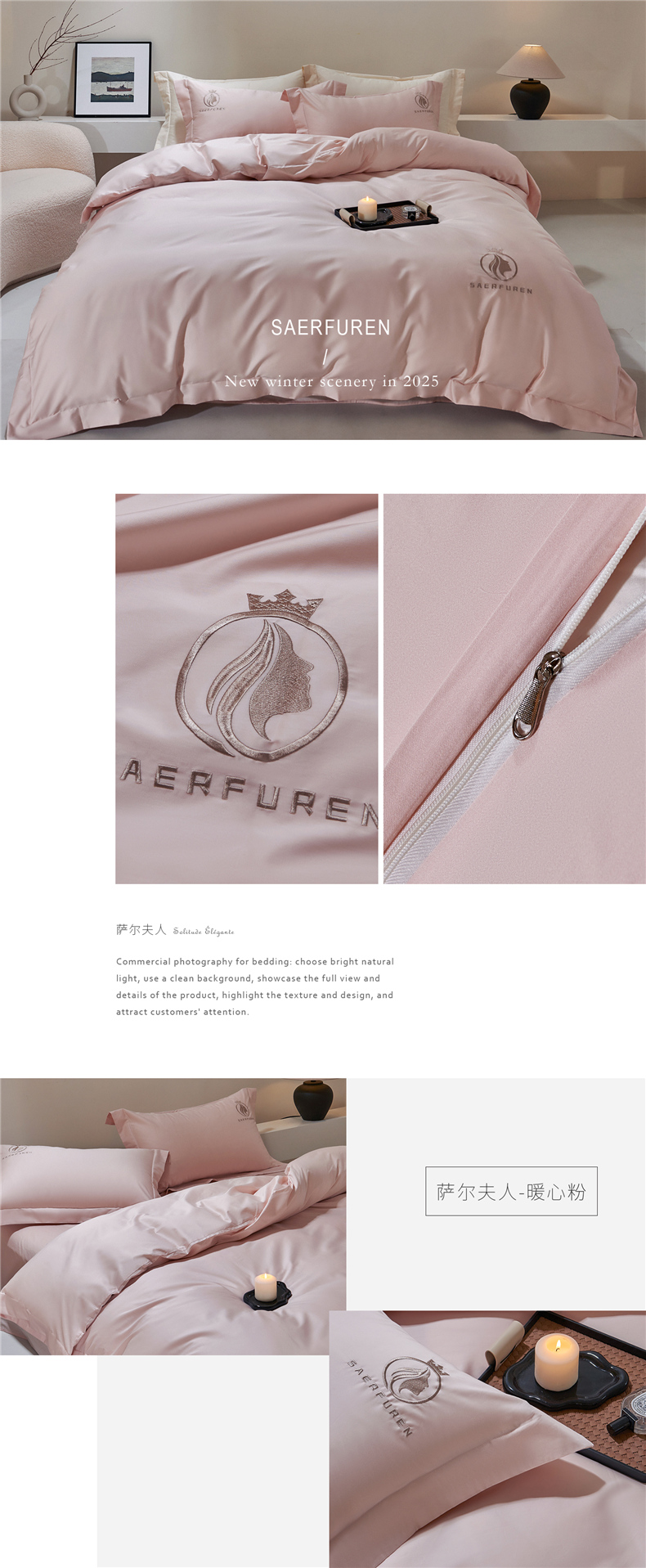 当前位置: 91家纺网 > 商品网购 > 床品套件 > 四件套 > 长绒棉四件套 > 憨豆家纺 2025新款全棉纯棉长绒棉四件套刺绣绣花纯色贡缎床笠款高端礼盒装 萨尔夫人-暖心粉