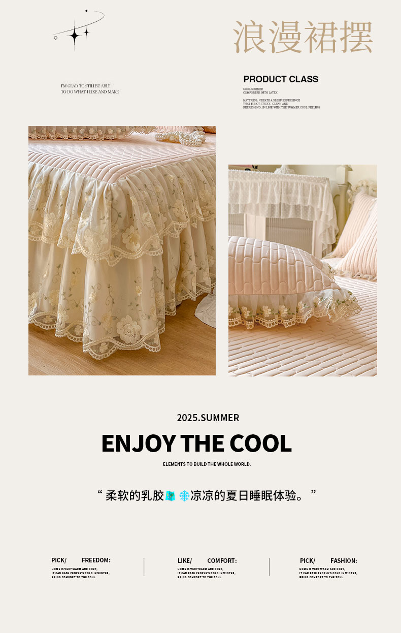 商品名称:恋尚 2025新款乳胶凉感床笠裙-甜朵【控价170起】 甜朵-少女粉