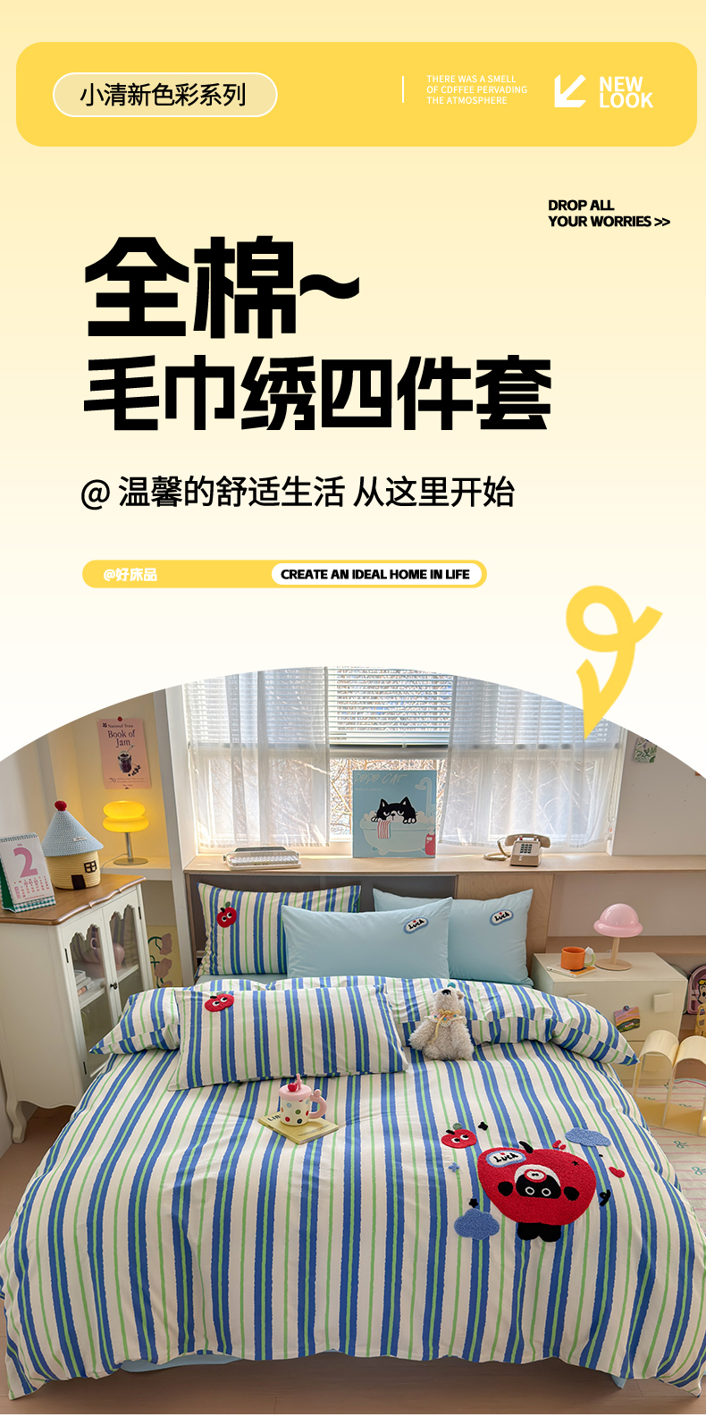 当前位置: 91家纺网 > 商品网购 > 床品套件 > 四件套 > 毛巾绣四件套 > 如意朵2025新款全棉毛巾绣四件套 躲猫猫