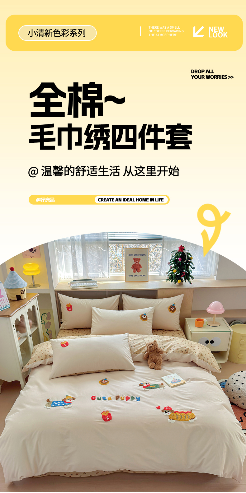 当前位置: 91家纺网 > 商品网购 > 床品套件 > 四件套 > 毛巾绣四件套 > 如意朵2025新款全棉毛巾绣四件套 小伙伴